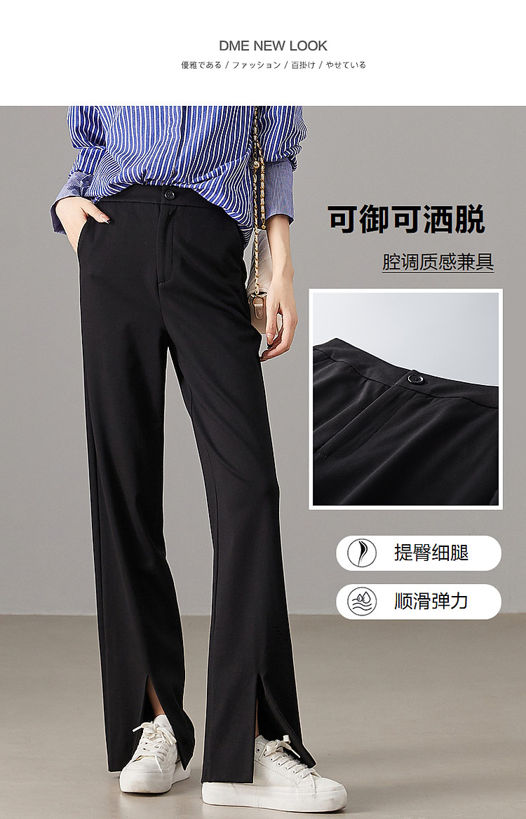 【九分锥形裤】微弹女裤中腰口袋拉链水洗裤子女秋