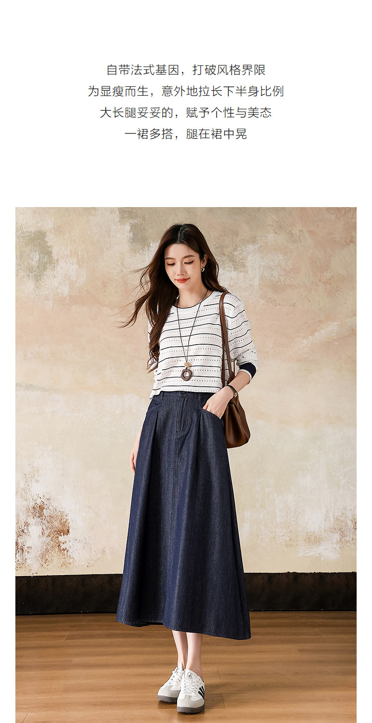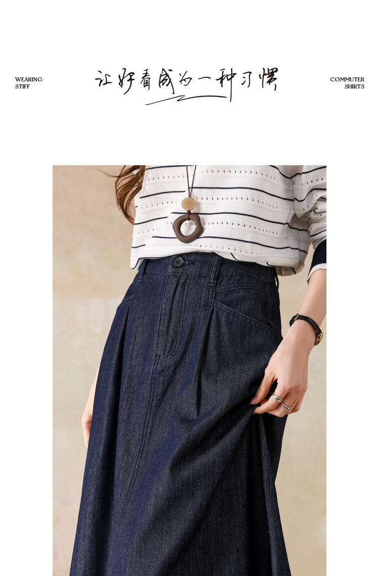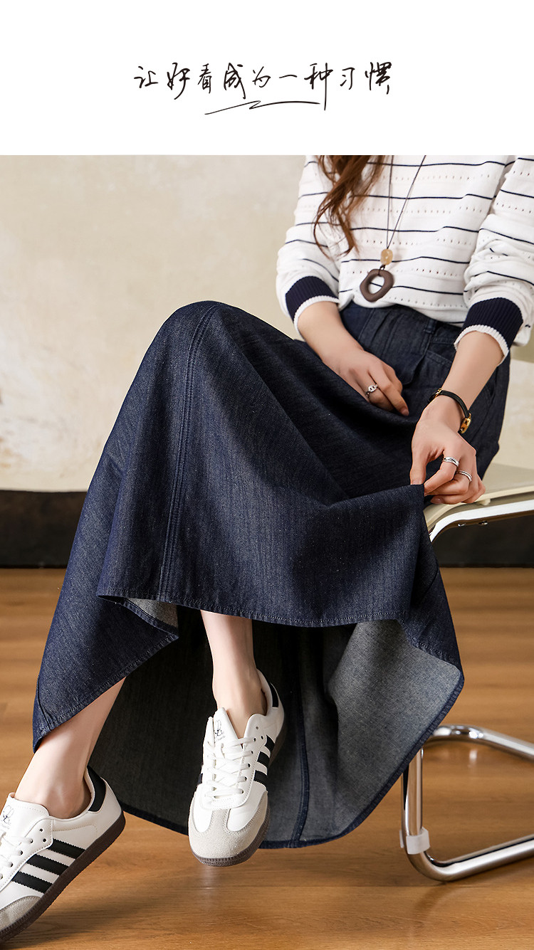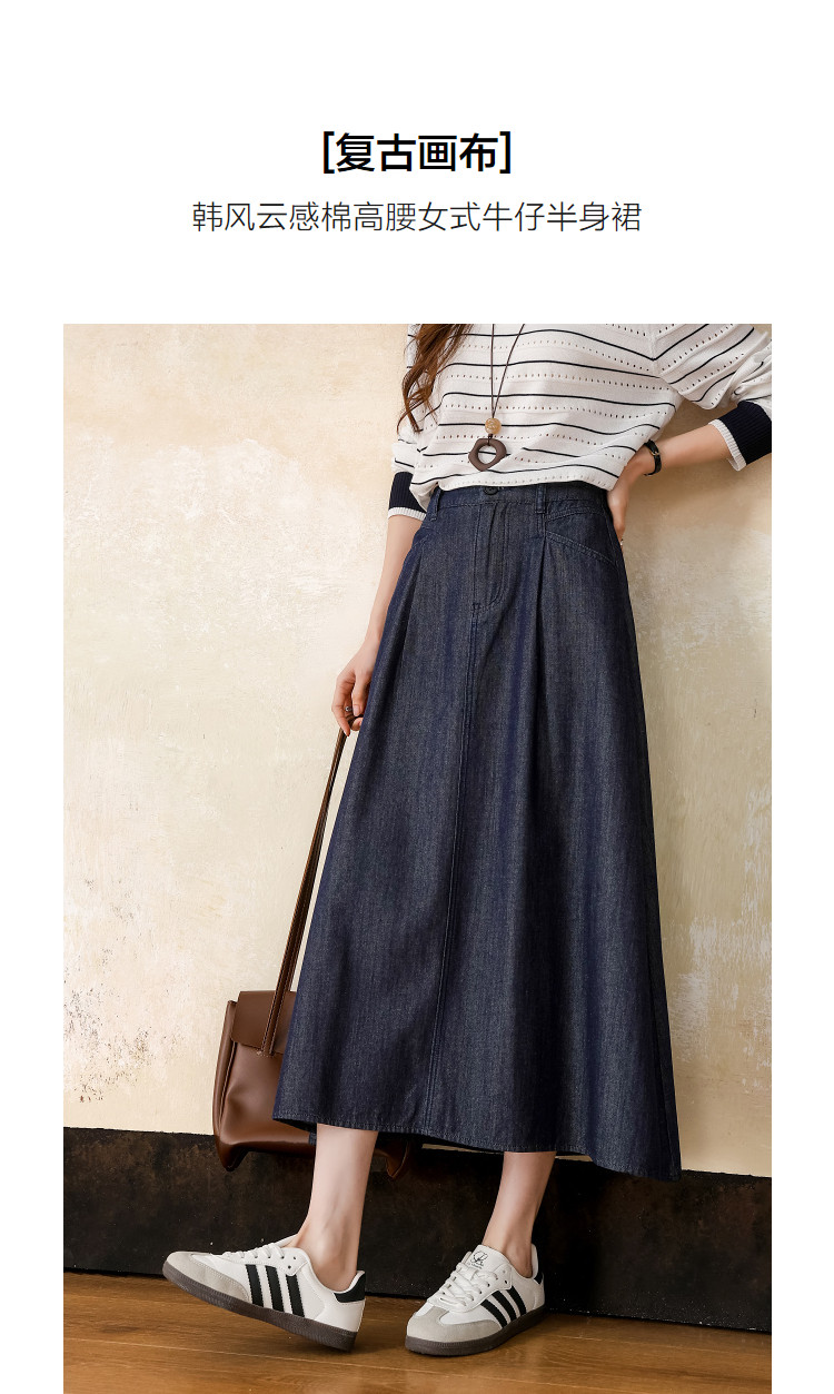 【复古画布】2026春韩风云感棉高腰伞裙分割线A字女式牛仔半身裙