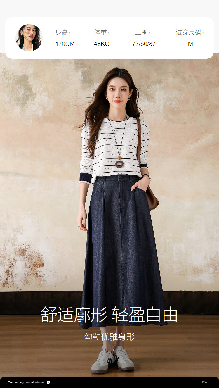 【含温润绵羊毛】冬季松弛感条纹上衣侧边抽绳开叉半裙针织女套装