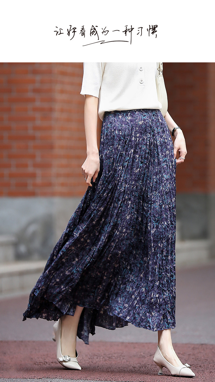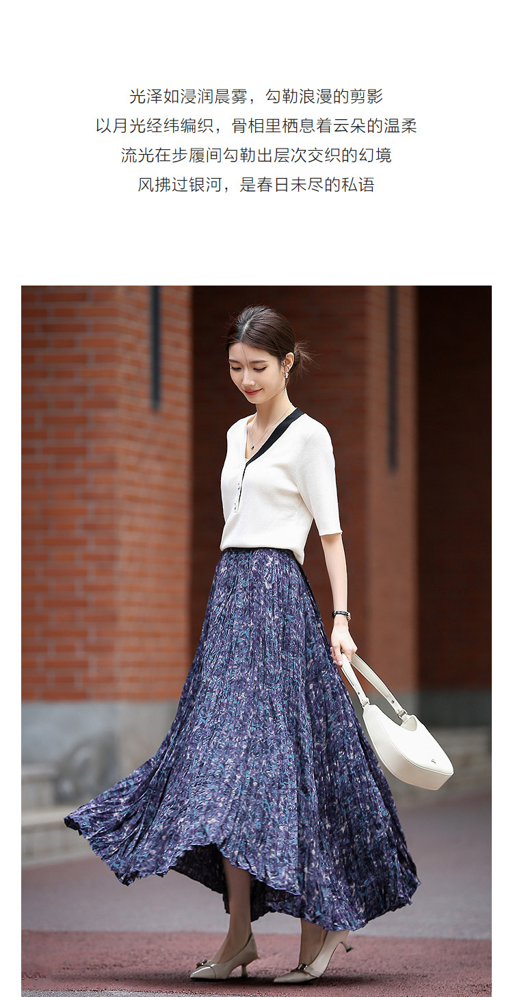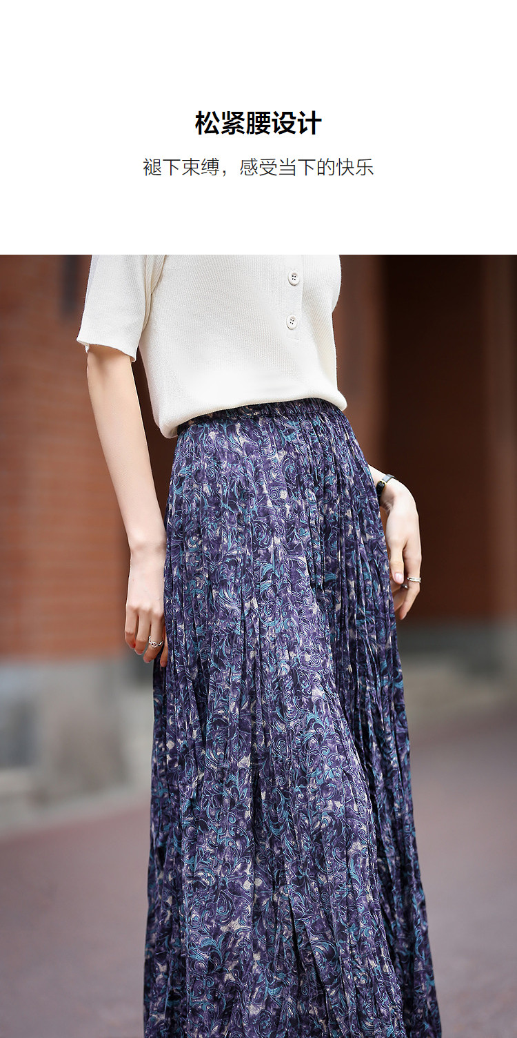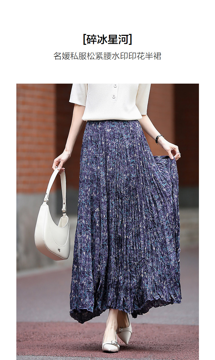 【碎冰星河】2026春名媛私服松紧腰水印印花压褶A字女式百褶半身裙