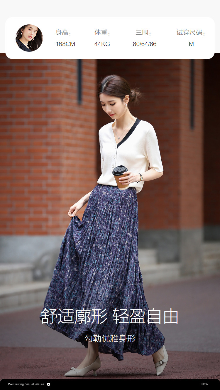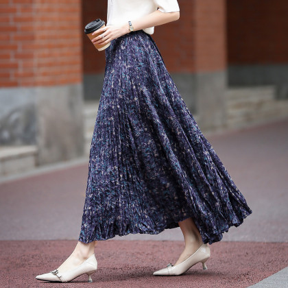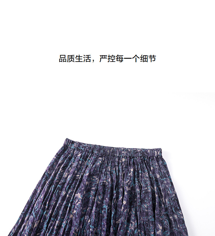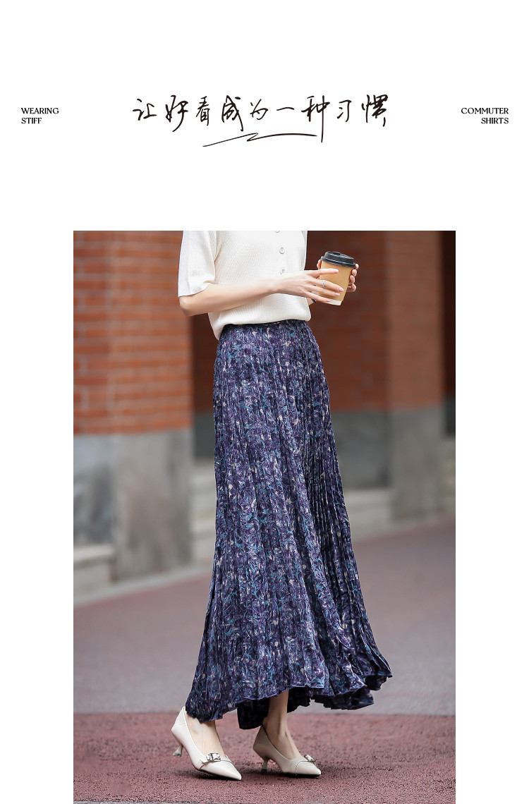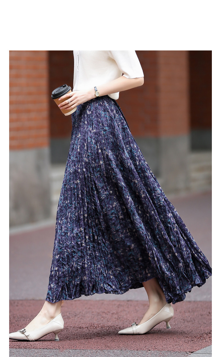 【碎冰星河】2026春名媛私服松紧腰水印印花压褶A字女式百褶半身裙