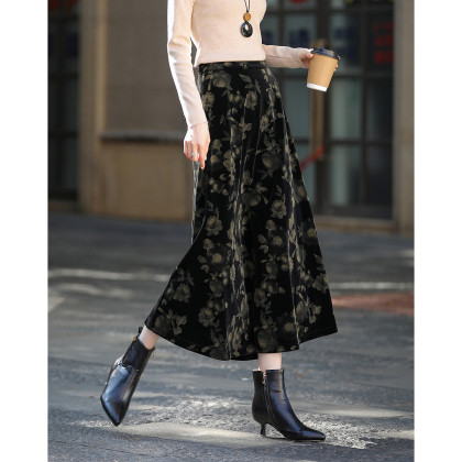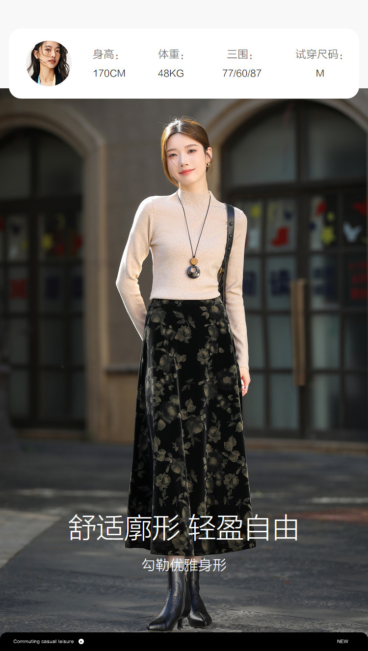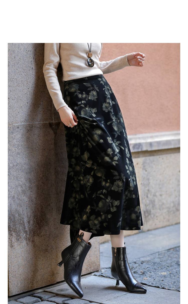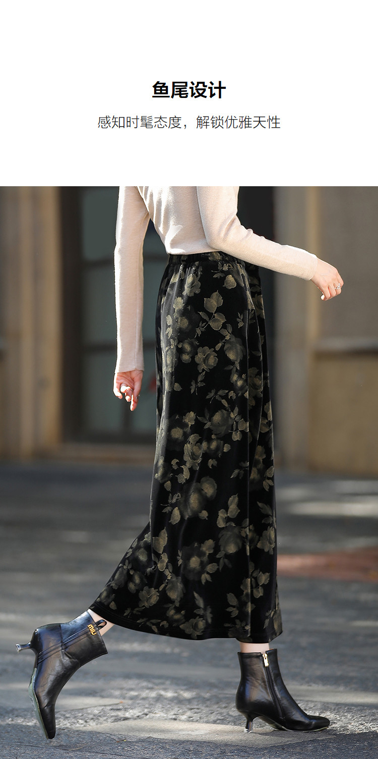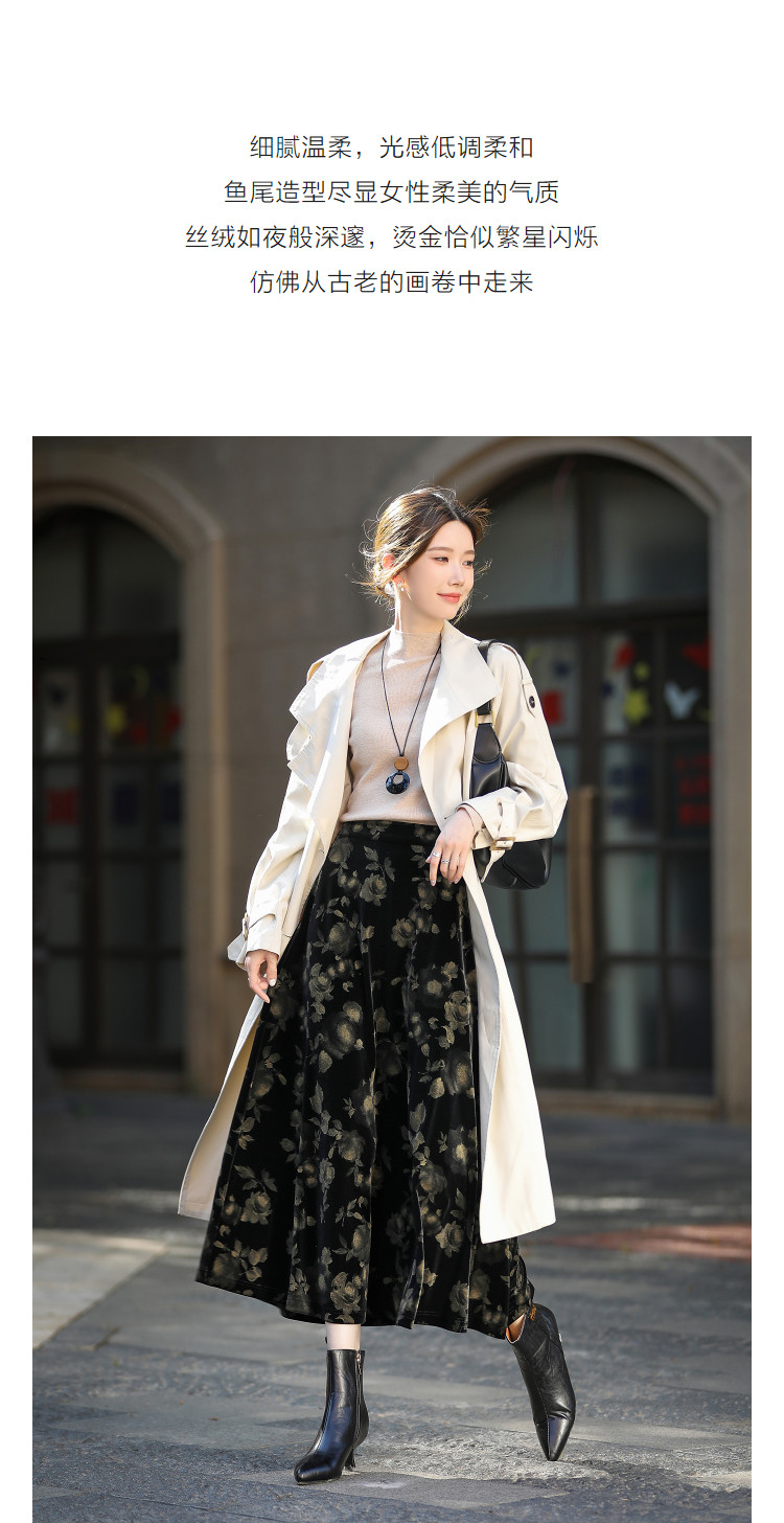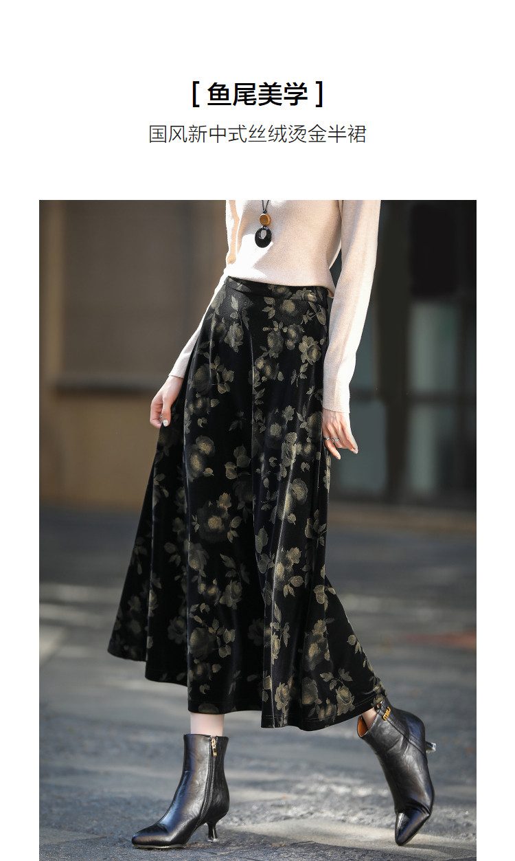 【烫金工艺】秋季国风新中式丝绒鱼尾美学小个子A字女式半身裙