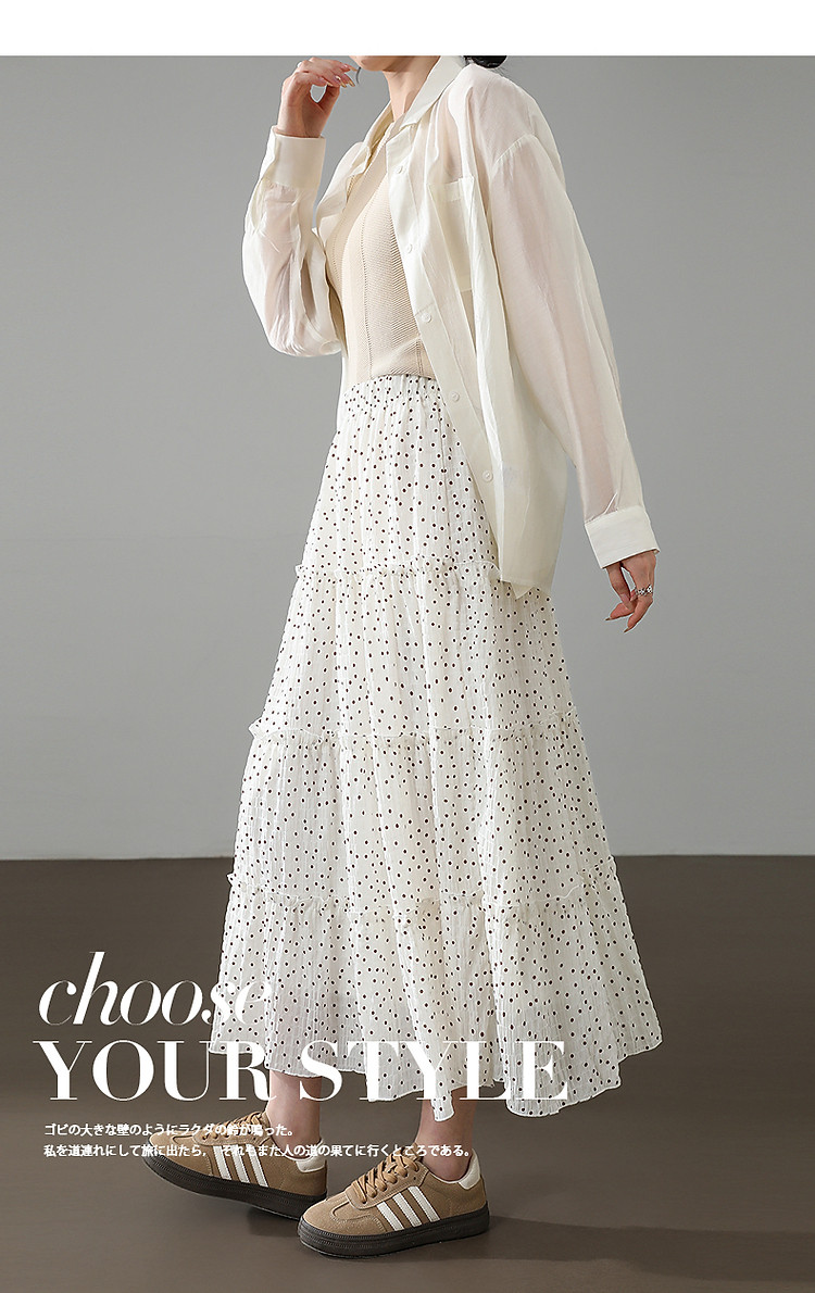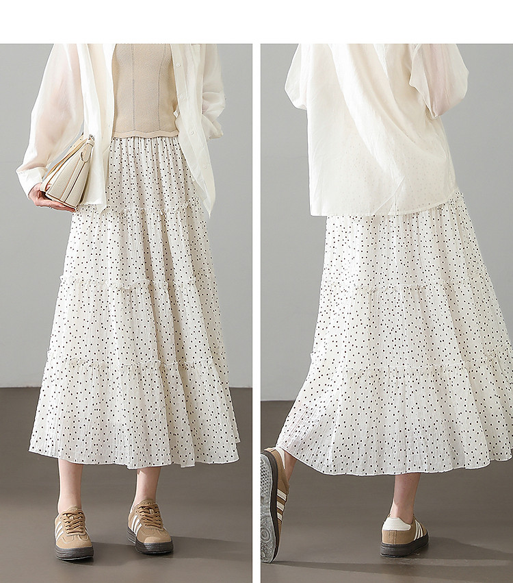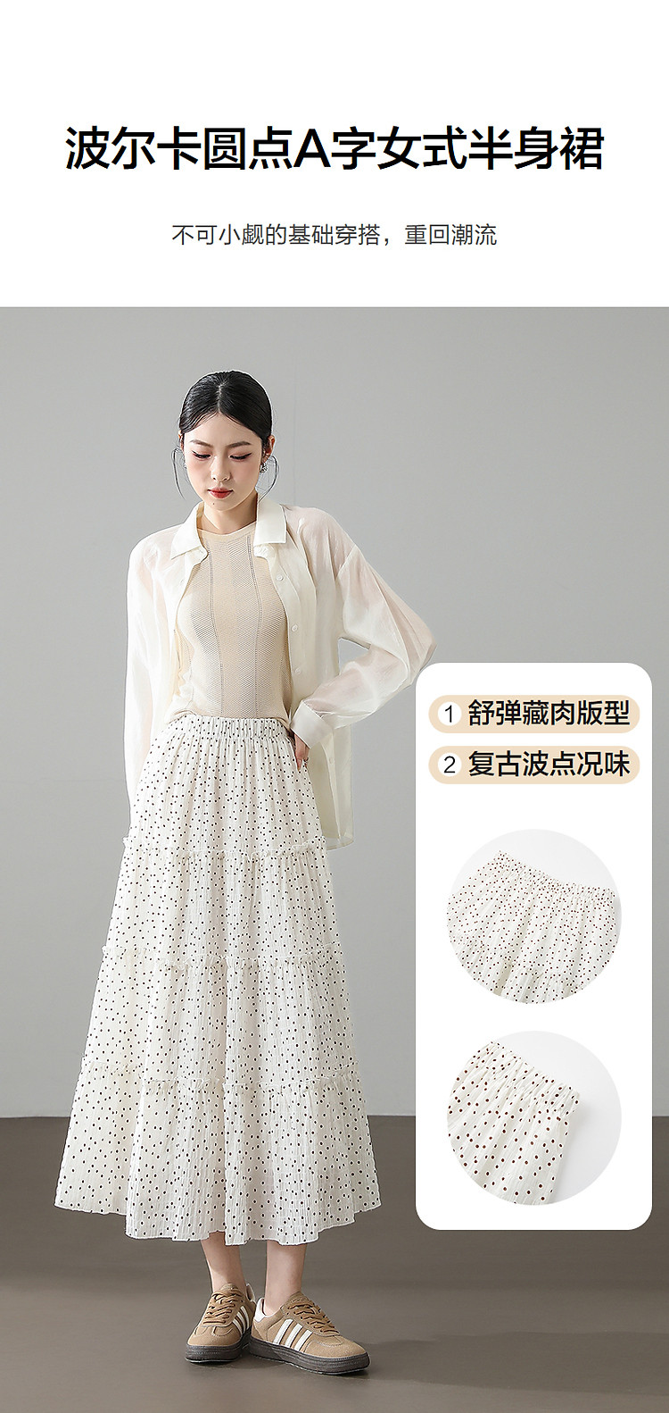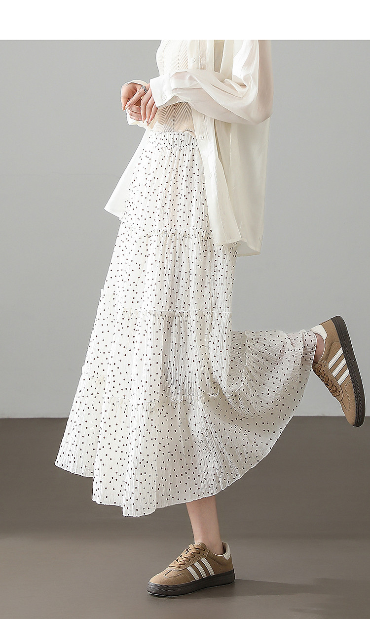 【波尔卡圆点】春季日系舒弹藏肉松紧腰复古波点A字中长女半身裙