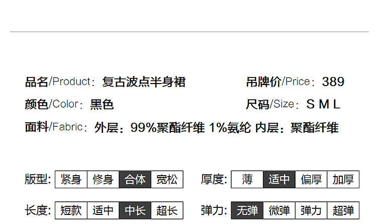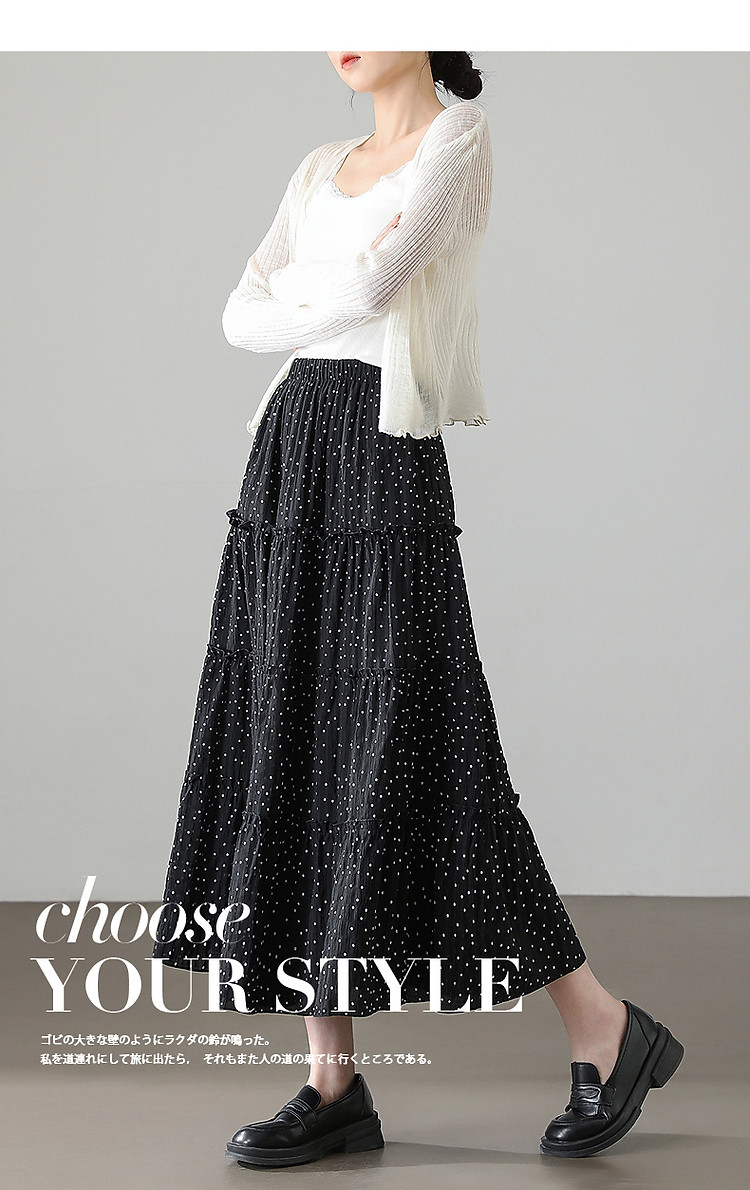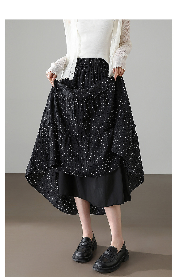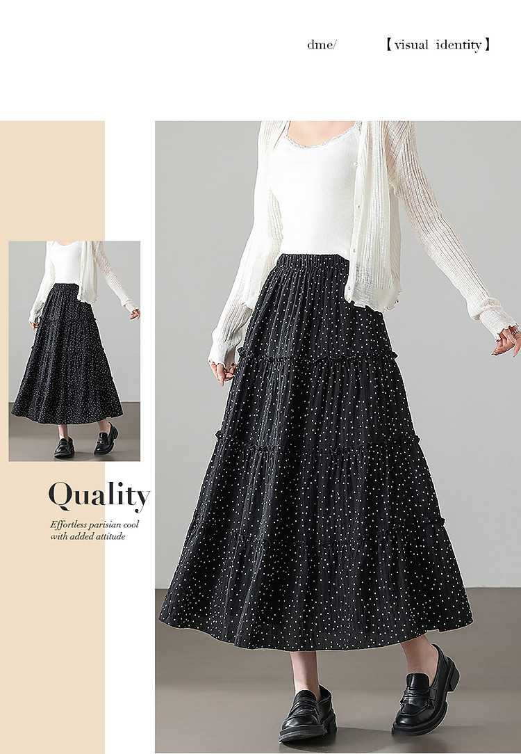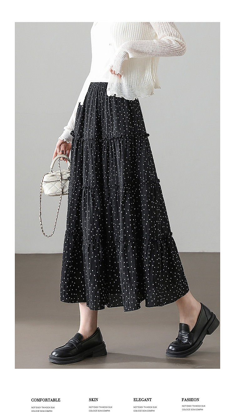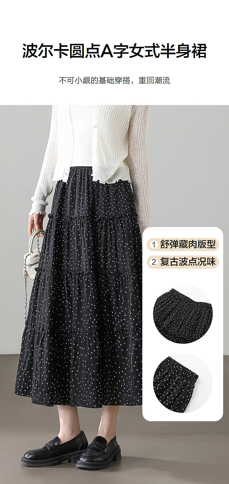 【波尔卡圆点】春季日系舒弹藏肉松紧腰复古波点A字中长女半身裙