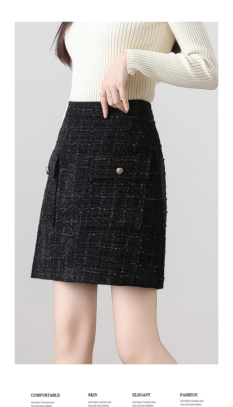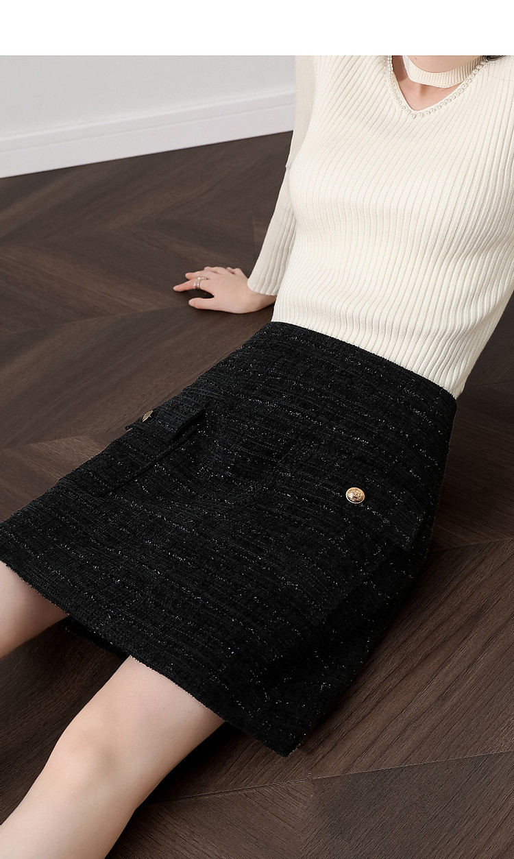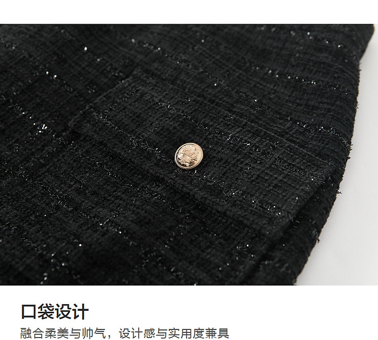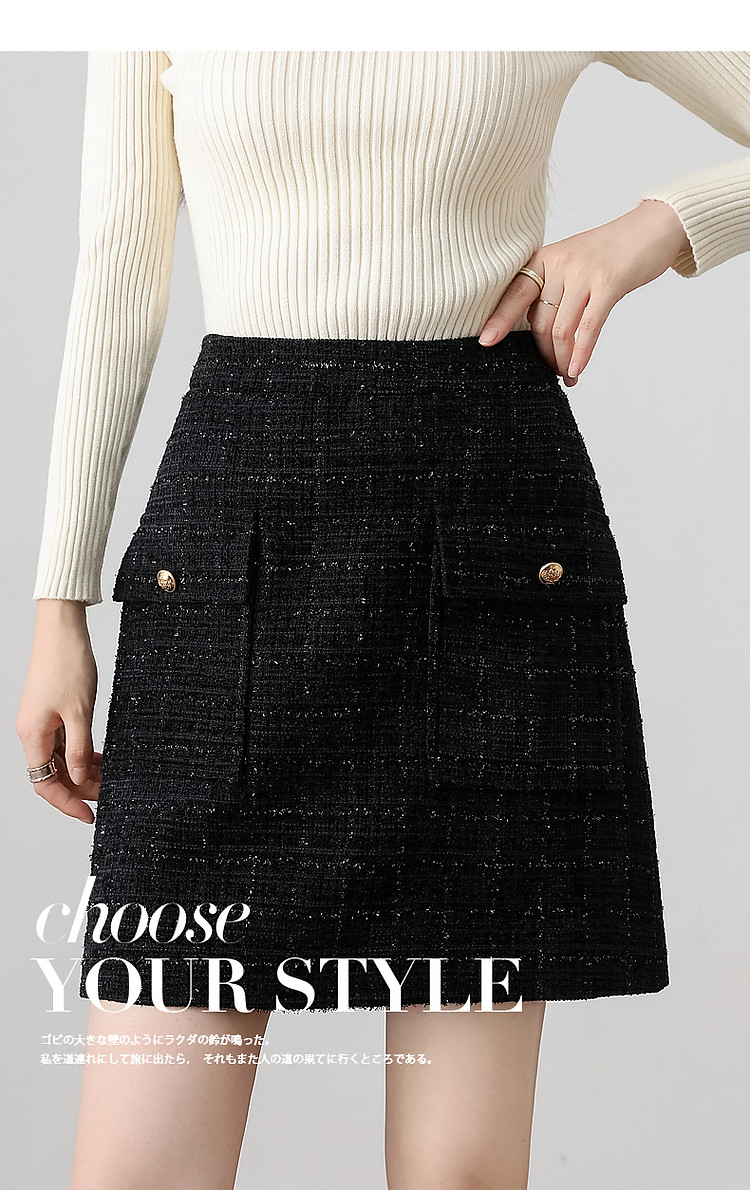 【结构主义】秋小香风亮丝金葱口袋A字藏肉半身裙女短款