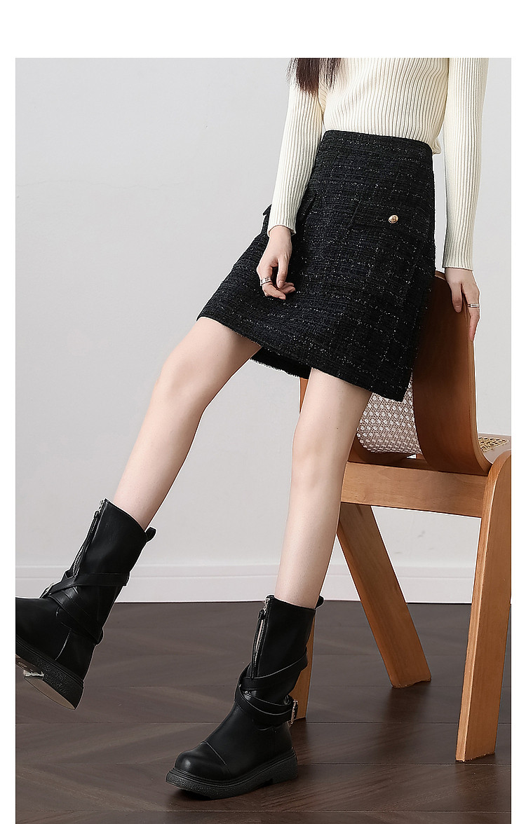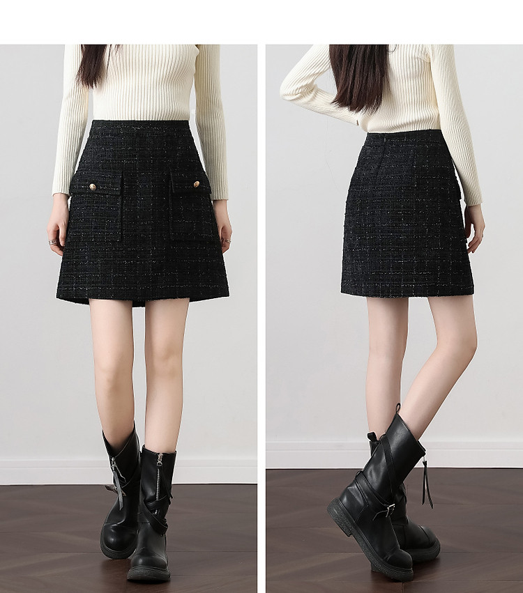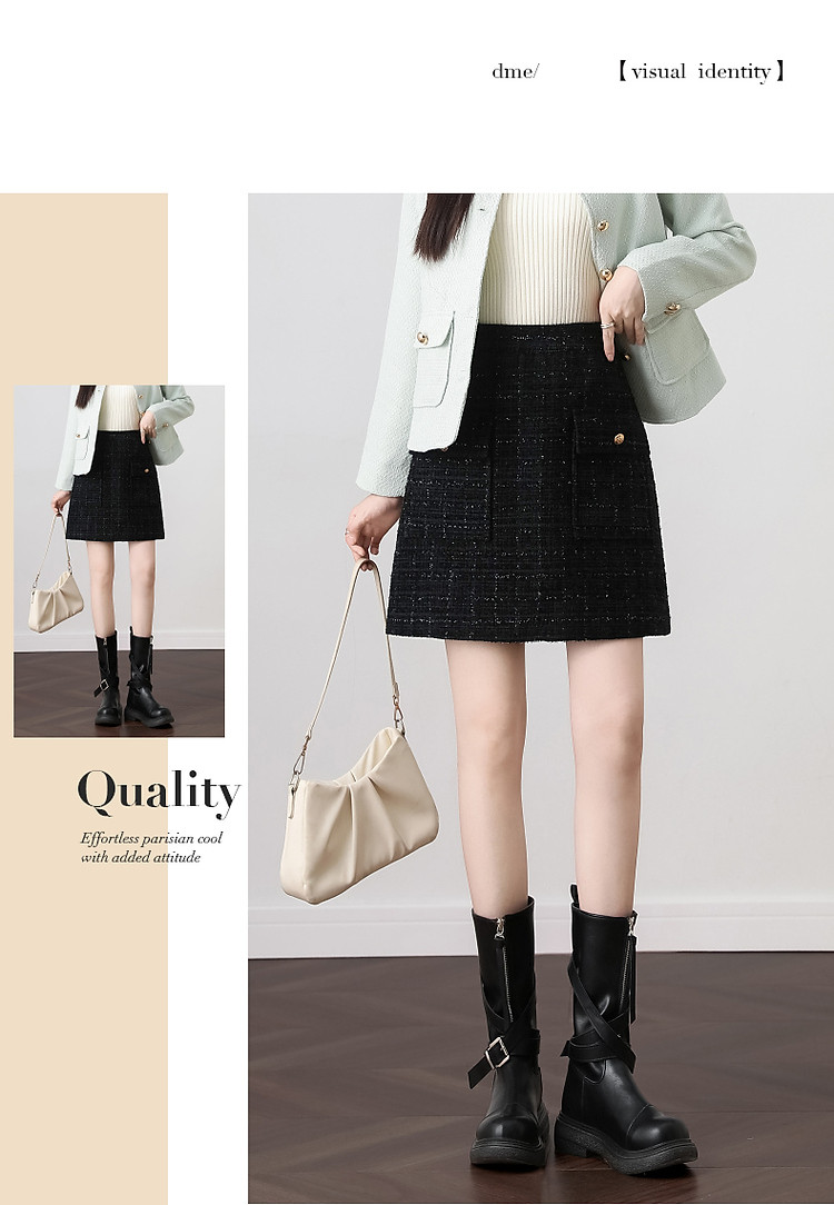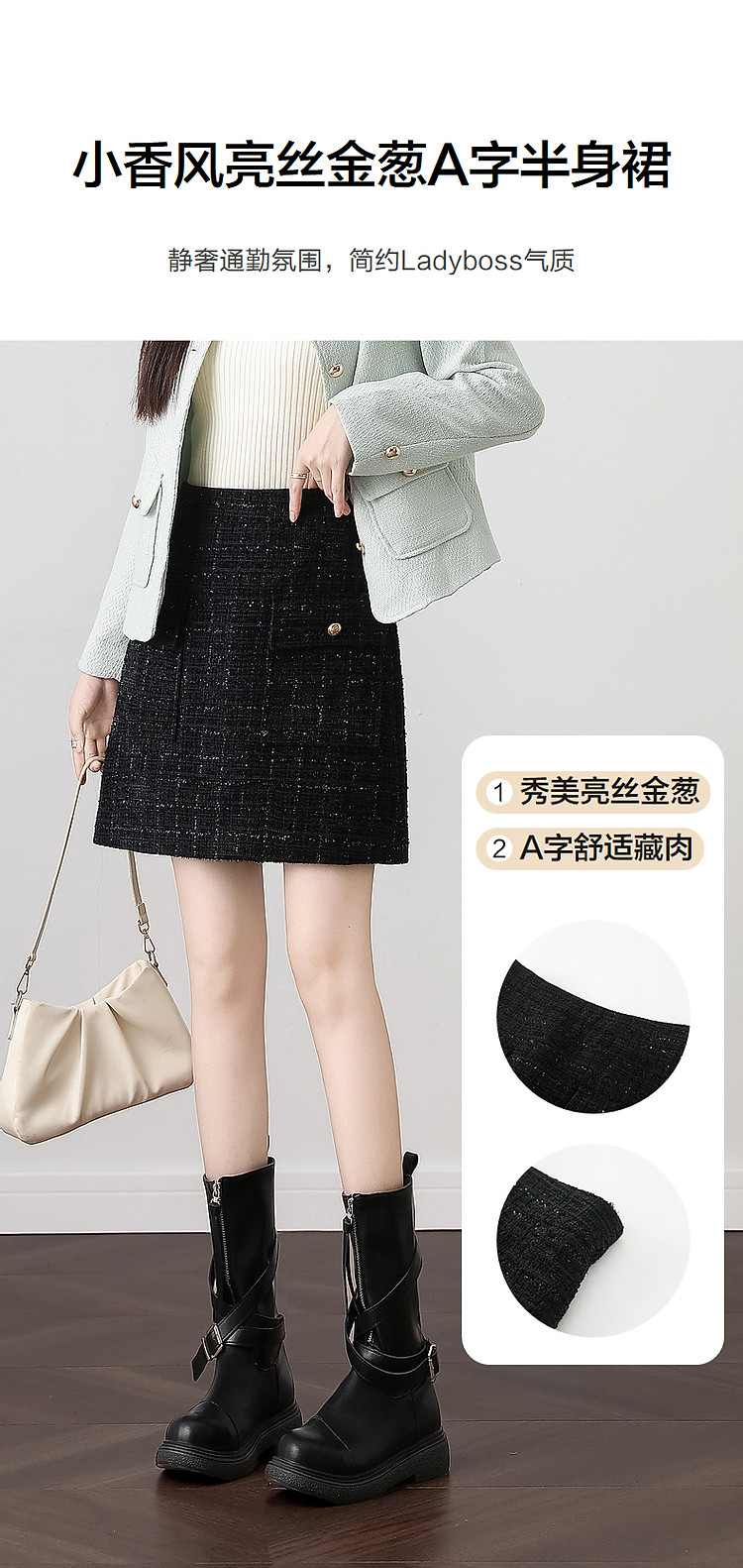 【结构主义】秋小香风亮丝金葱口袋A字藏肉半身裙女短款