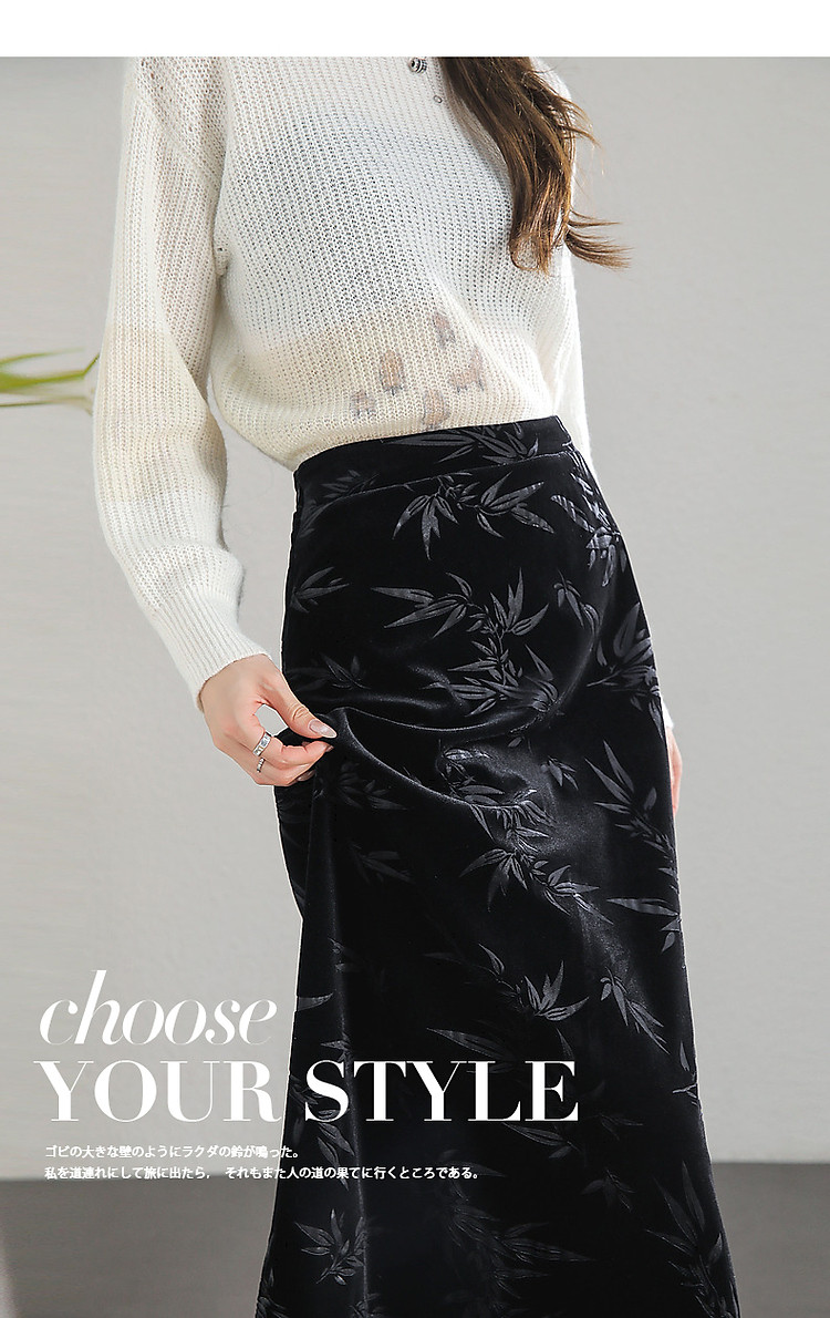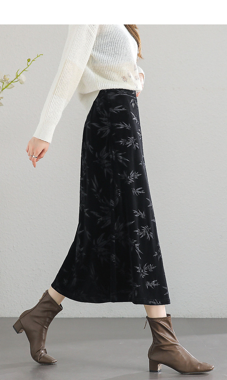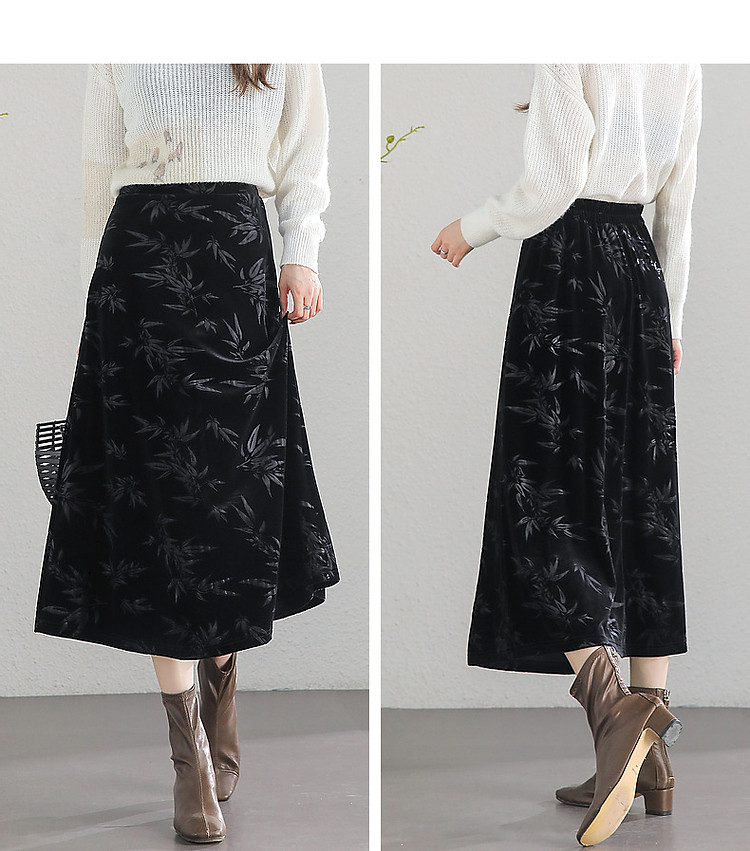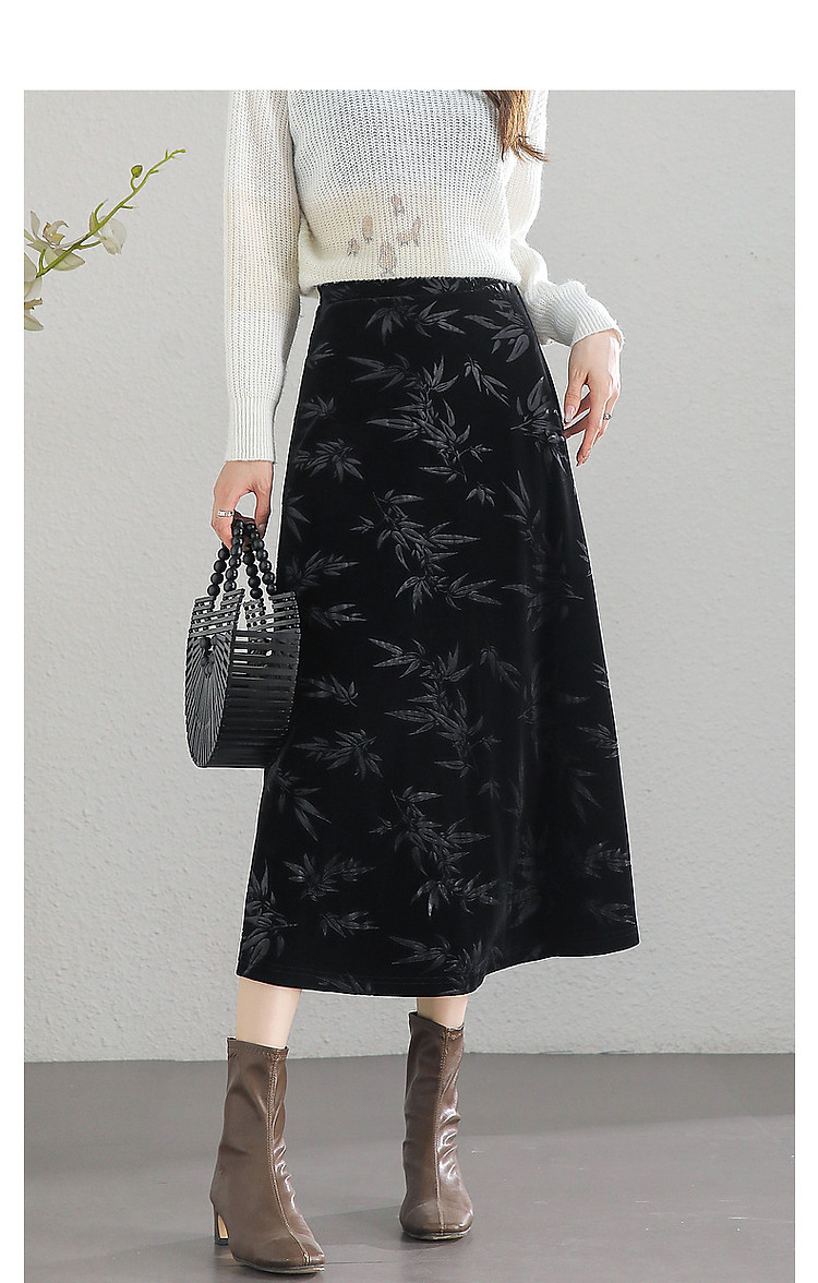【优雅舒适圈】秋简约风后橡筋腰典雅丝绒压花A字藏肉半身裙女