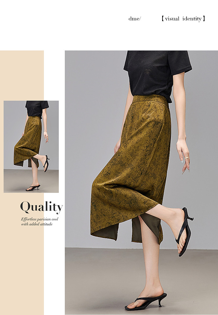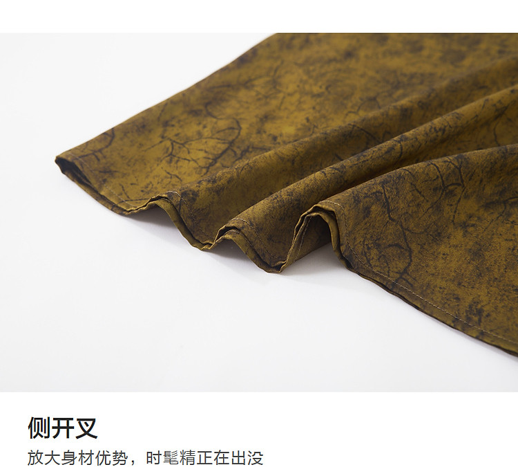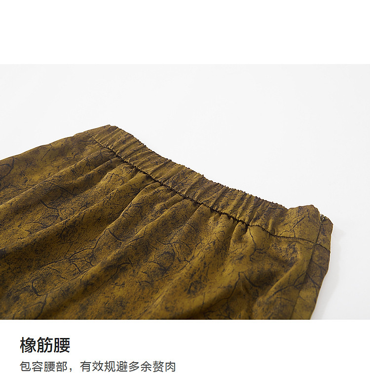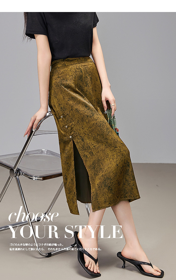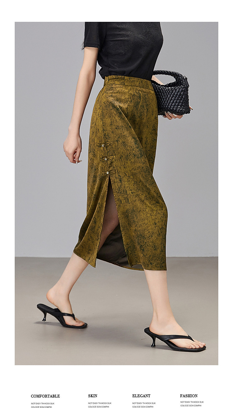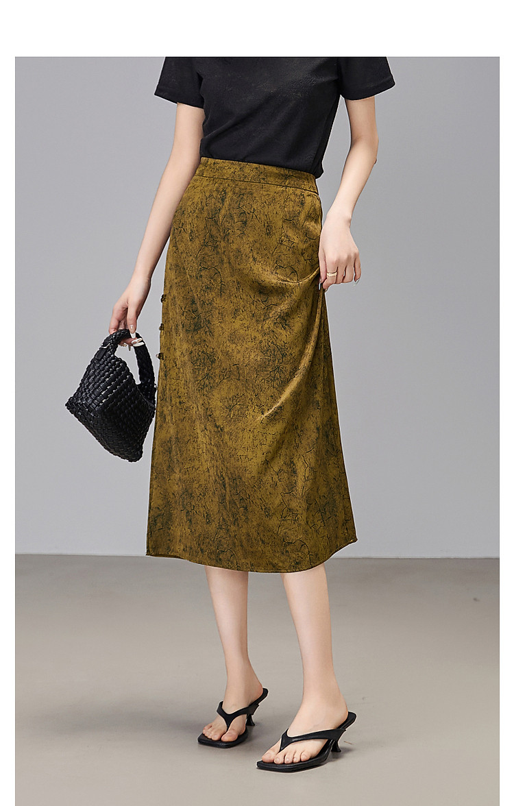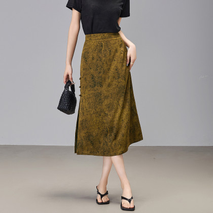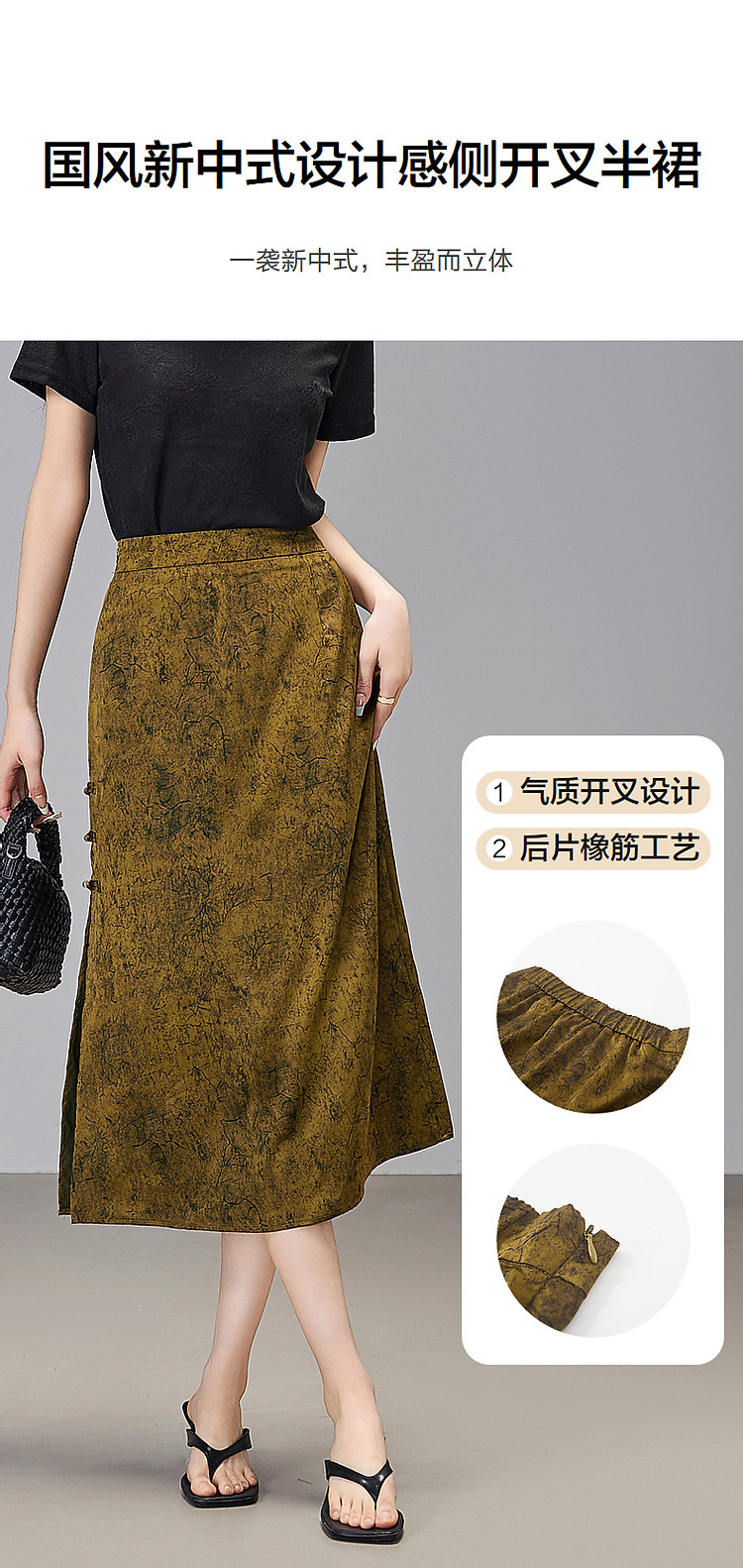【秘境情书】秋国风新中式后片橡筋腰侧开叉A字气质通勤半身裙女