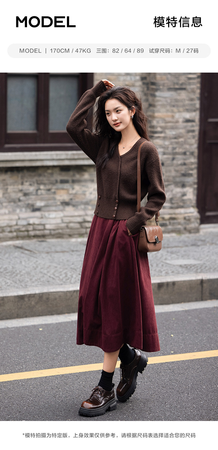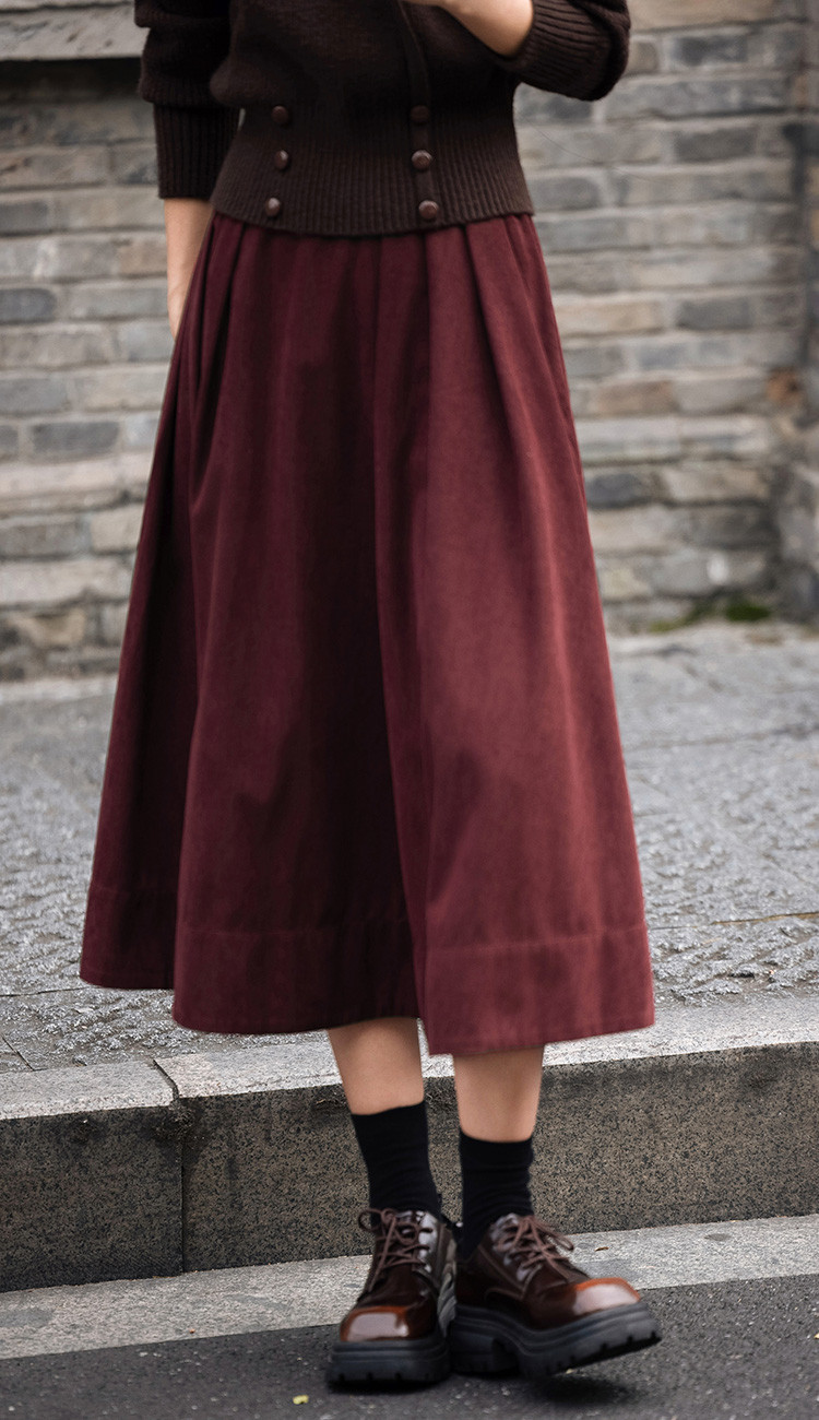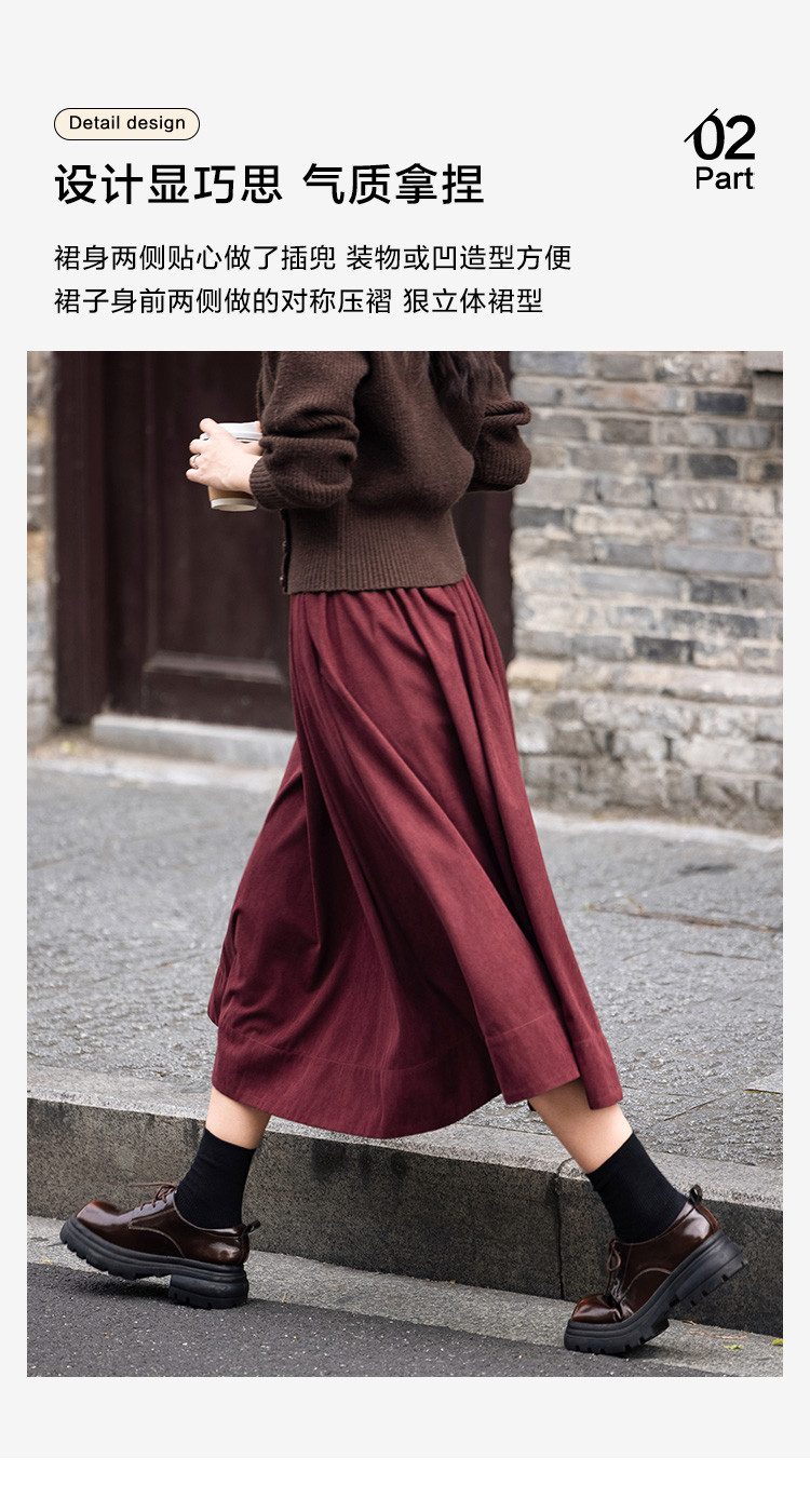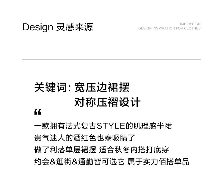 【酒红法式半身裙】秋装腰对称压褶利落长款半裙
