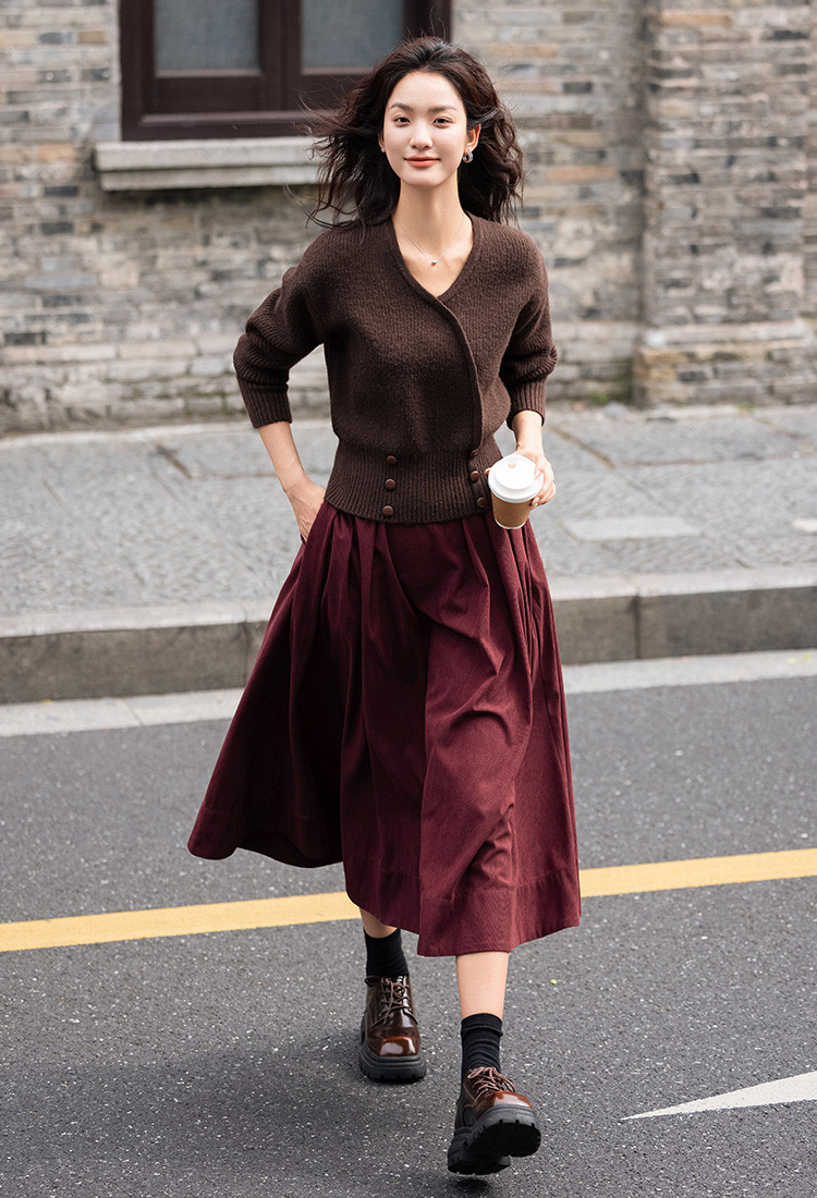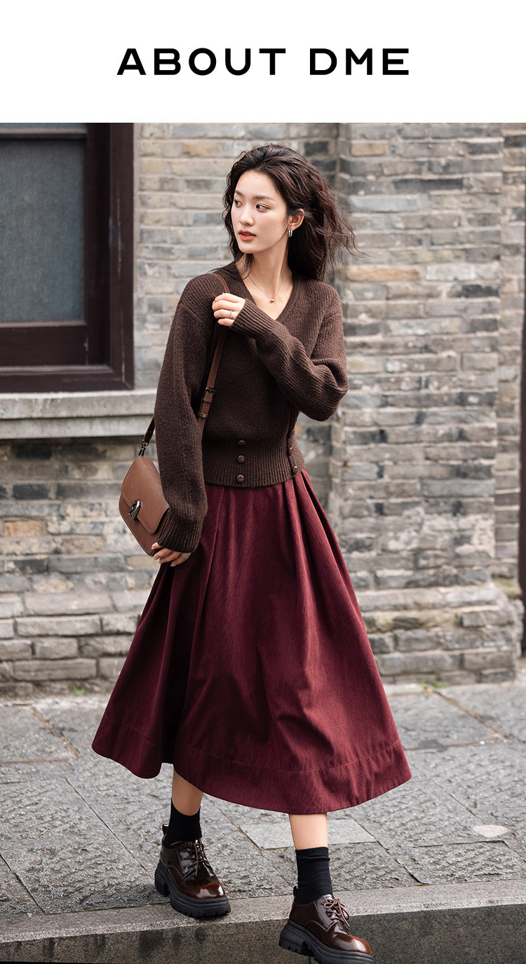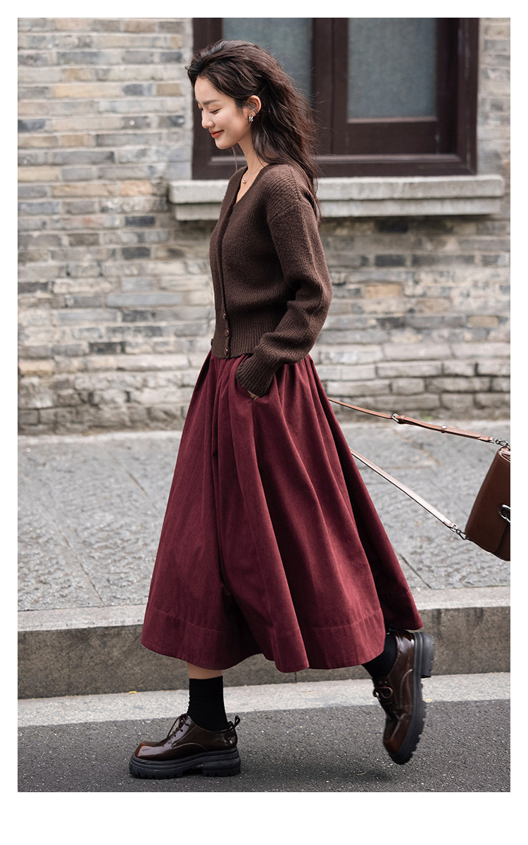 【酒红法式半身裙】秋装腰对称压褶利落长款半裙