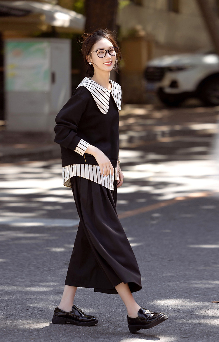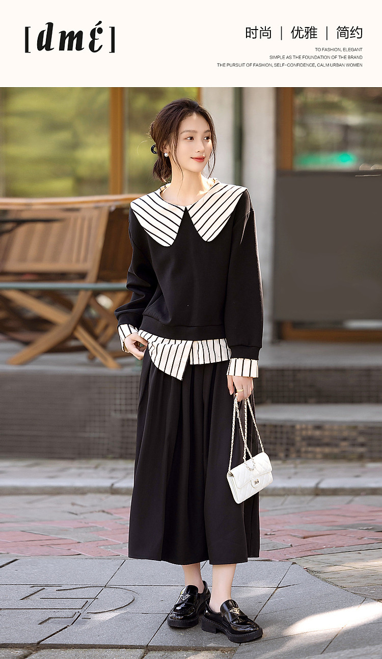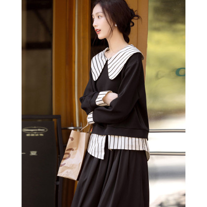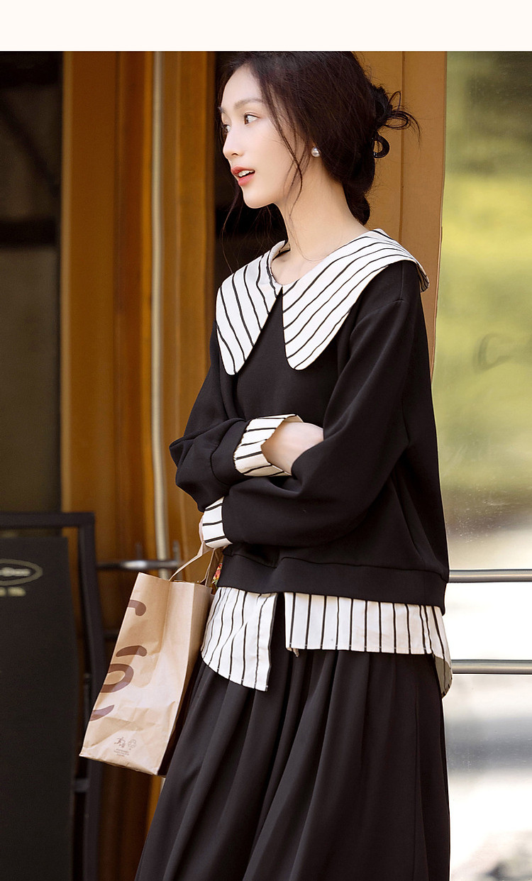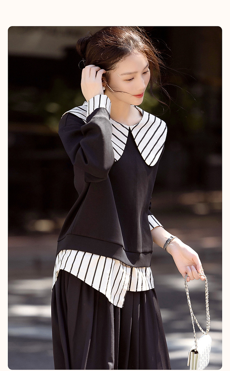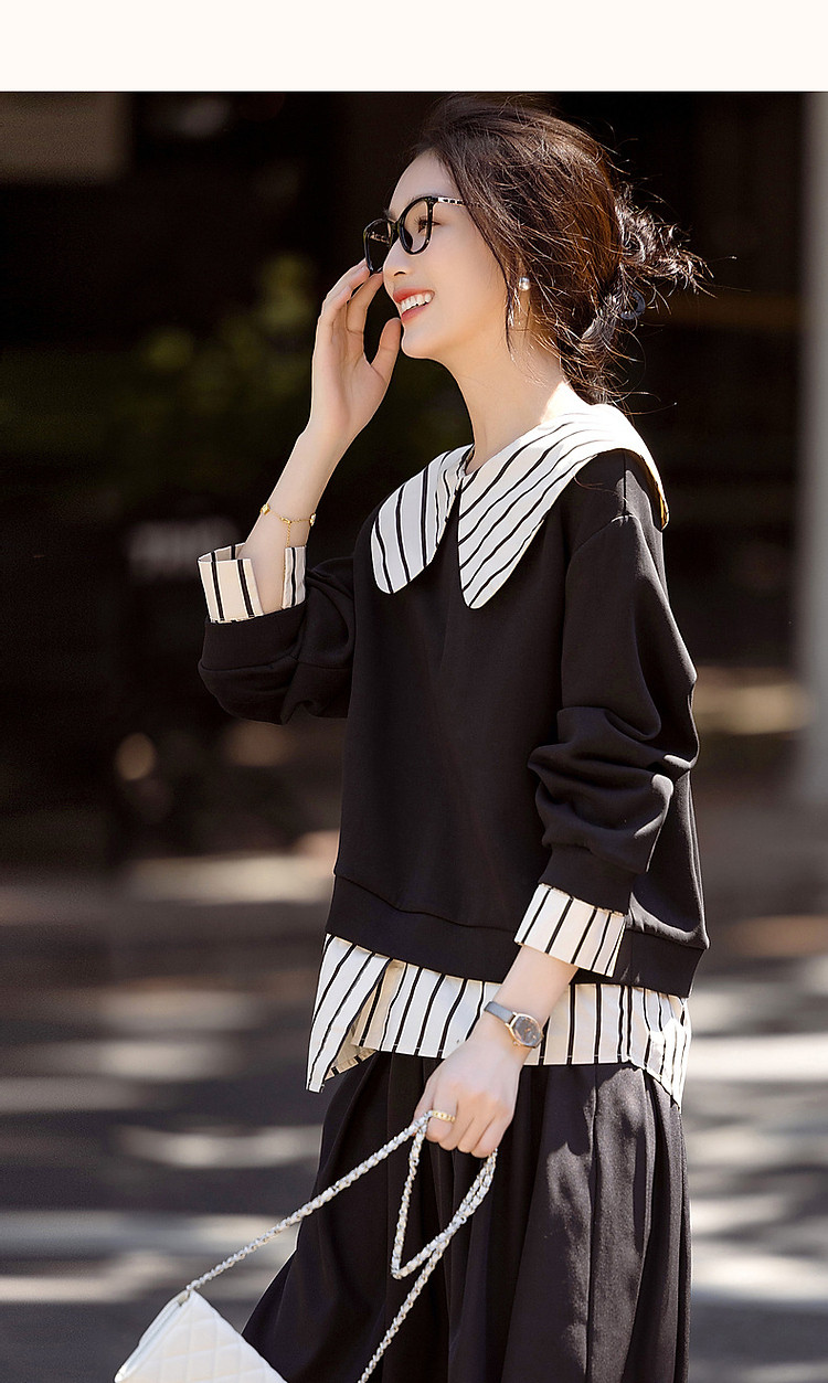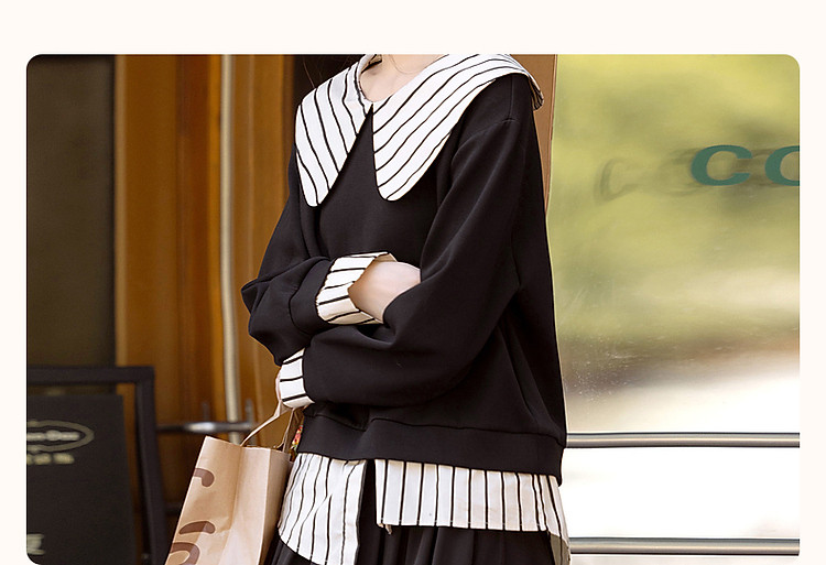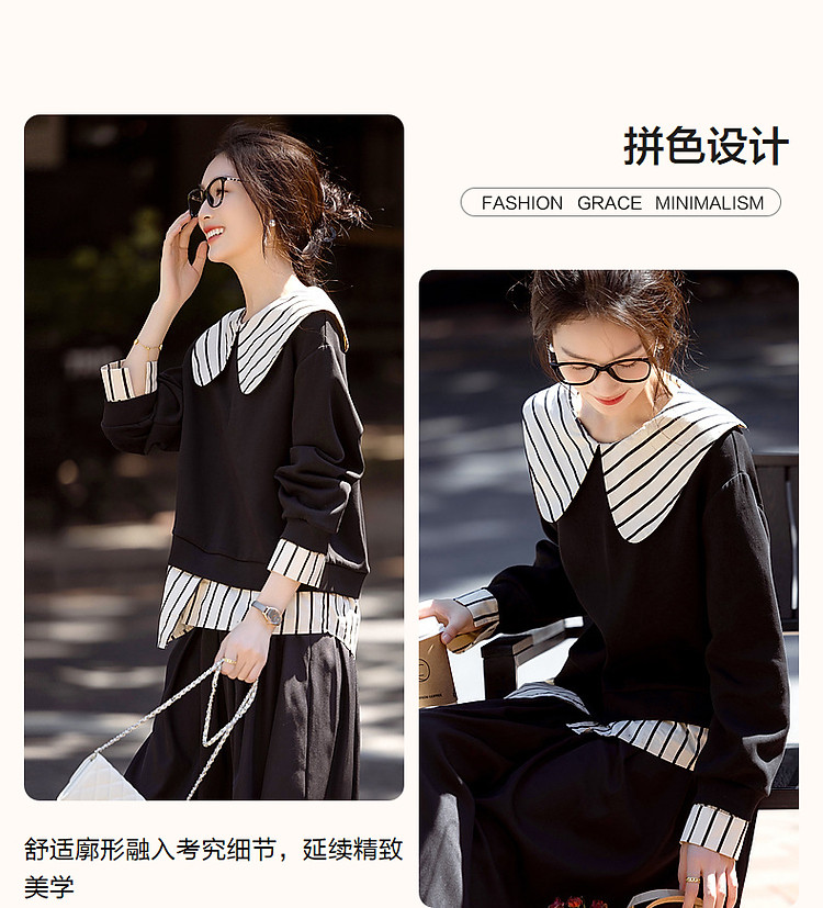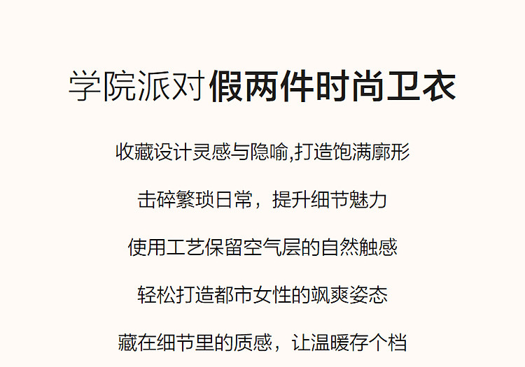 【学院派对】春季假两件大翻领350G空气层拼色卫衣女上衣