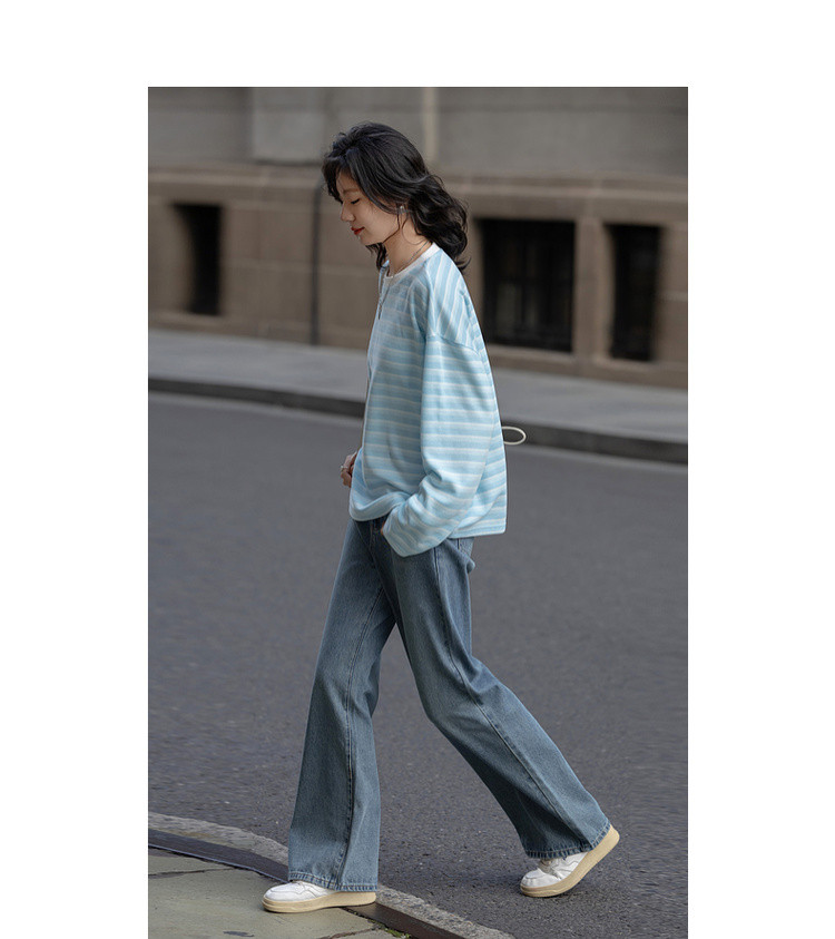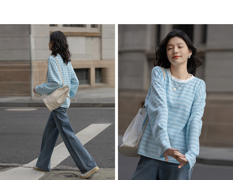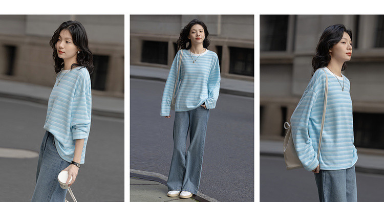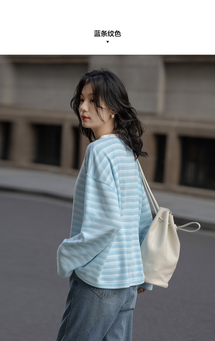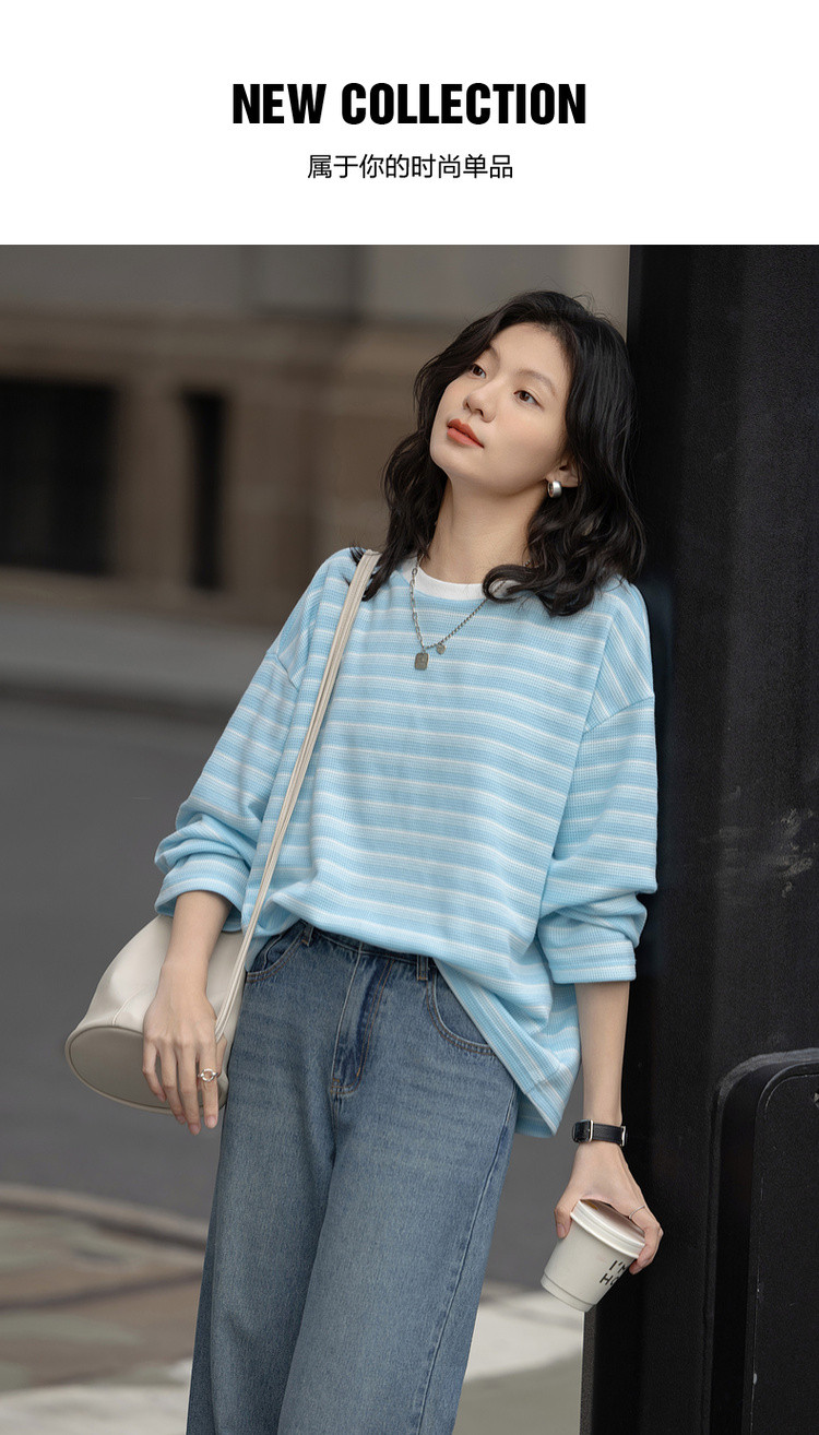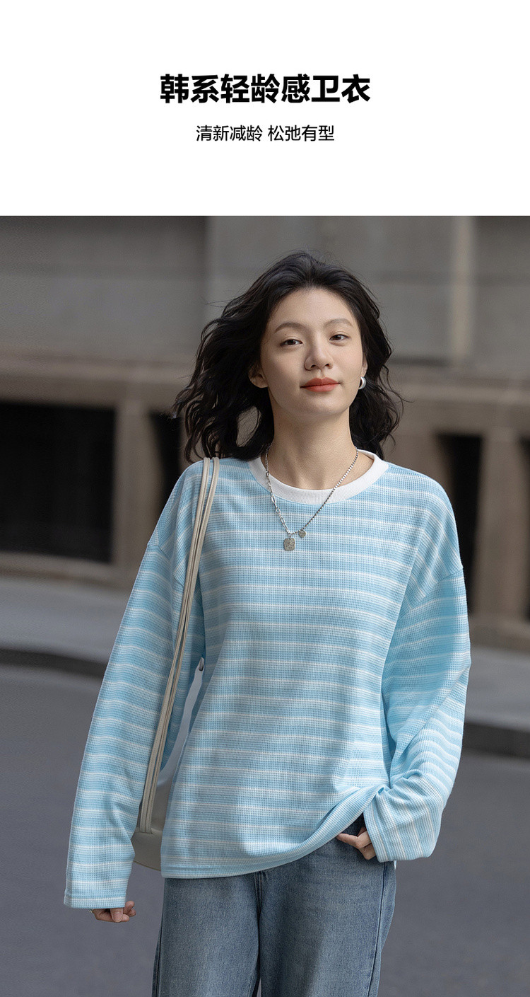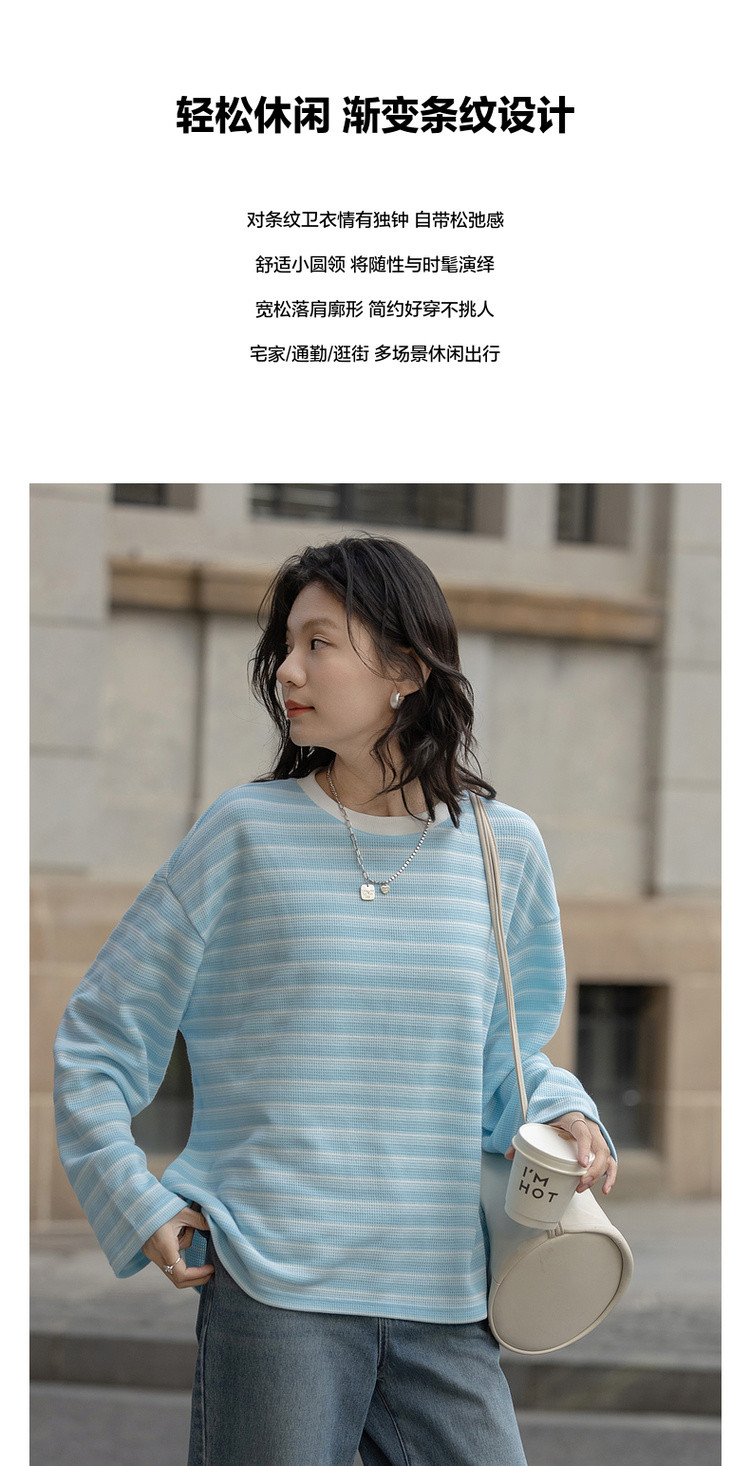 【海岸线日记】春季韩风华夫格渐变条纹上衣宽松遮肉好搭女式卫衣
