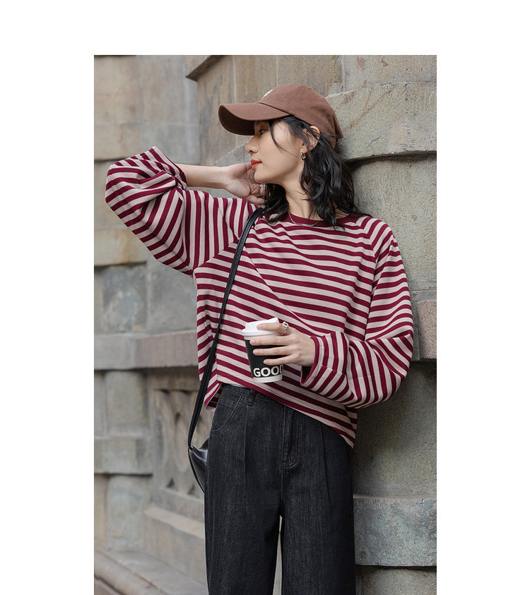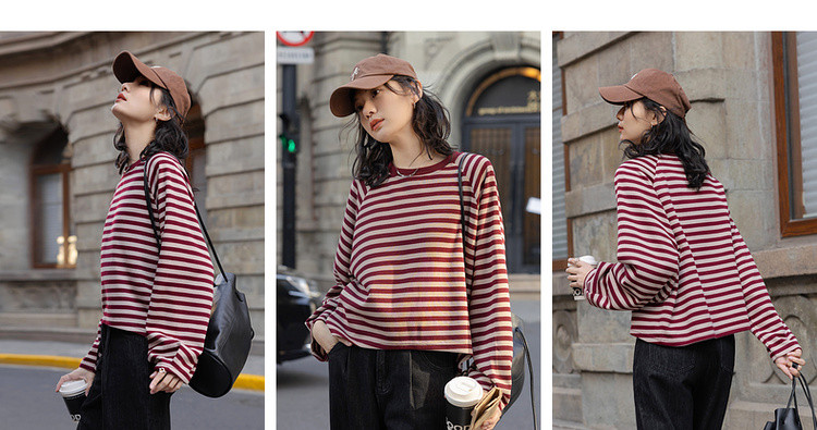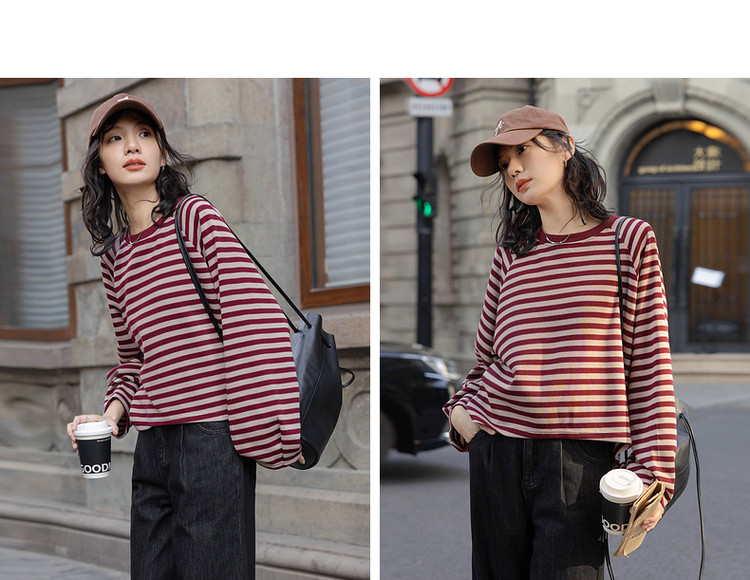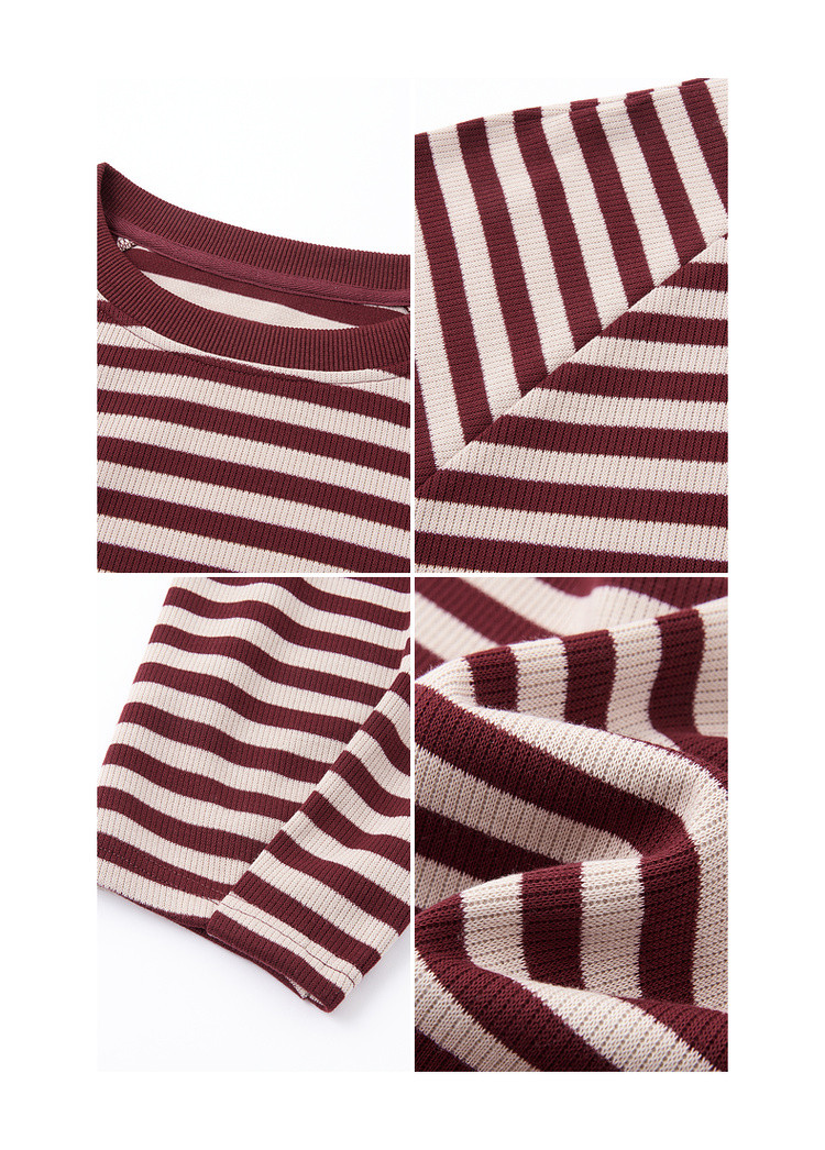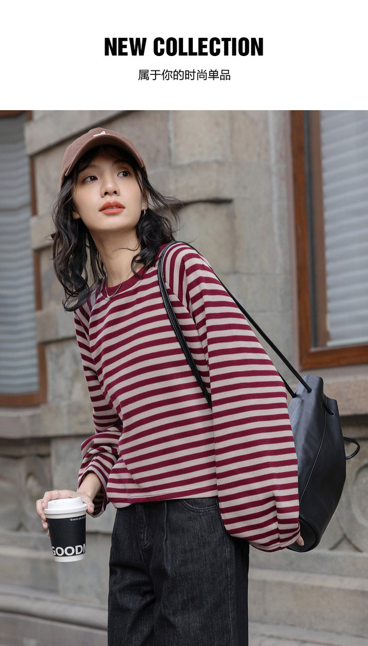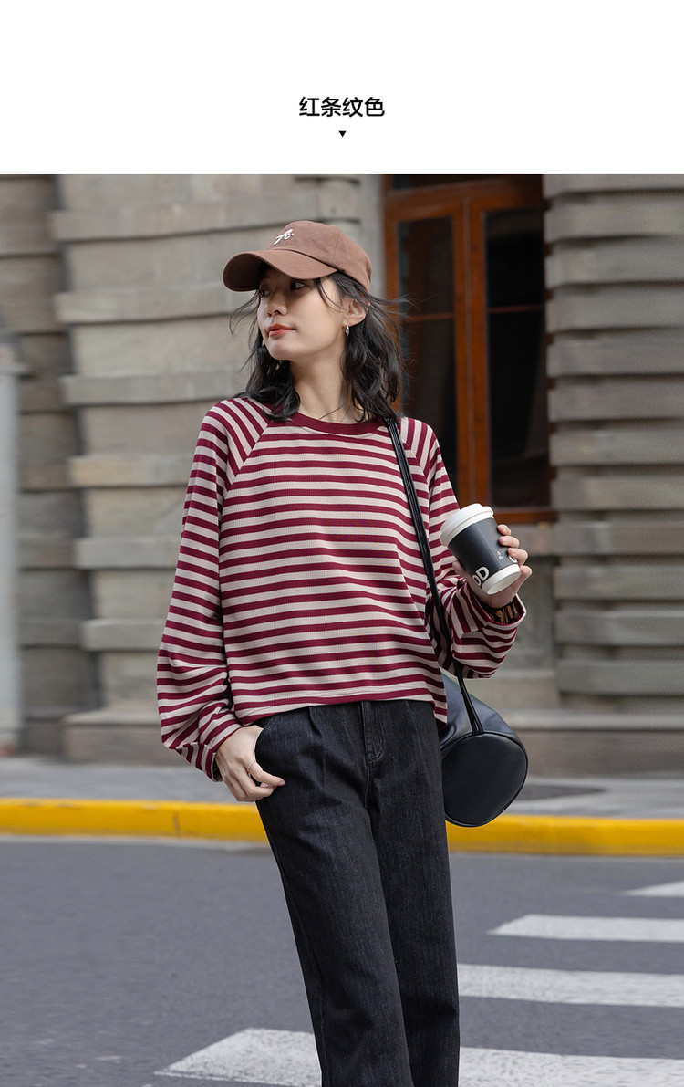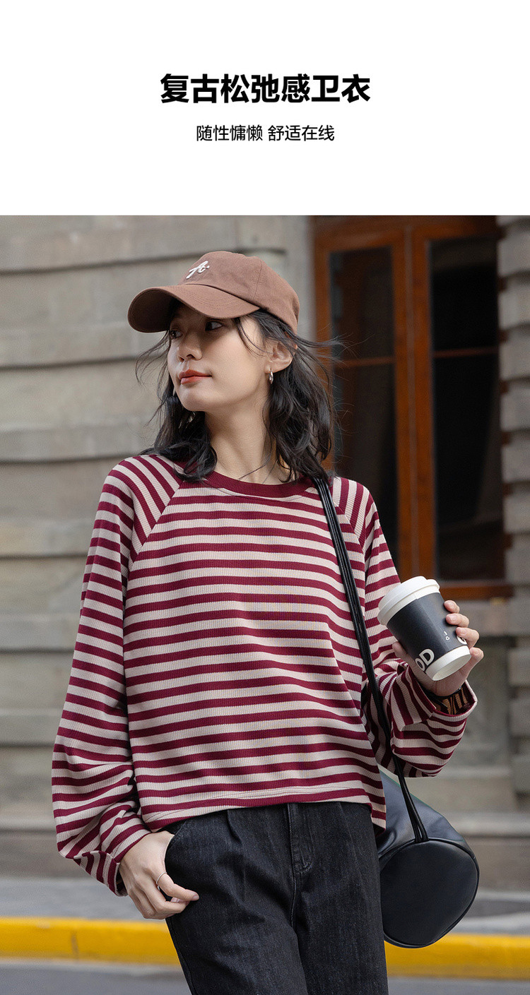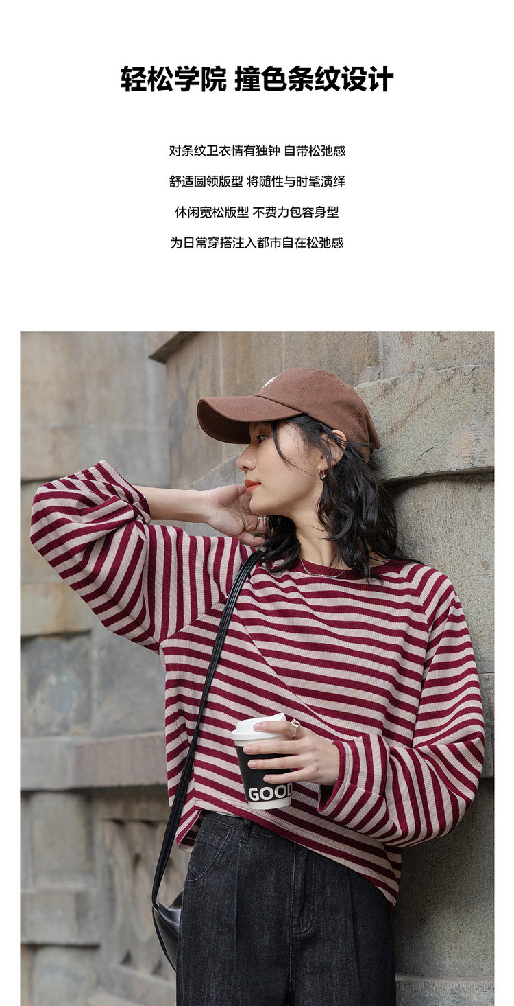 【城市平行线】春季复古撞色条纹圆领上衣宽松遮肉舒适好搭女卫衣