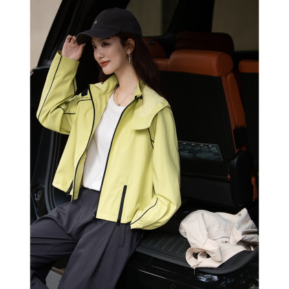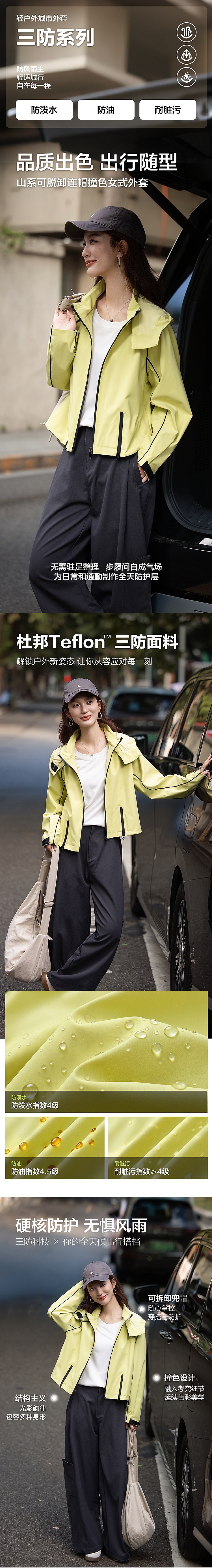 【三防黑科技】2026春山系可脱卸连帽撞色短款装饰拉链宽松女式外套