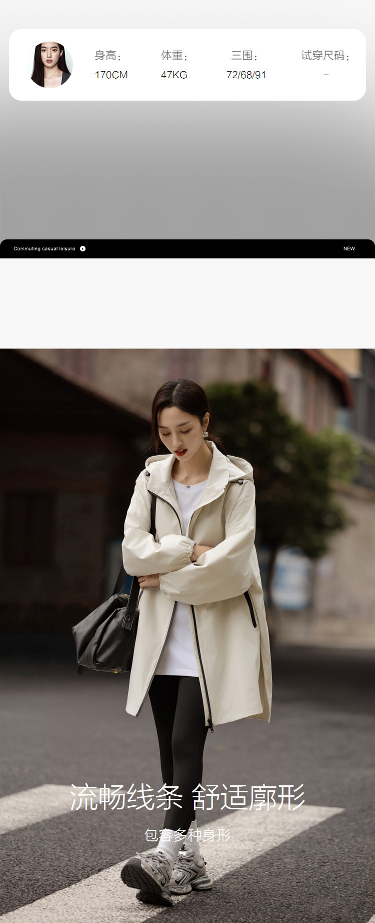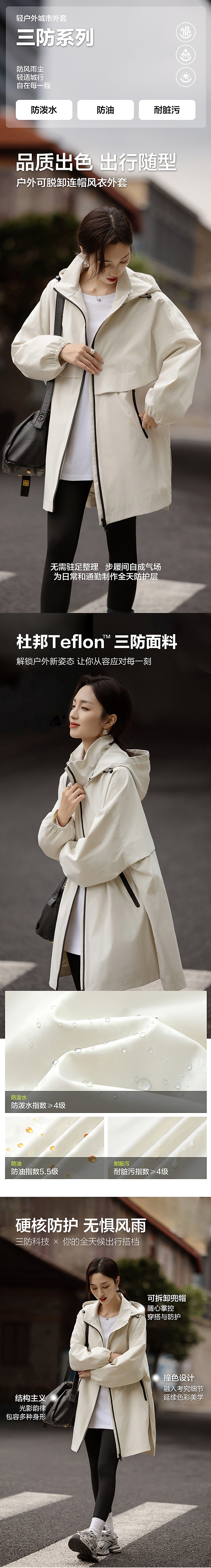 【三防黑科技】2026春户外可脱卸连帽撞色拉链宽松中长女式风衣外套