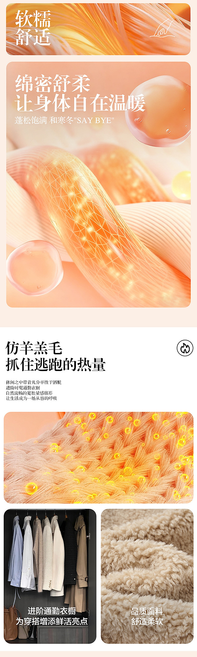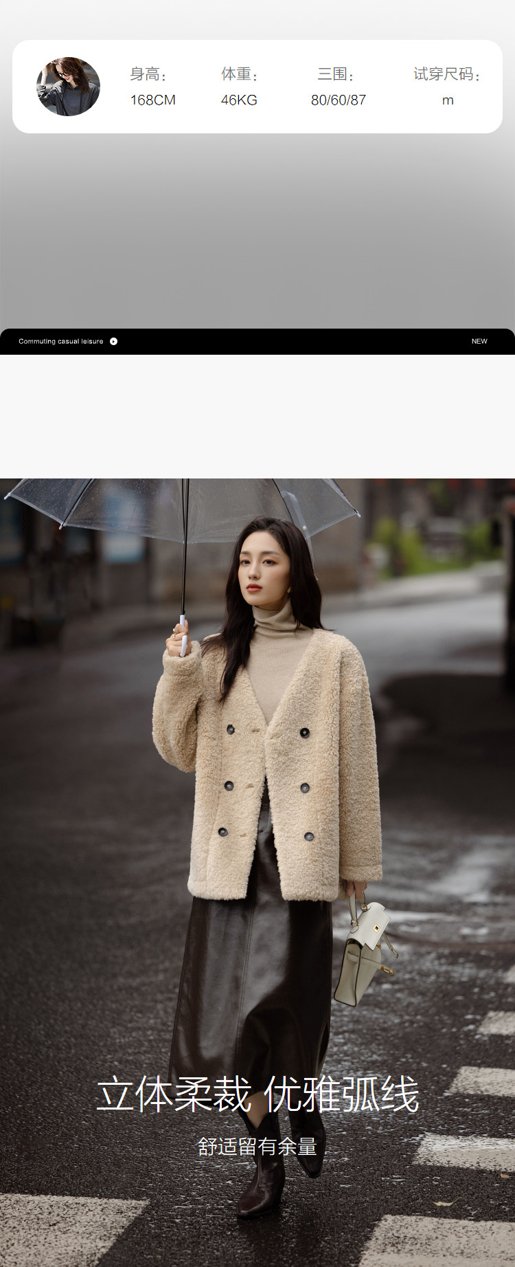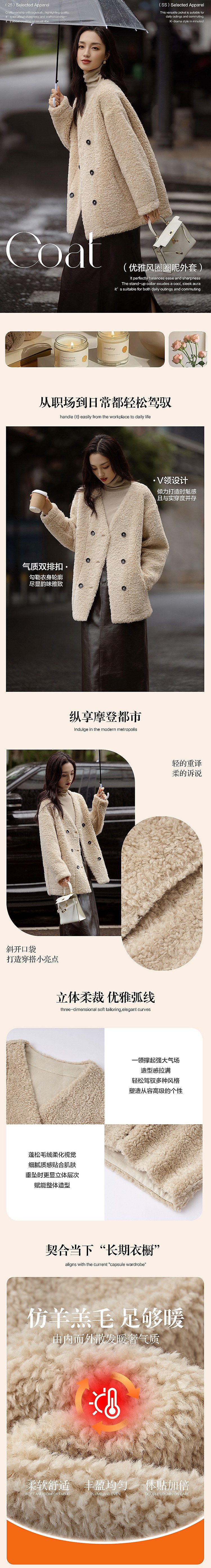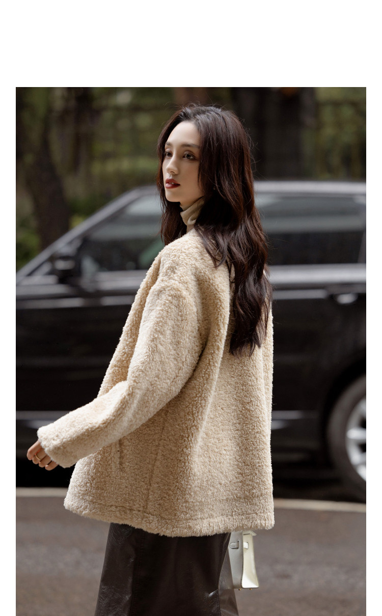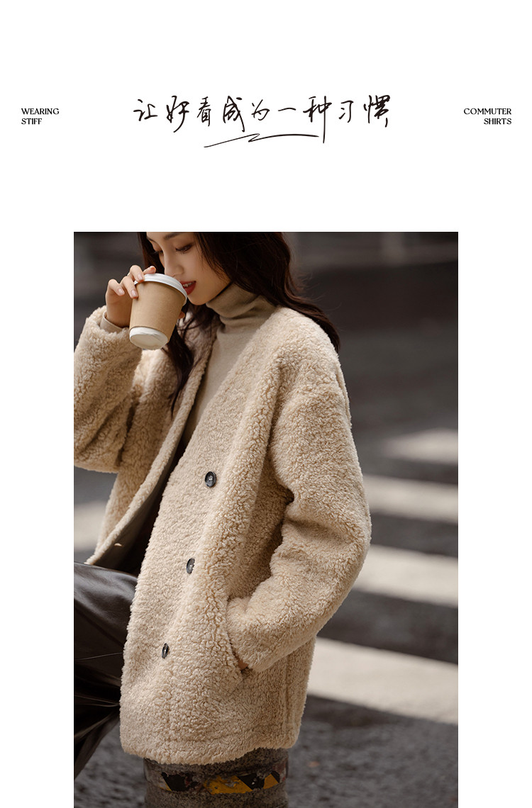 【暖fufu仿羊羔毛】冬季保暖V领撞色双排扣小个子女式外套