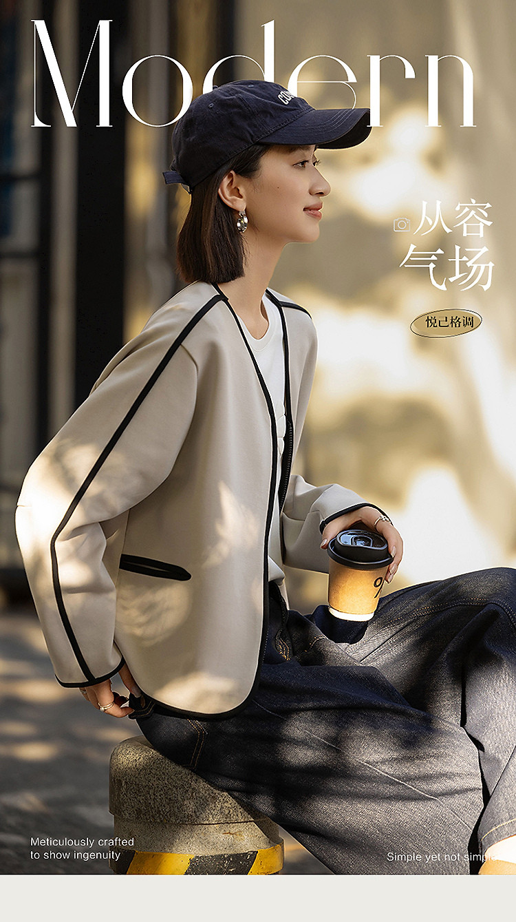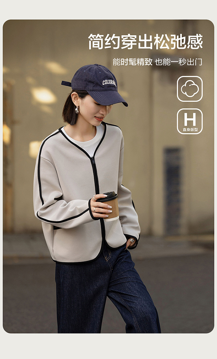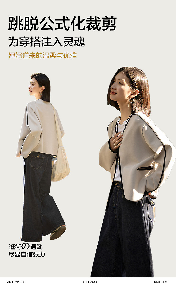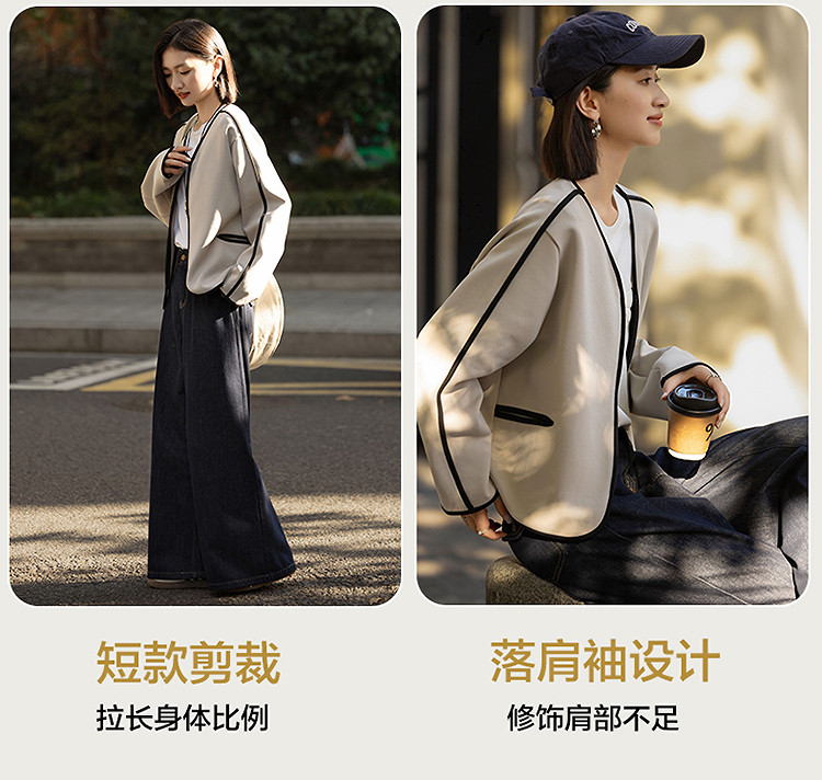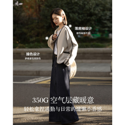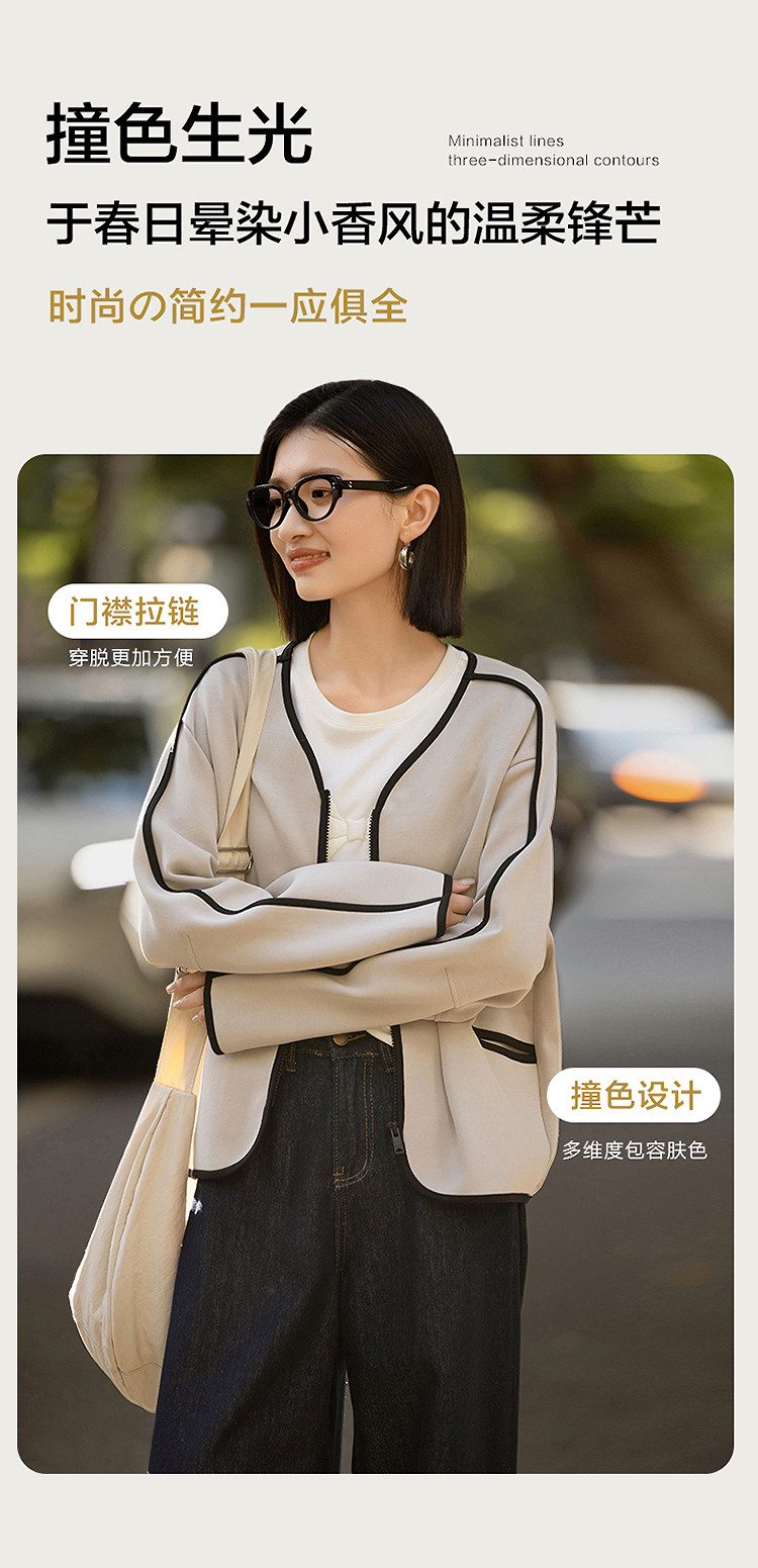 【350G空气层】2026春舒暖小香风V领撞色箱型短款宽松女外套