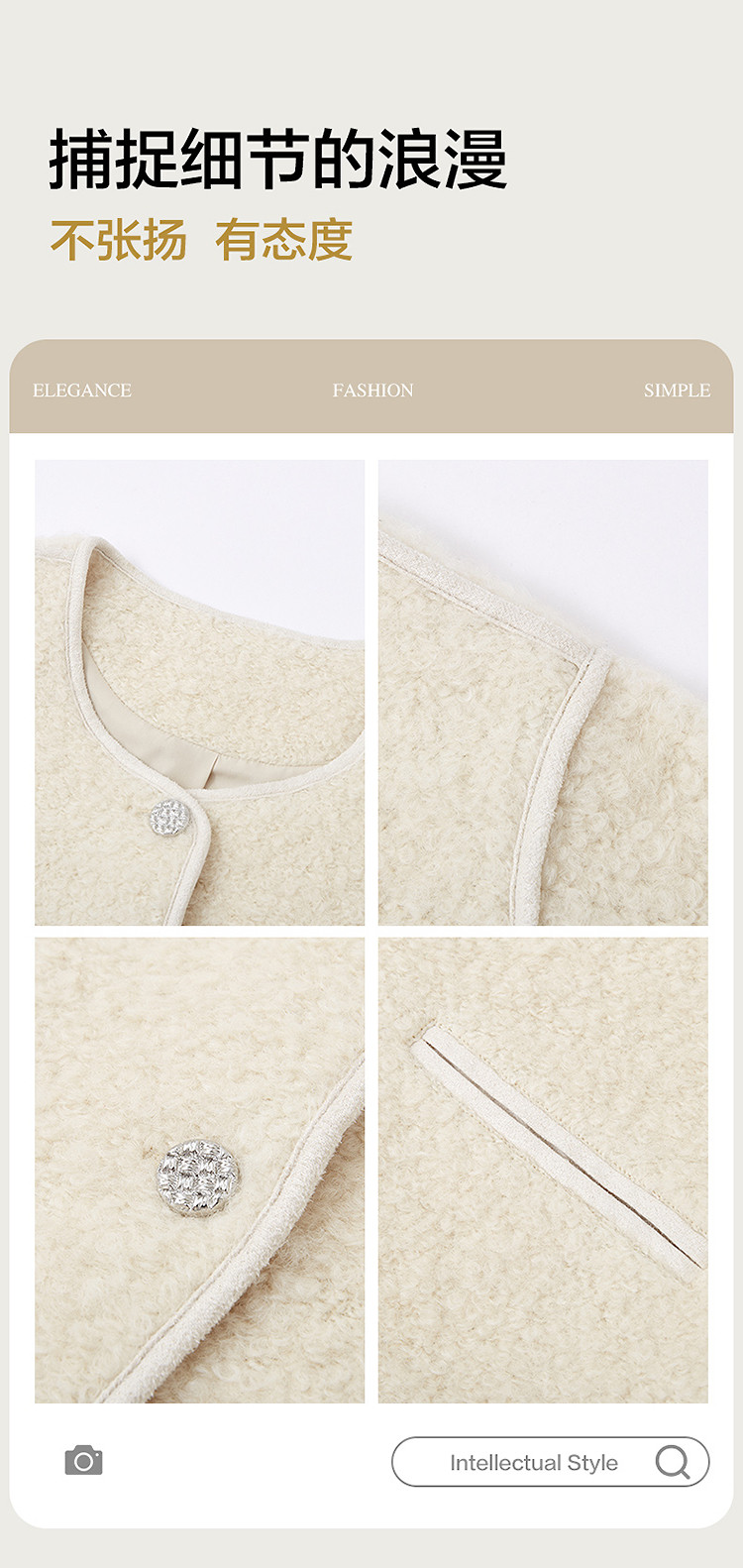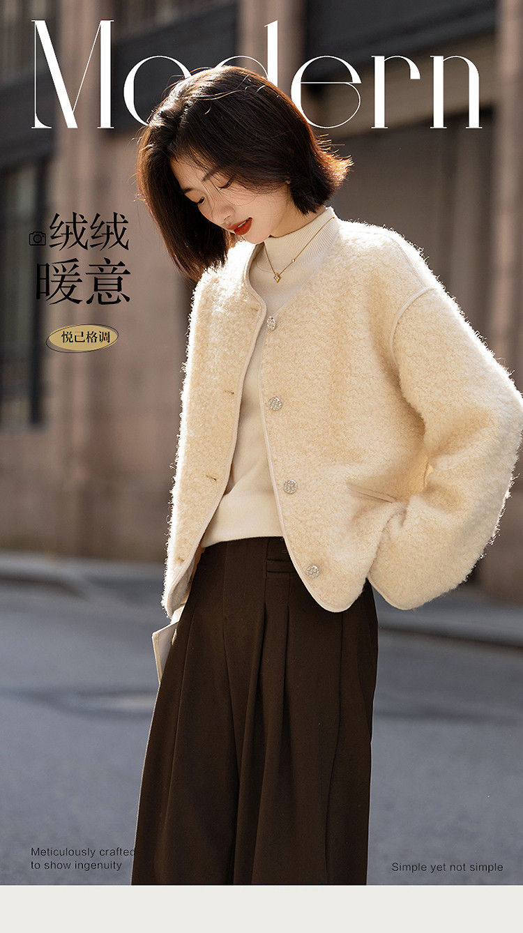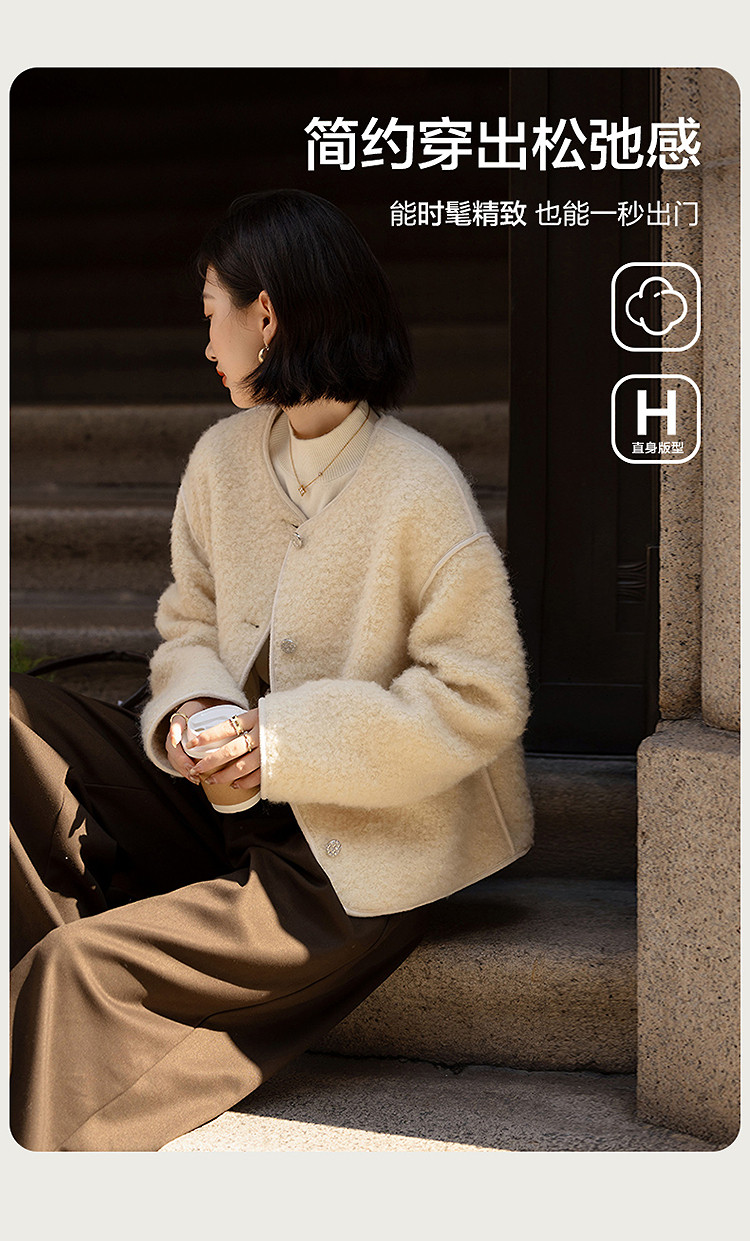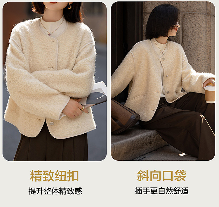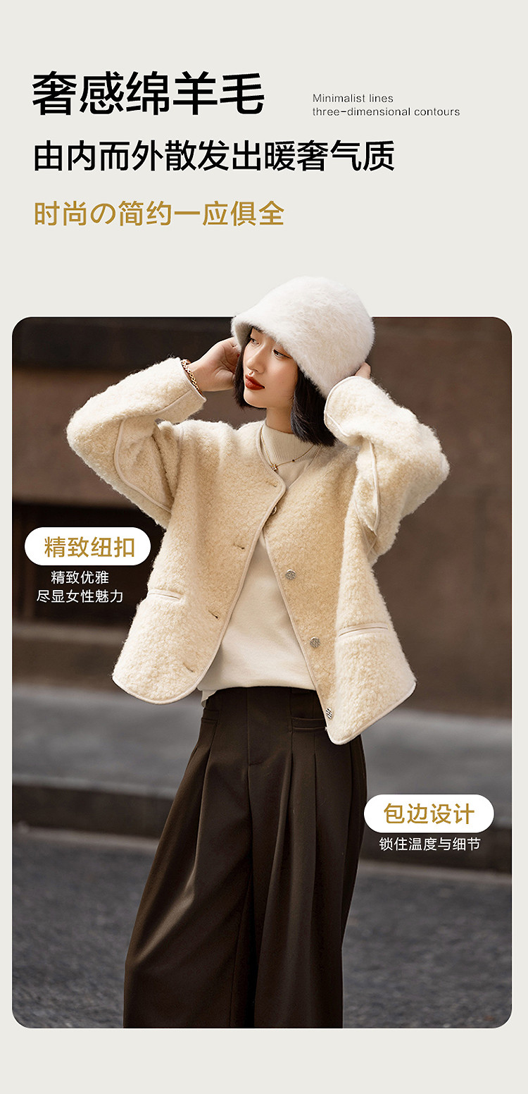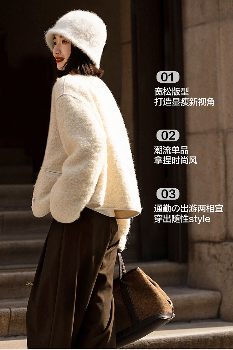 【奢感绵羊毛】冬季醇厚保暖圈圈呢上衣通勤包边圆领宽松女式外套