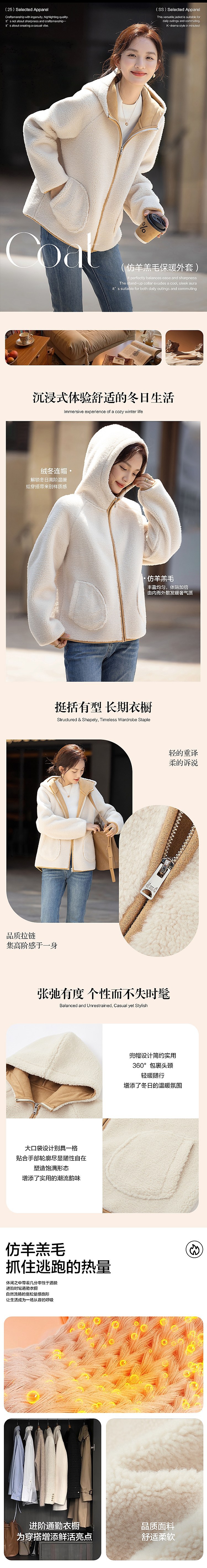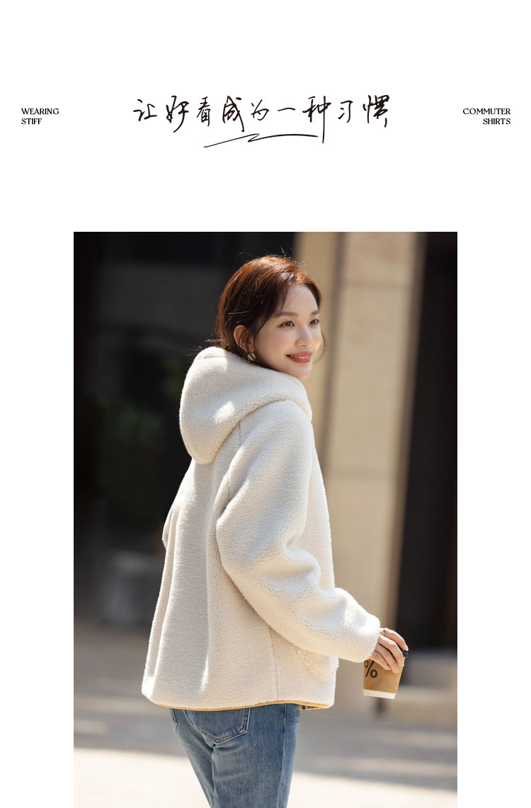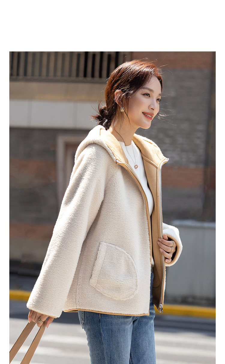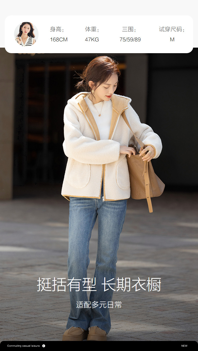 【绒冬暖境】冬季连帽宽松大口袋撞色仿羊羔毛保暖小个子女式外套