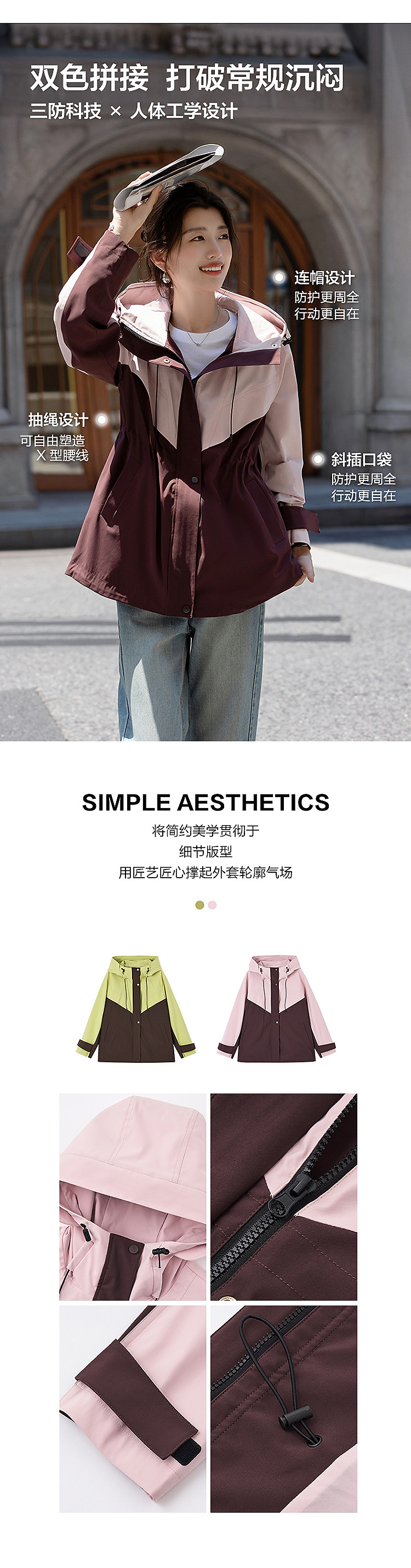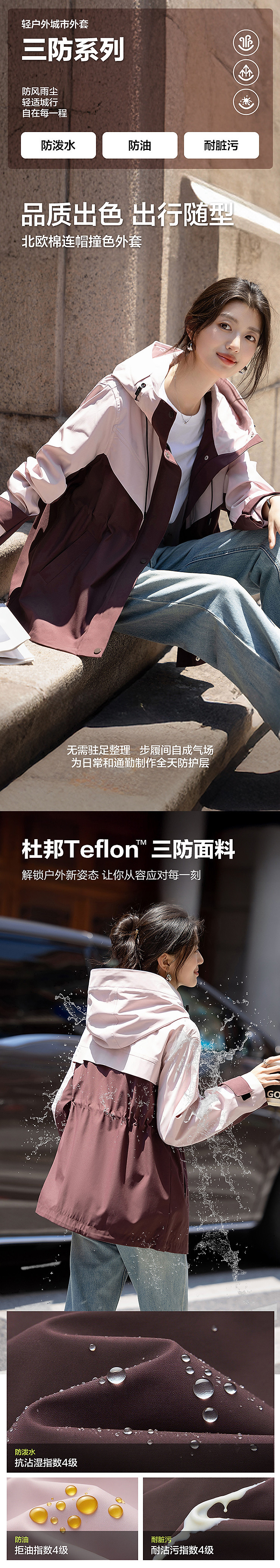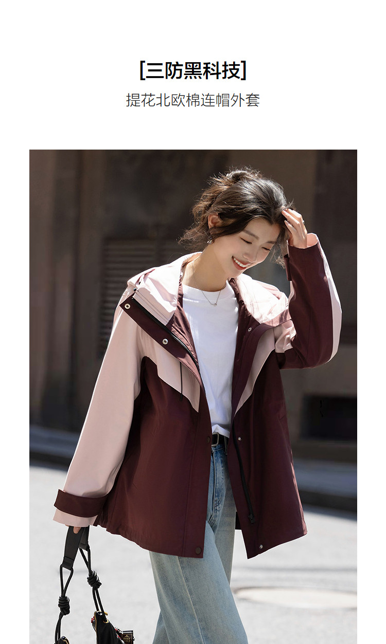【三防黑科技】秋季小提花北欧棉轻户外连帽撞色拼接抽绳女式外套