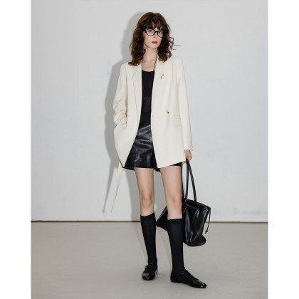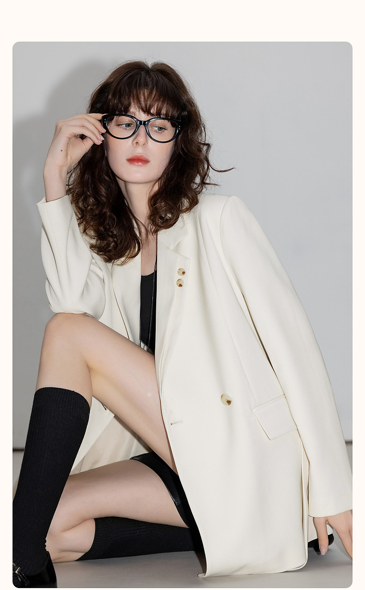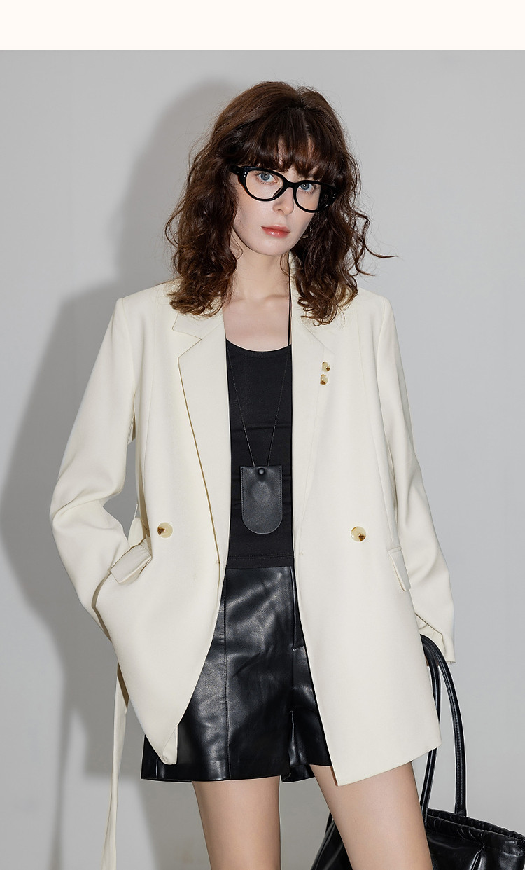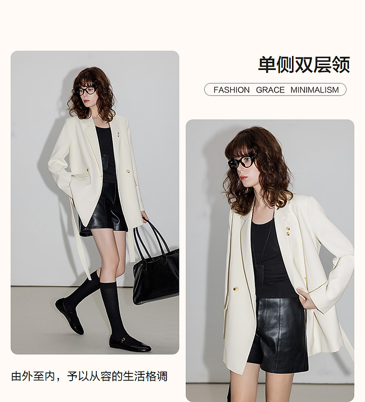 【设计感单侧双层领】春季通勤西装两粒扣长袖藏肉短款西服外套女
