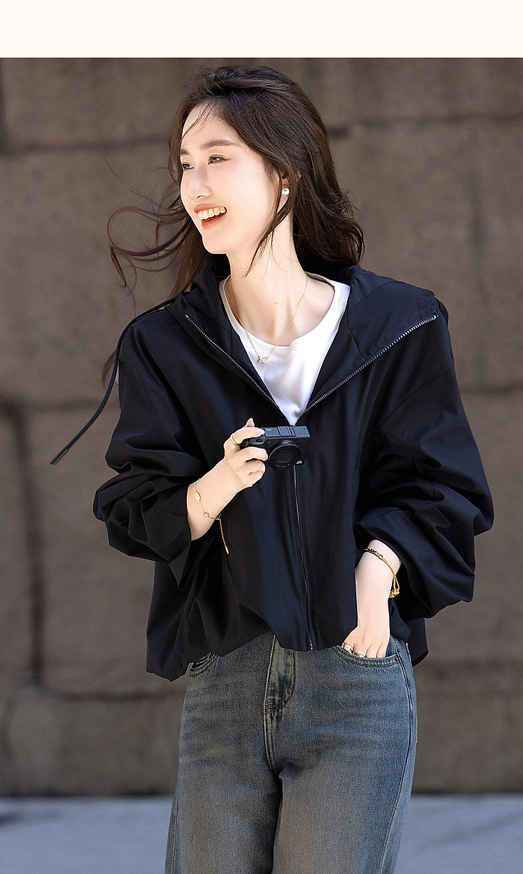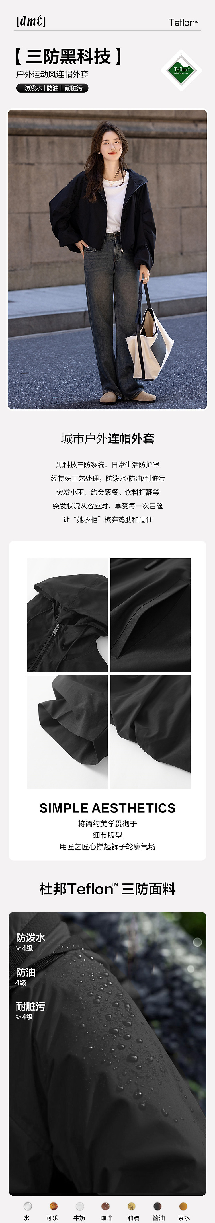 【敢野行动】春秋黑科技三防连帽气质抽褶小个子短款气质女式外套