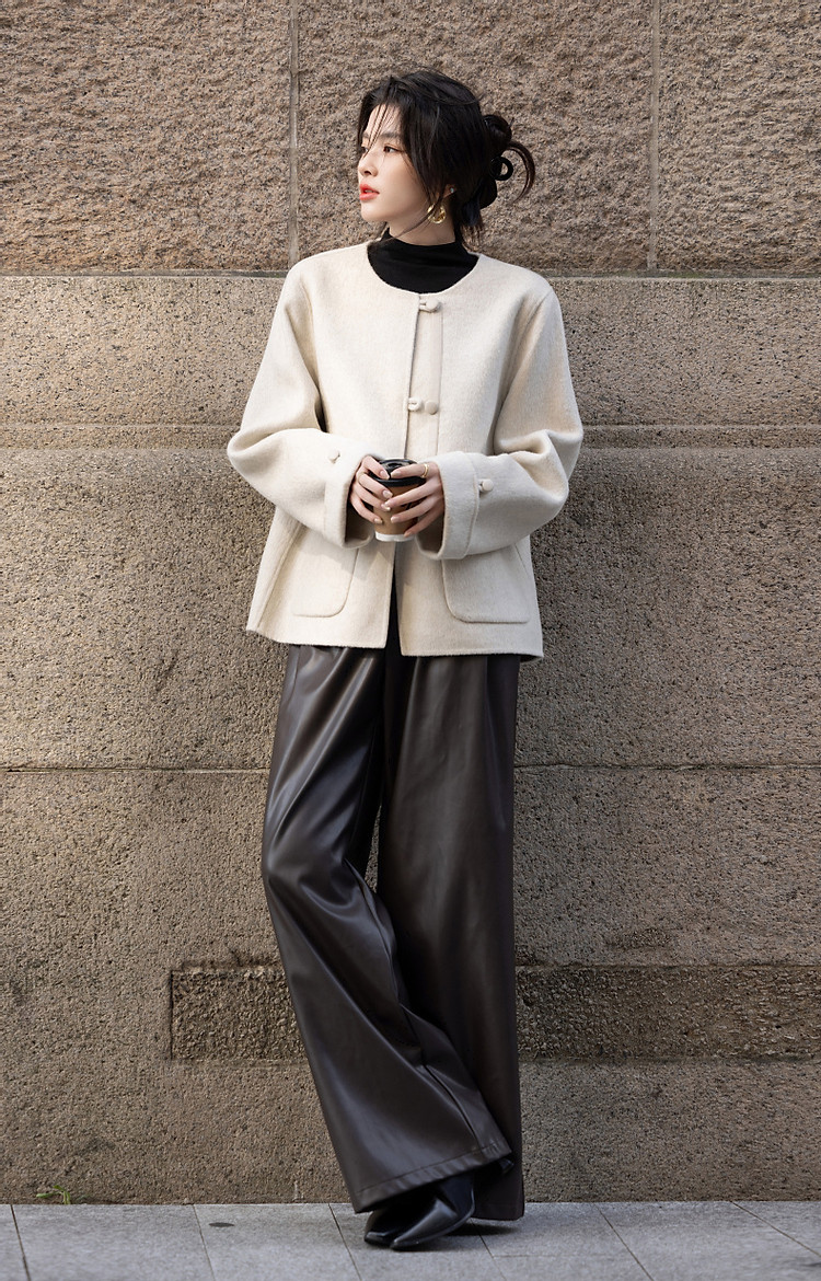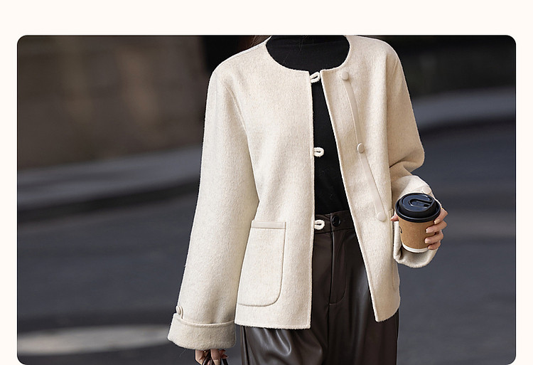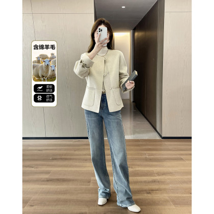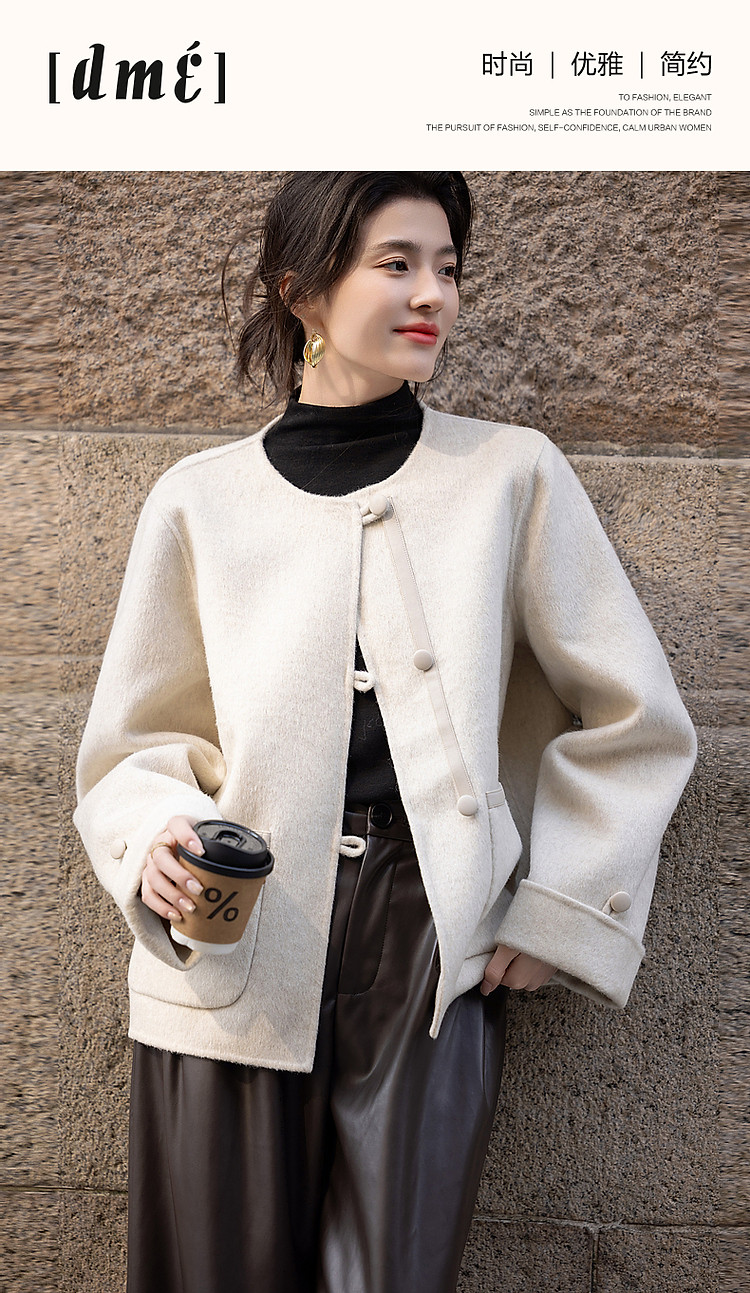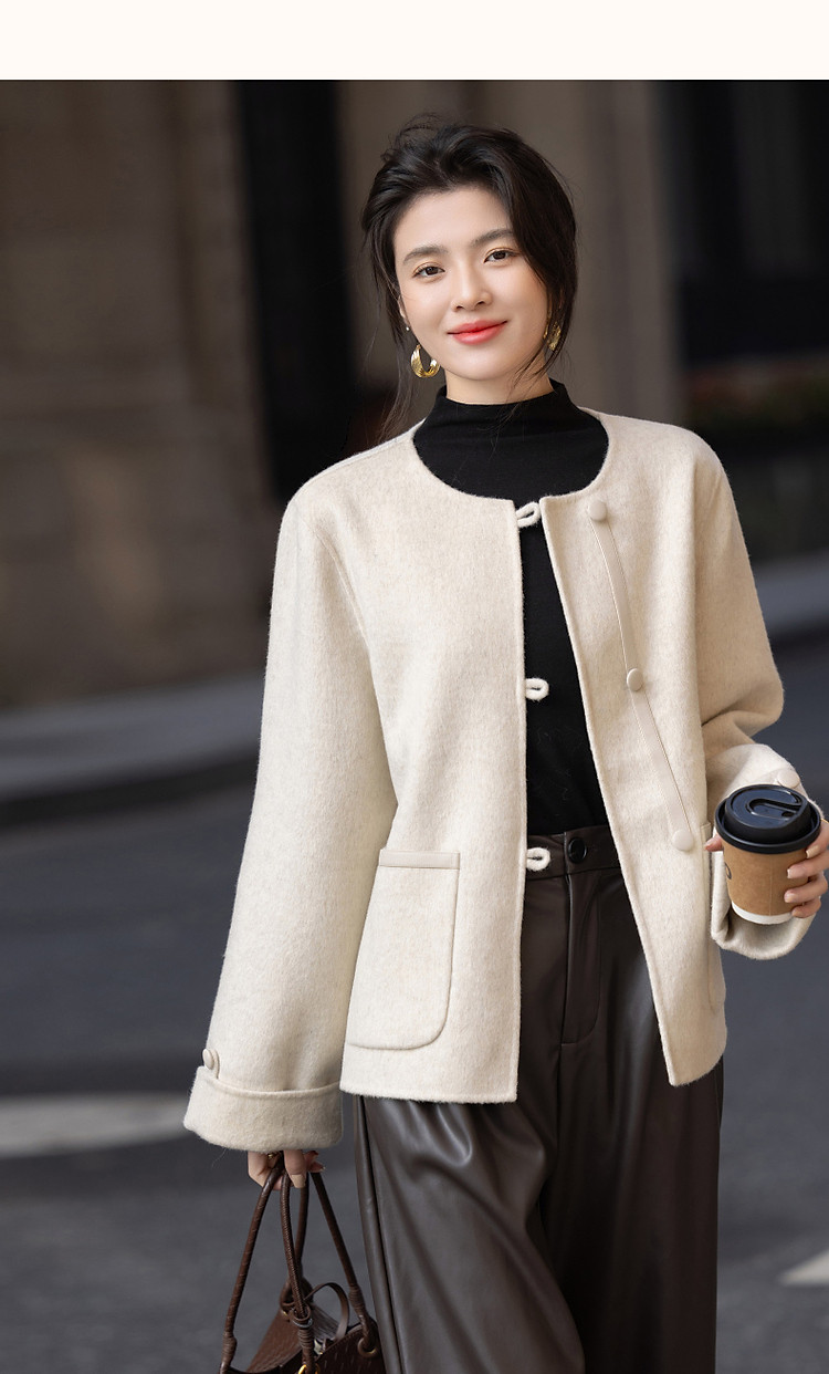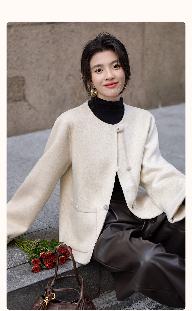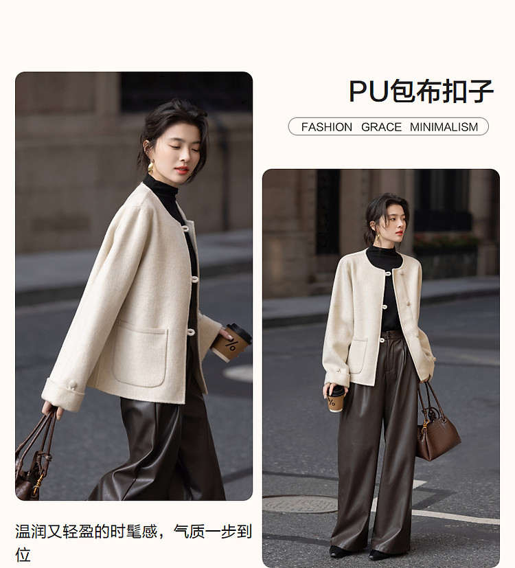 【热力感穿搭】春季静奢风呼吸感含绵羊毛双面呢时髦折边女式外套