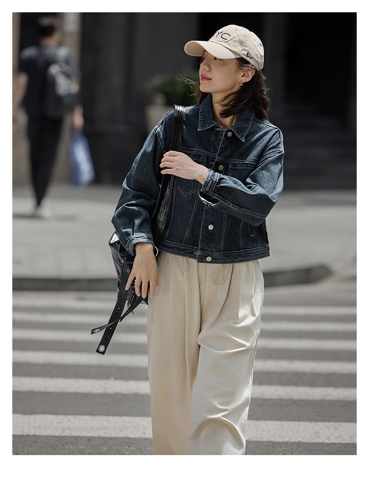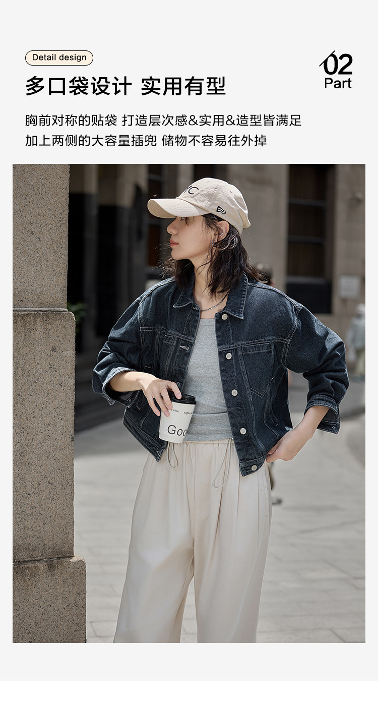 【深蓝色牛仔外套】秋小短款立体廓形多口袋视觉吸睛外套