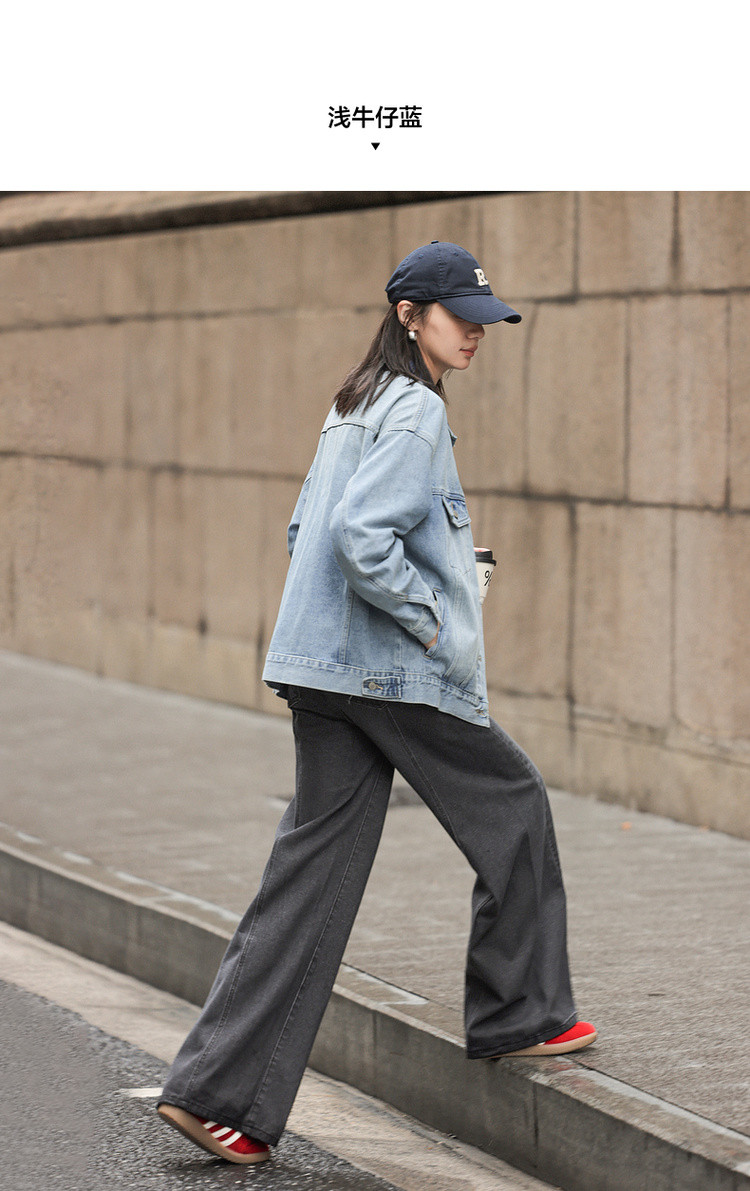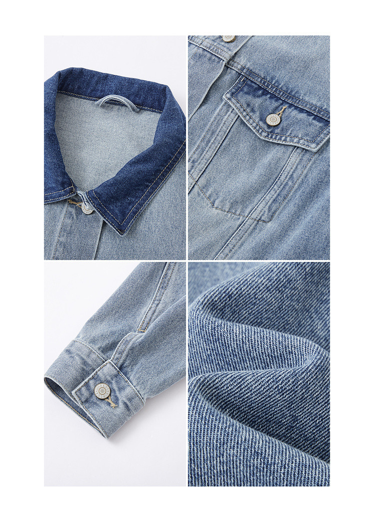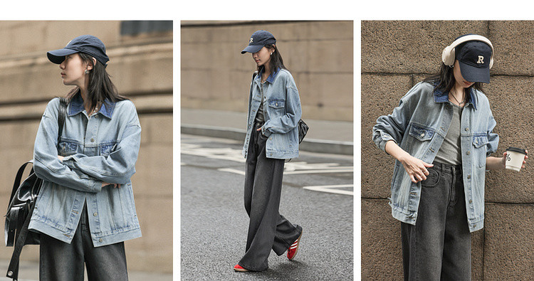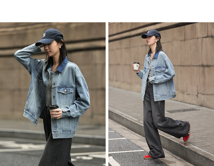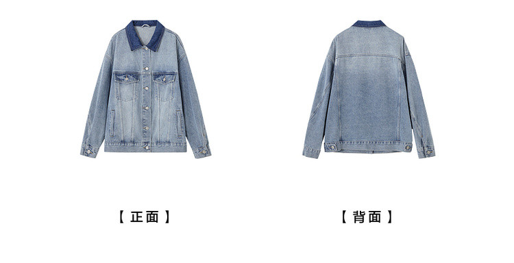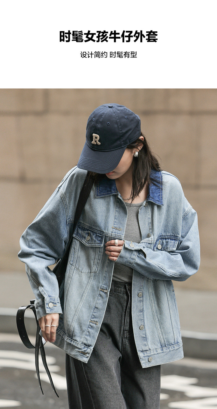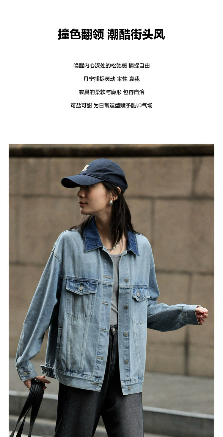 【与丹宁共自由】春季云感棉撞色小翻领分割宽松藏肉女式牛仔外套