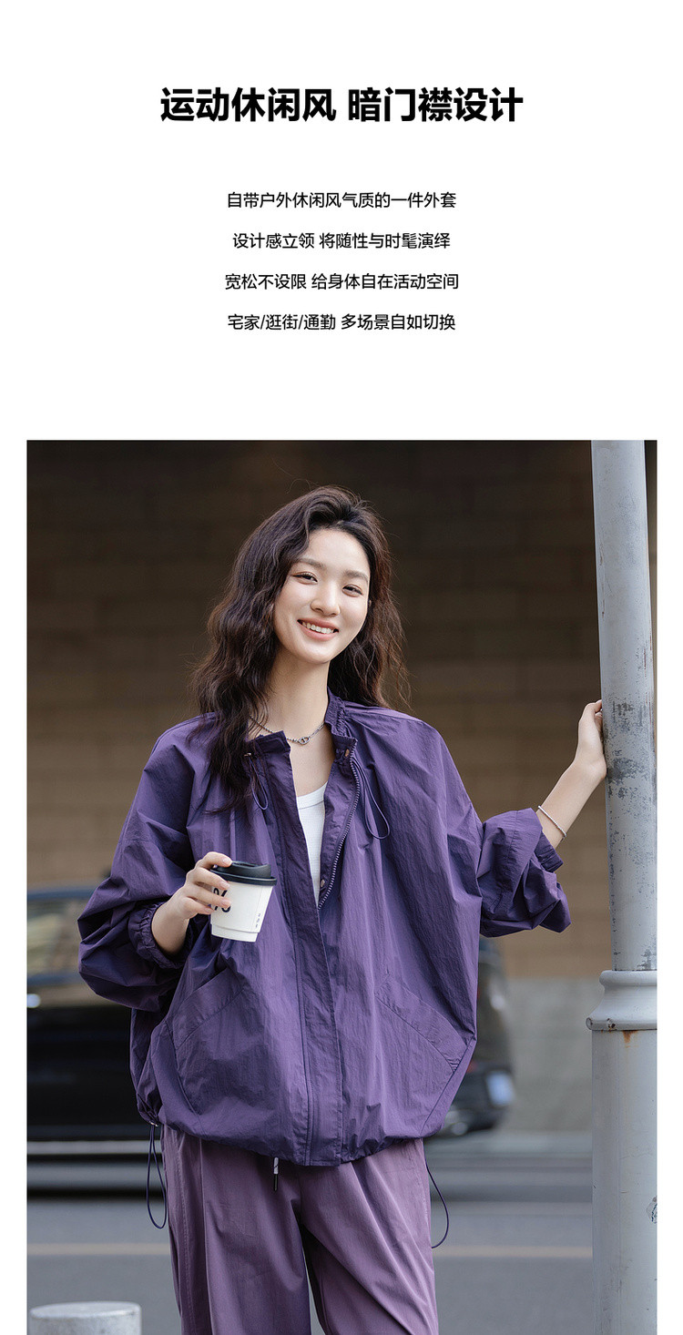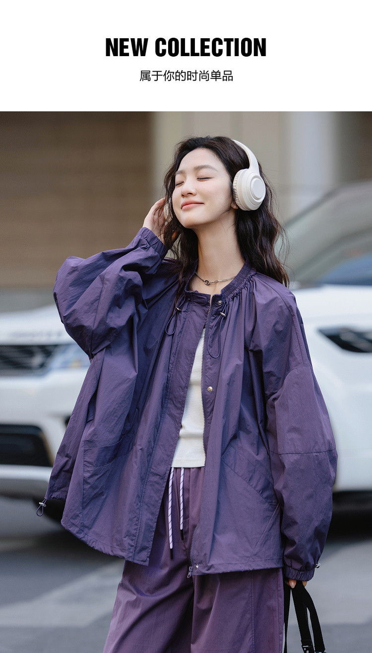 【城市轻户外穿搭】春季时髦尼龙立领暗门襟廓形感遮肉女休闲外套
