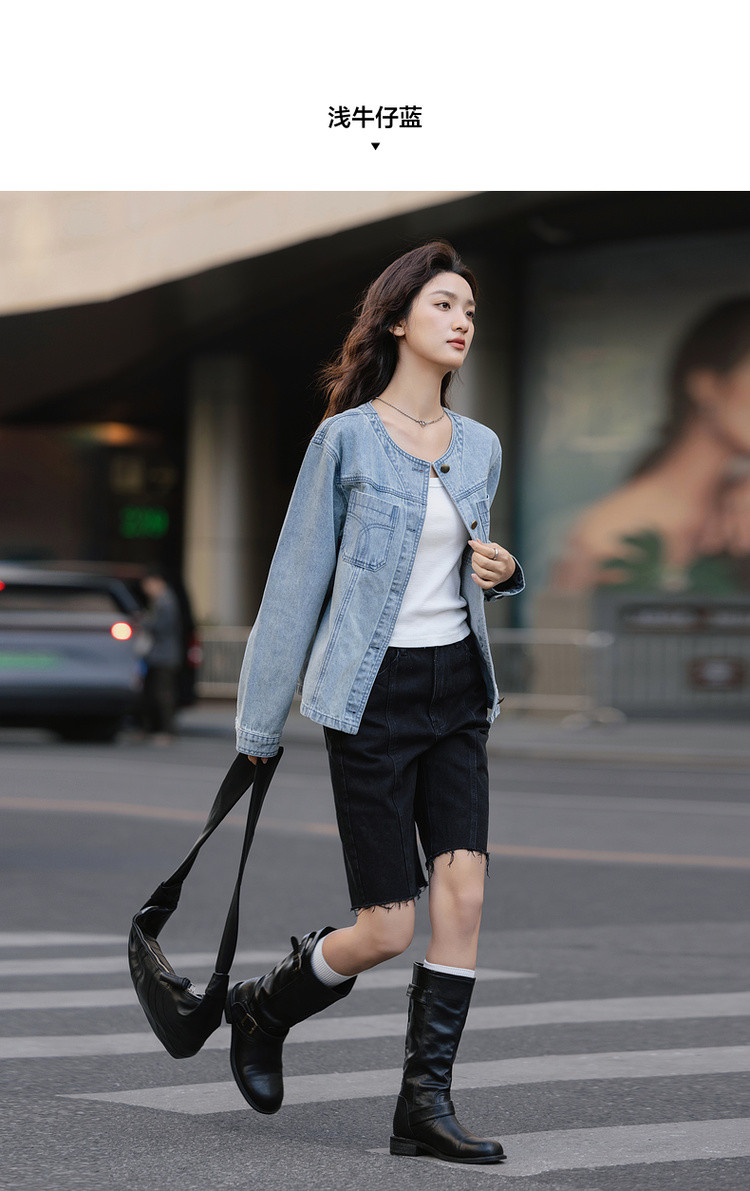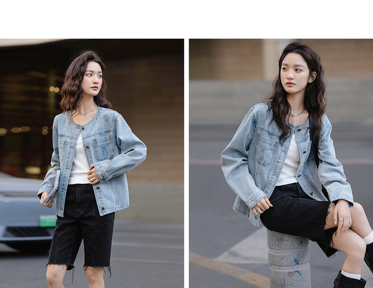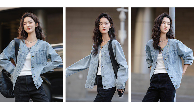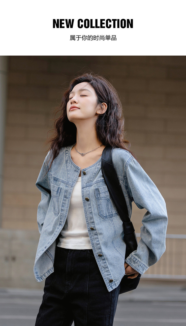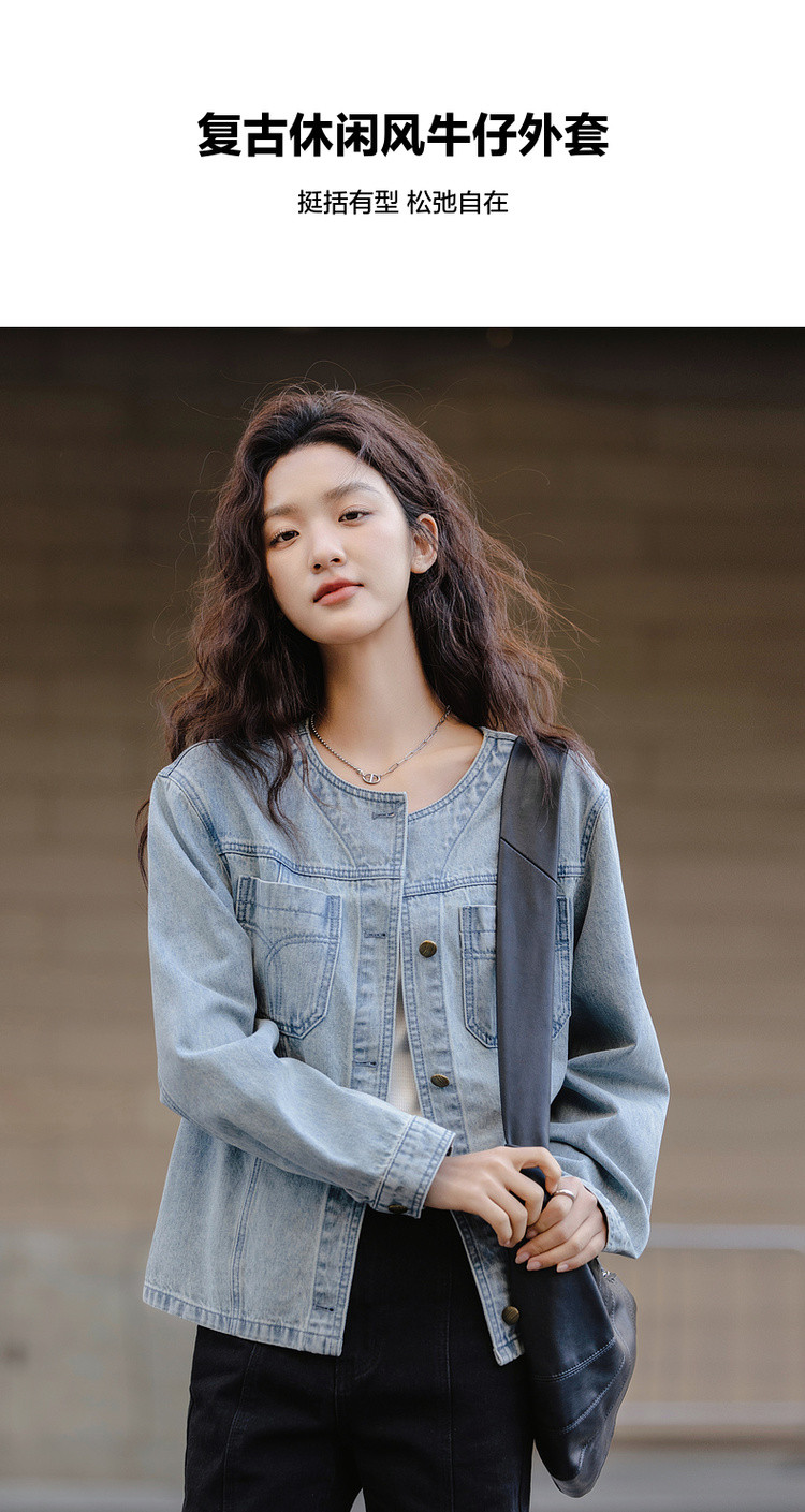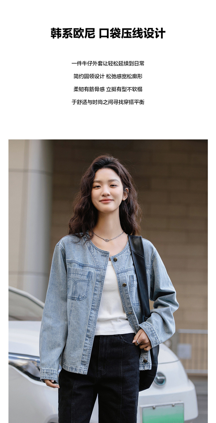 【单宁云感棉】春季韩风设计感口袋压线宽松舒适藏肉女式牛仔外套