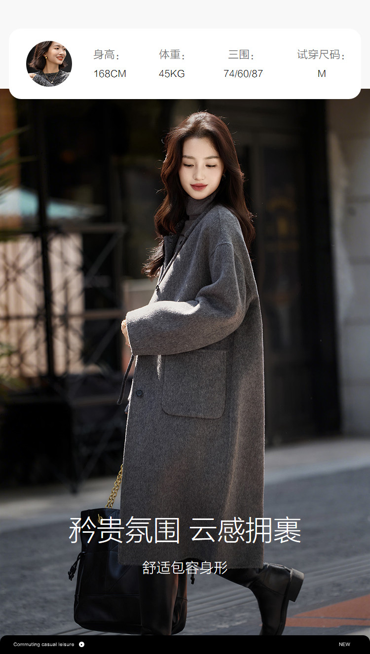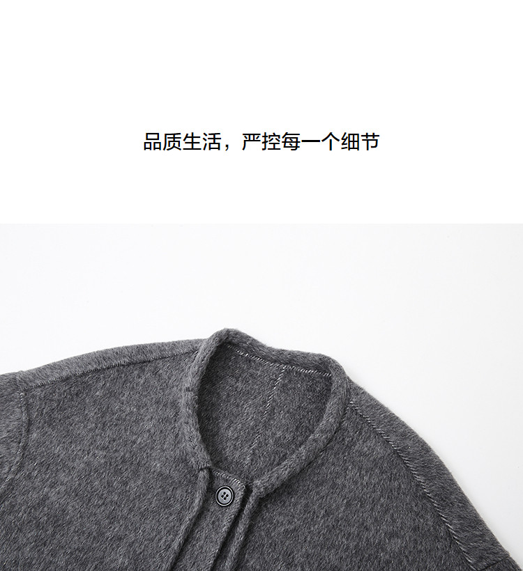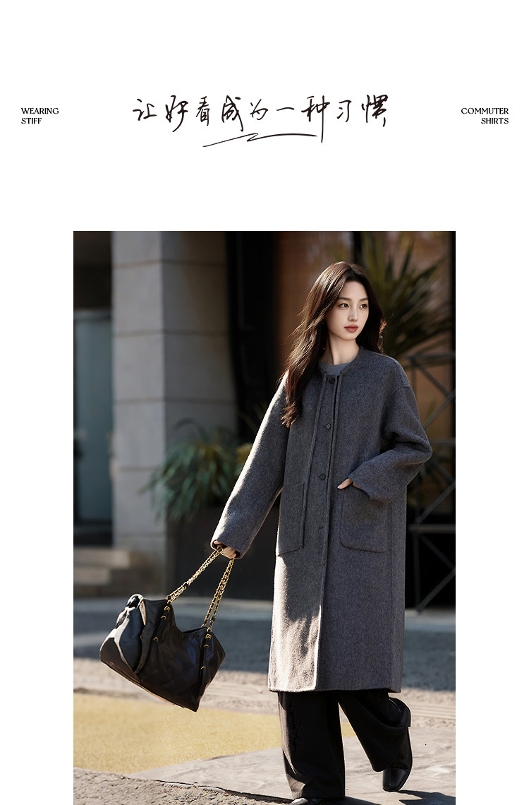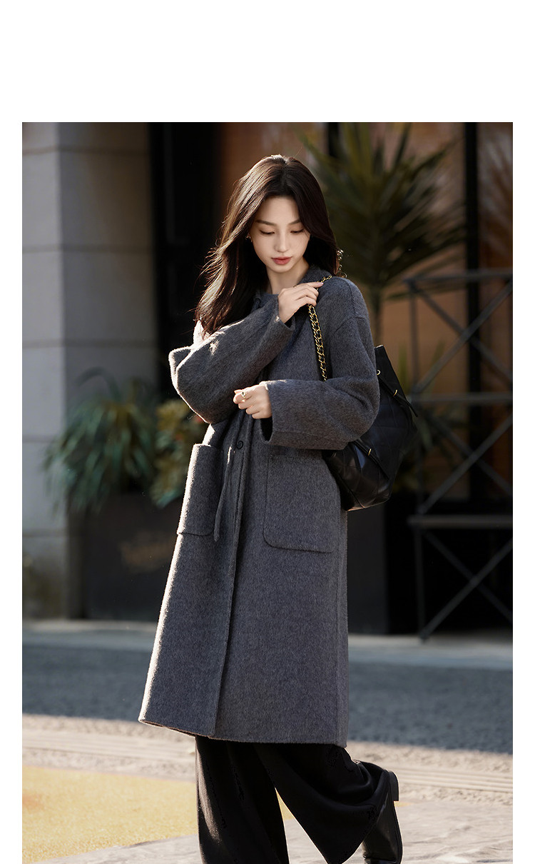 【100绵羊毛双面呢】冬季静奢圆领飘带大衣加长款女式毛呢外套