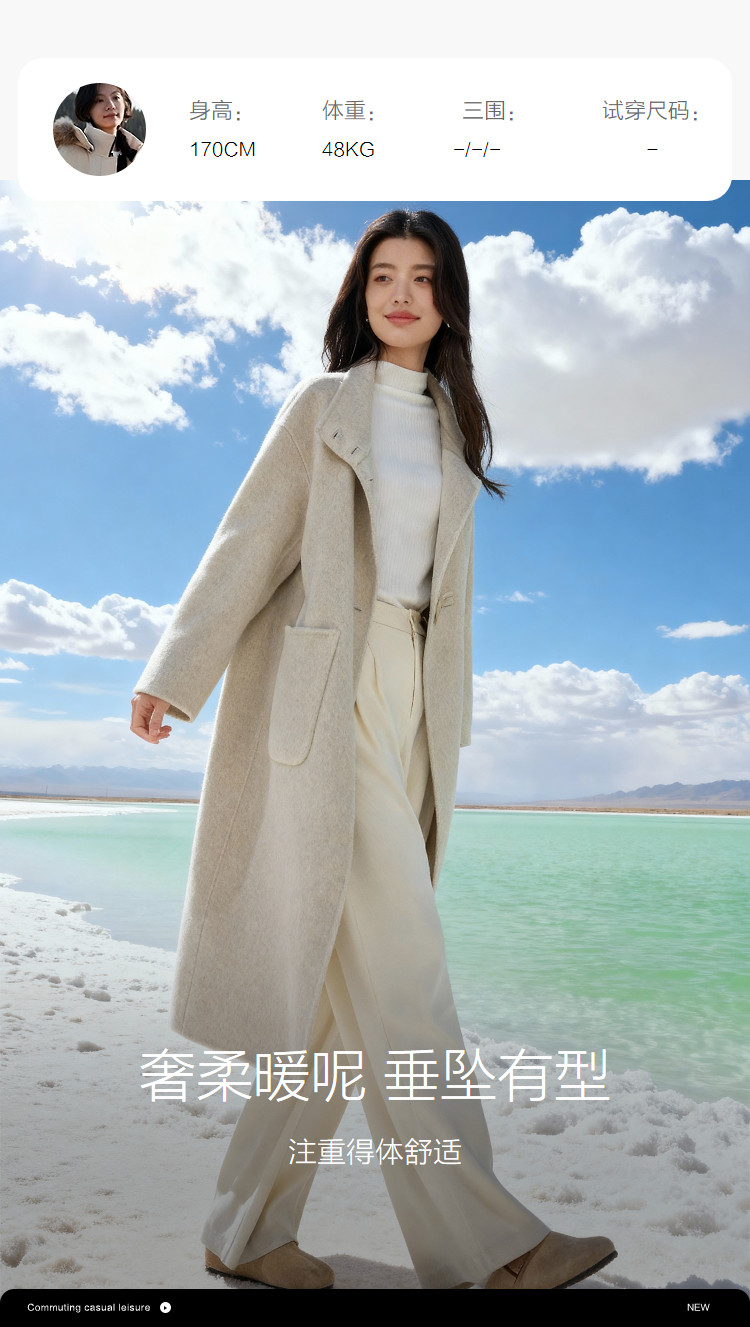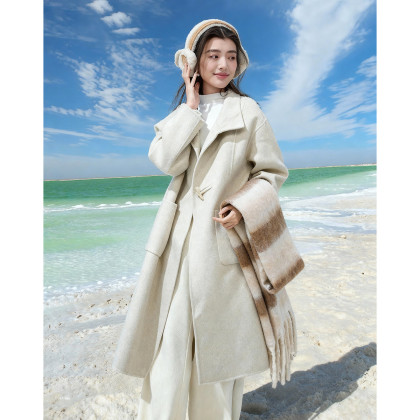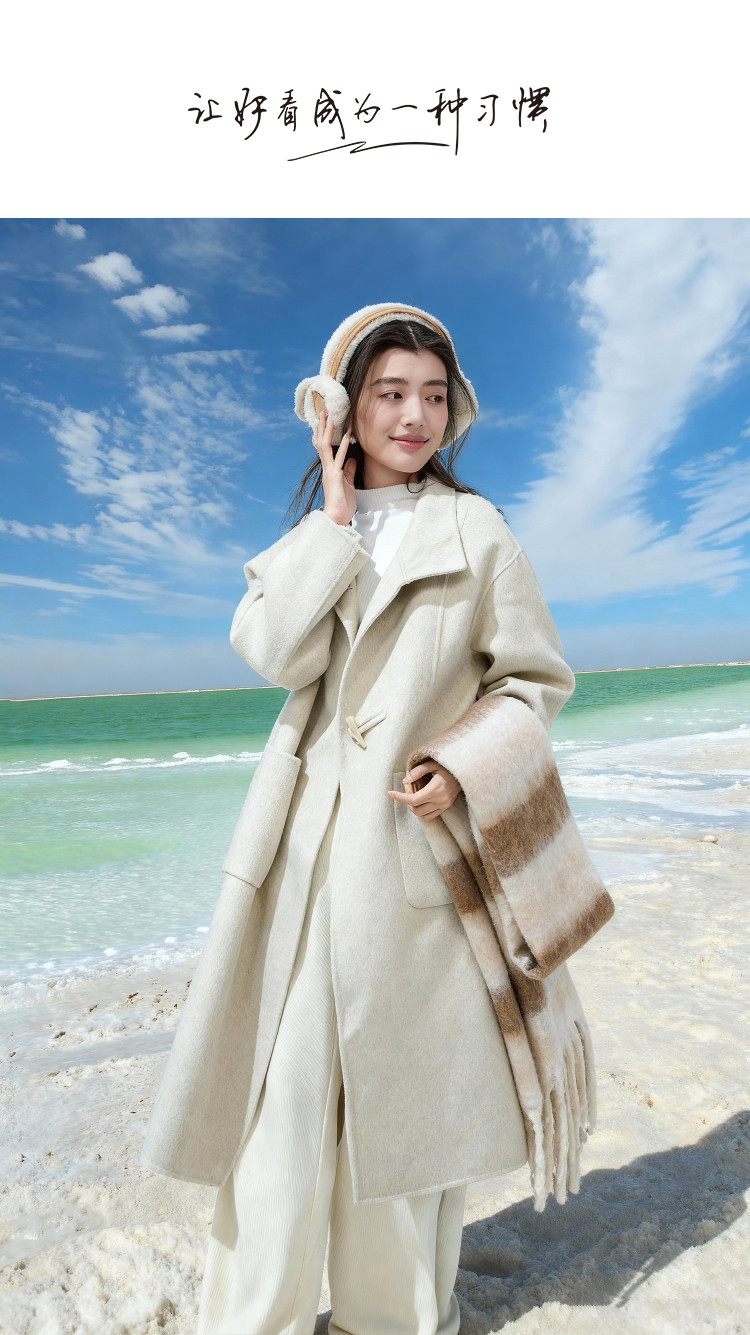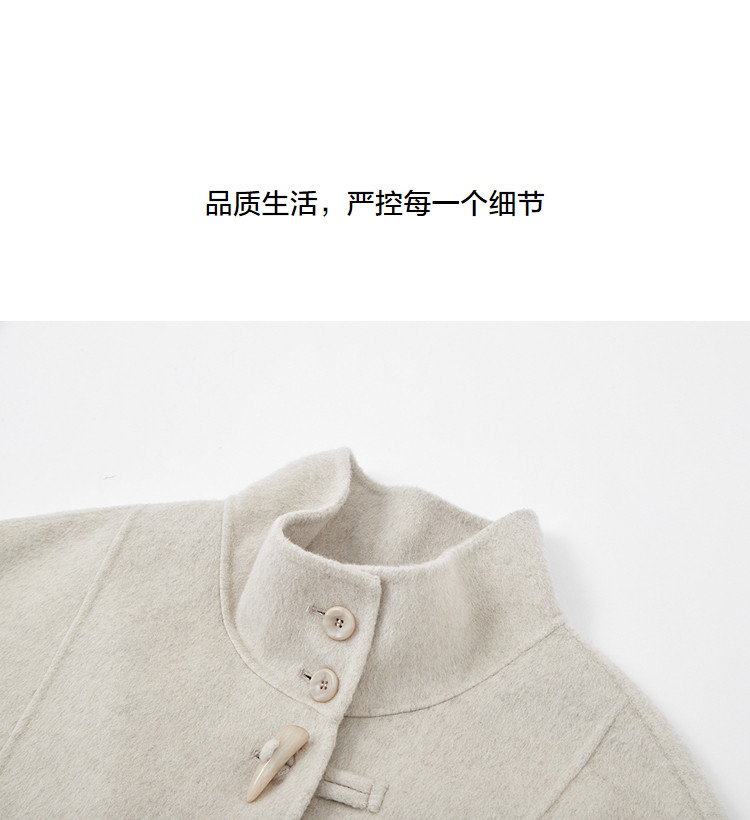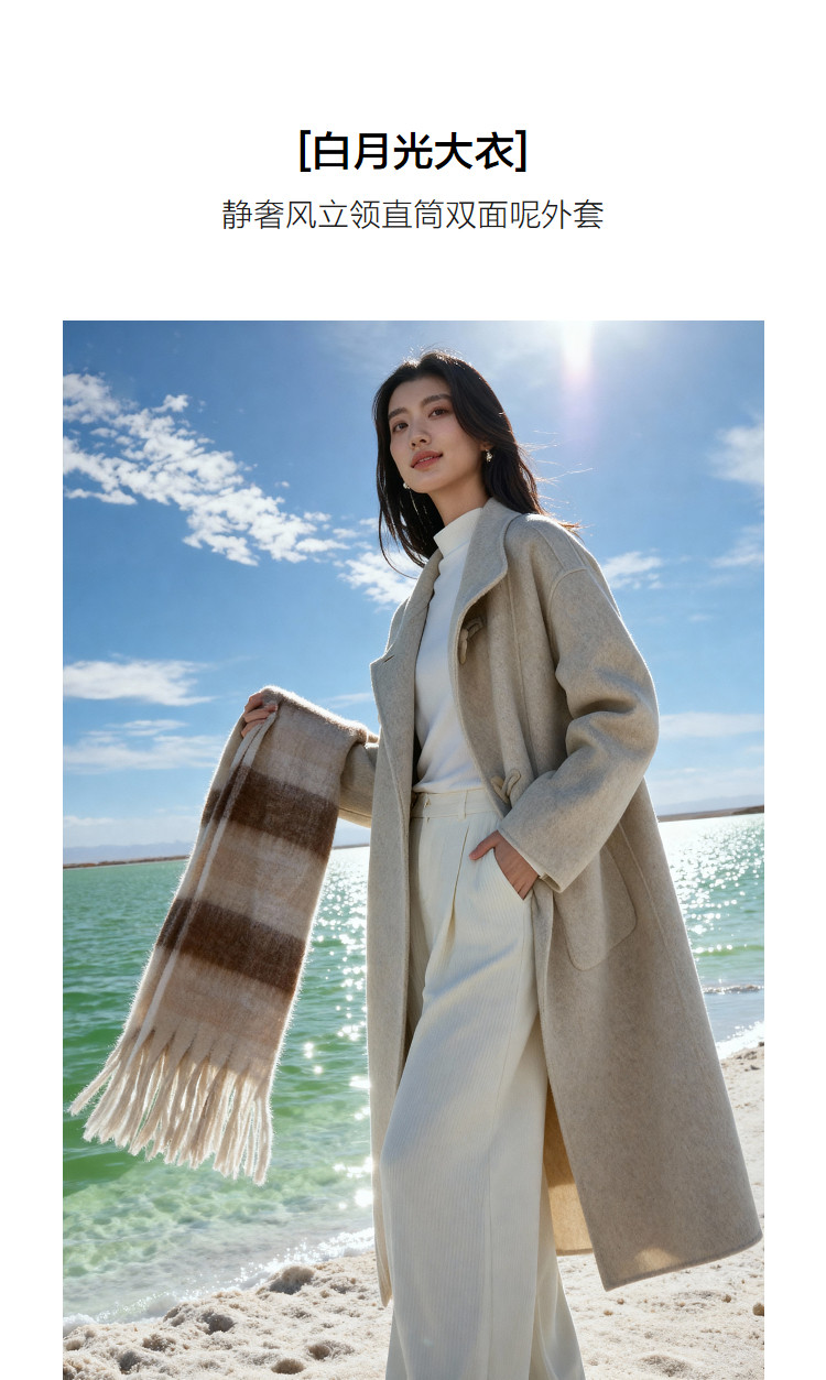 【绵羊毛桑蚕丝混纺】冬季静奢立领双面呢大衣加长款女式毛呢外套