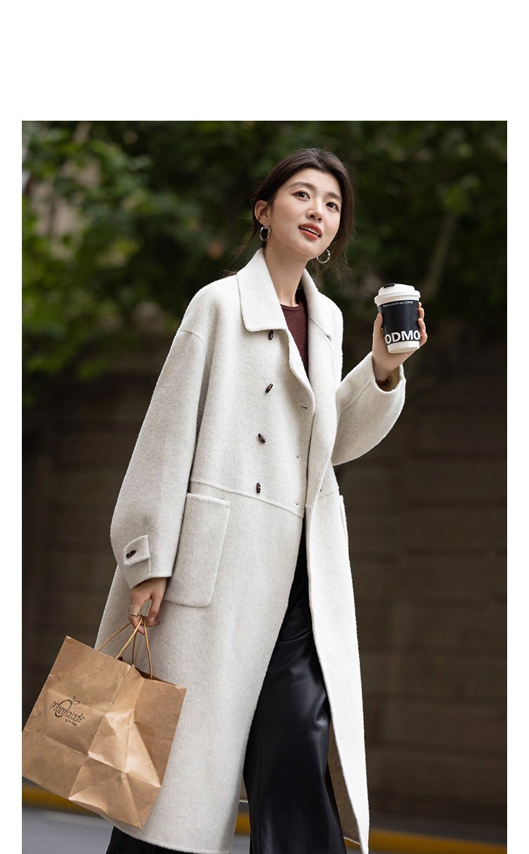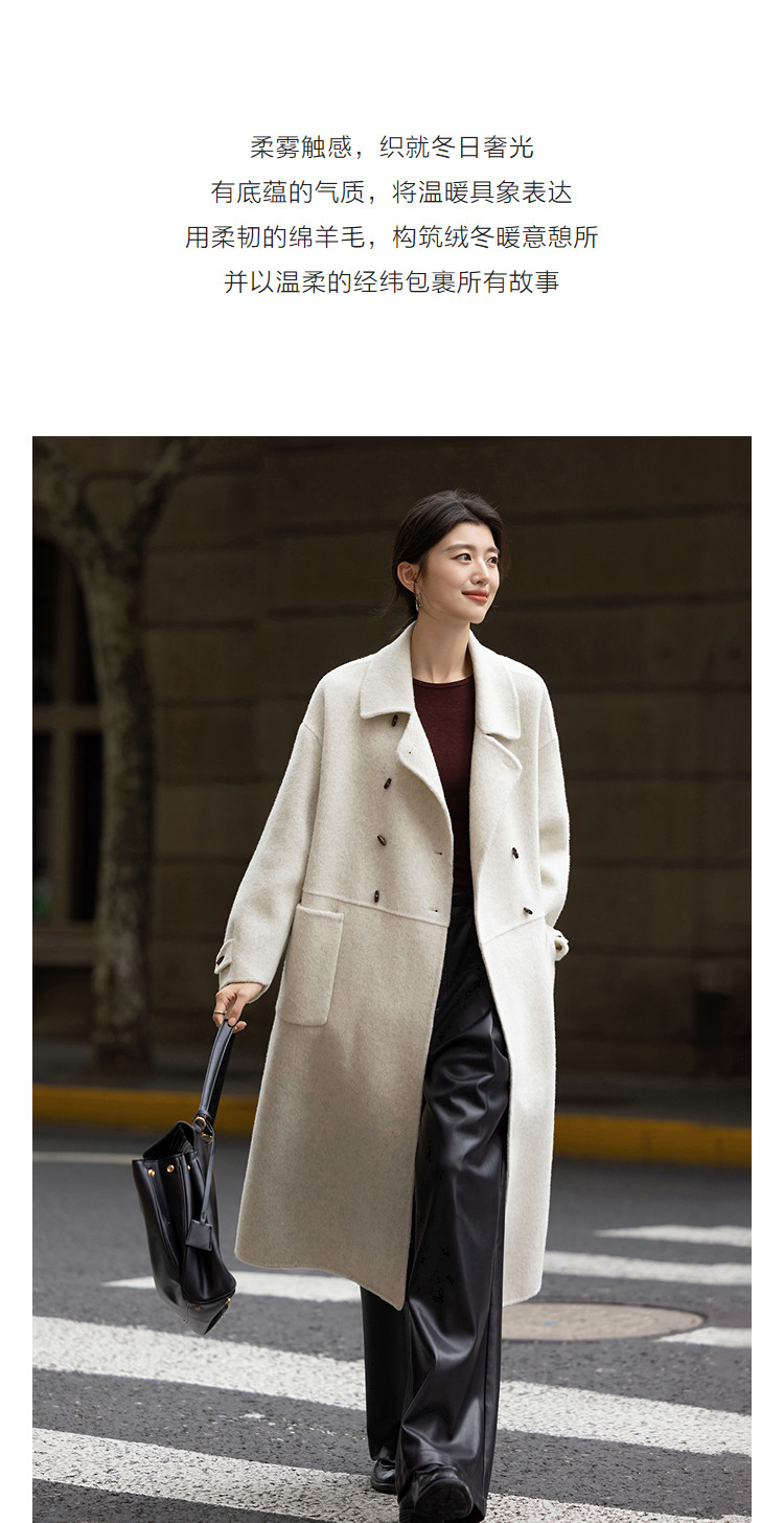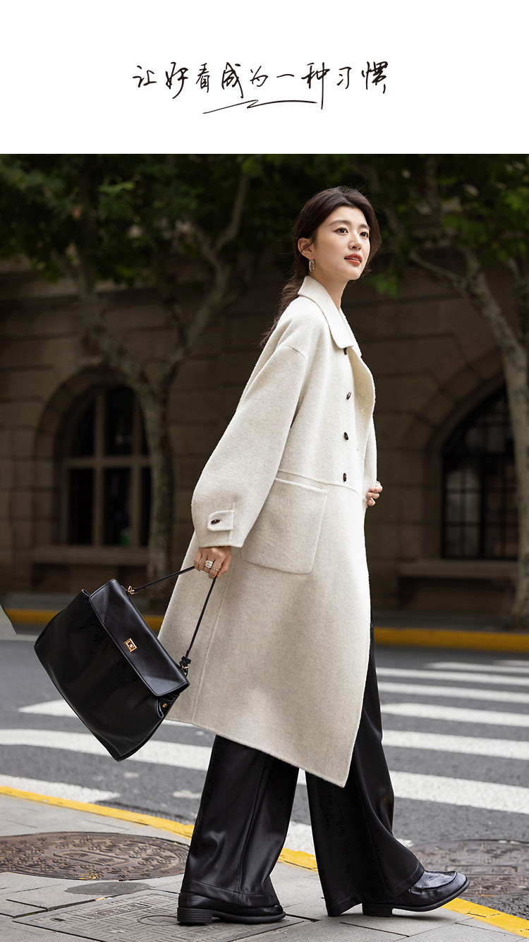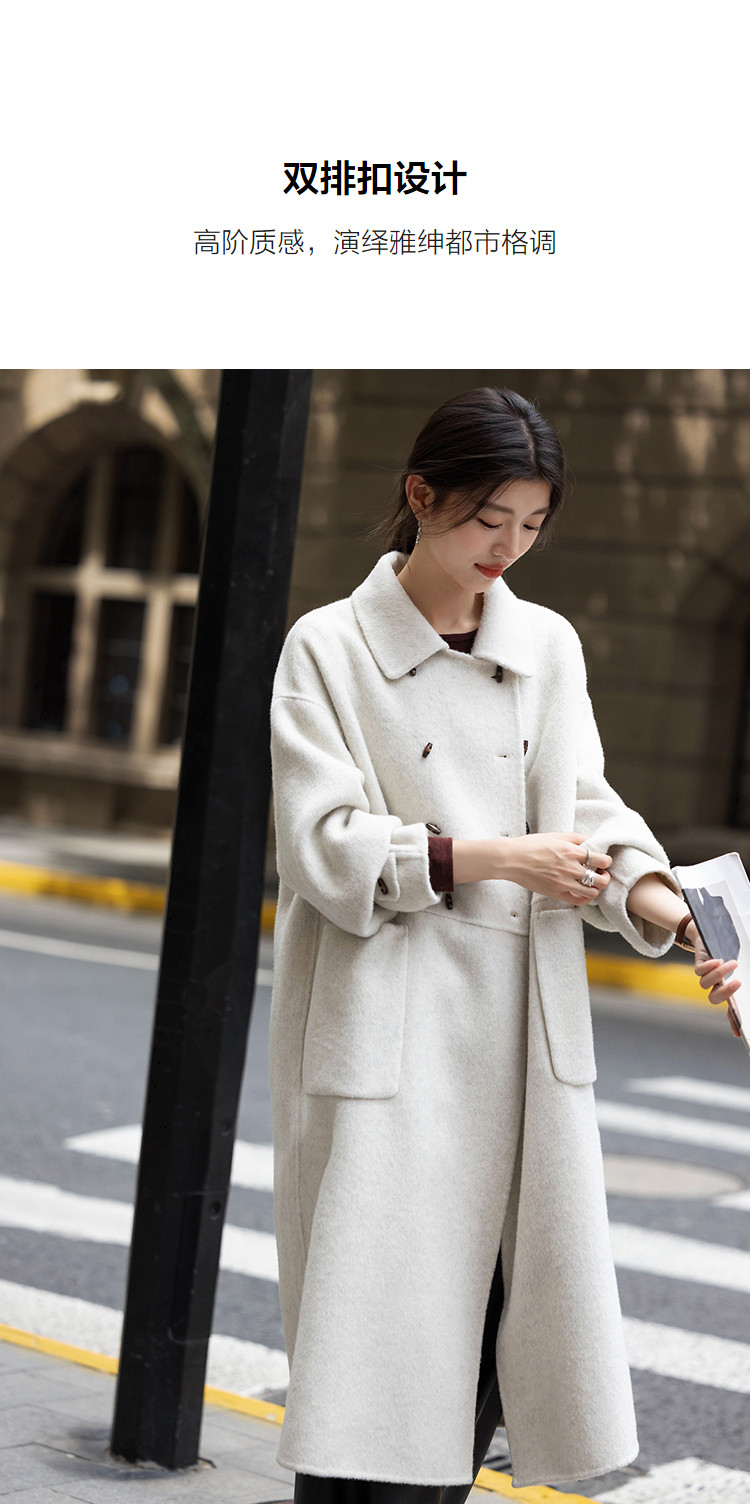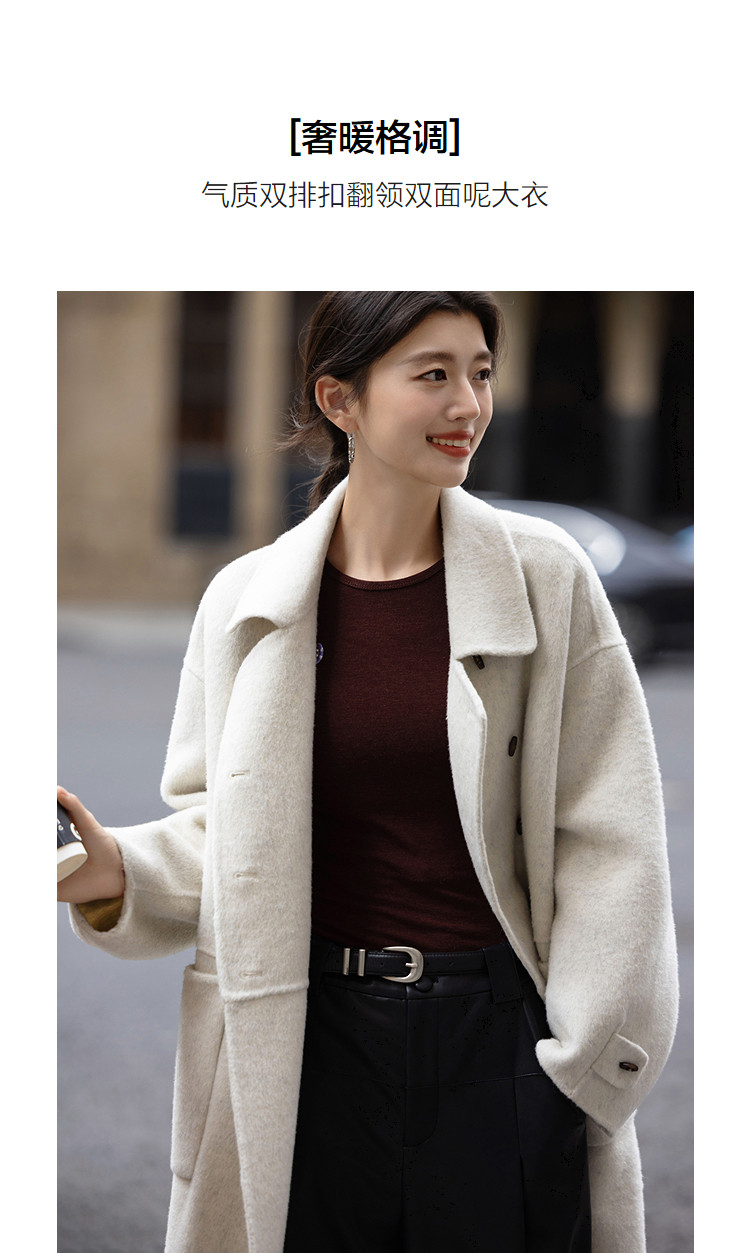 【奢享绵羊毛】冬季双排扣翻领大衣宽松设计感中长款女式毛呢外套