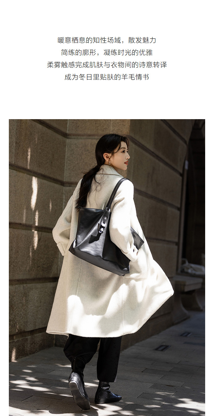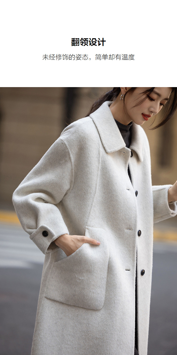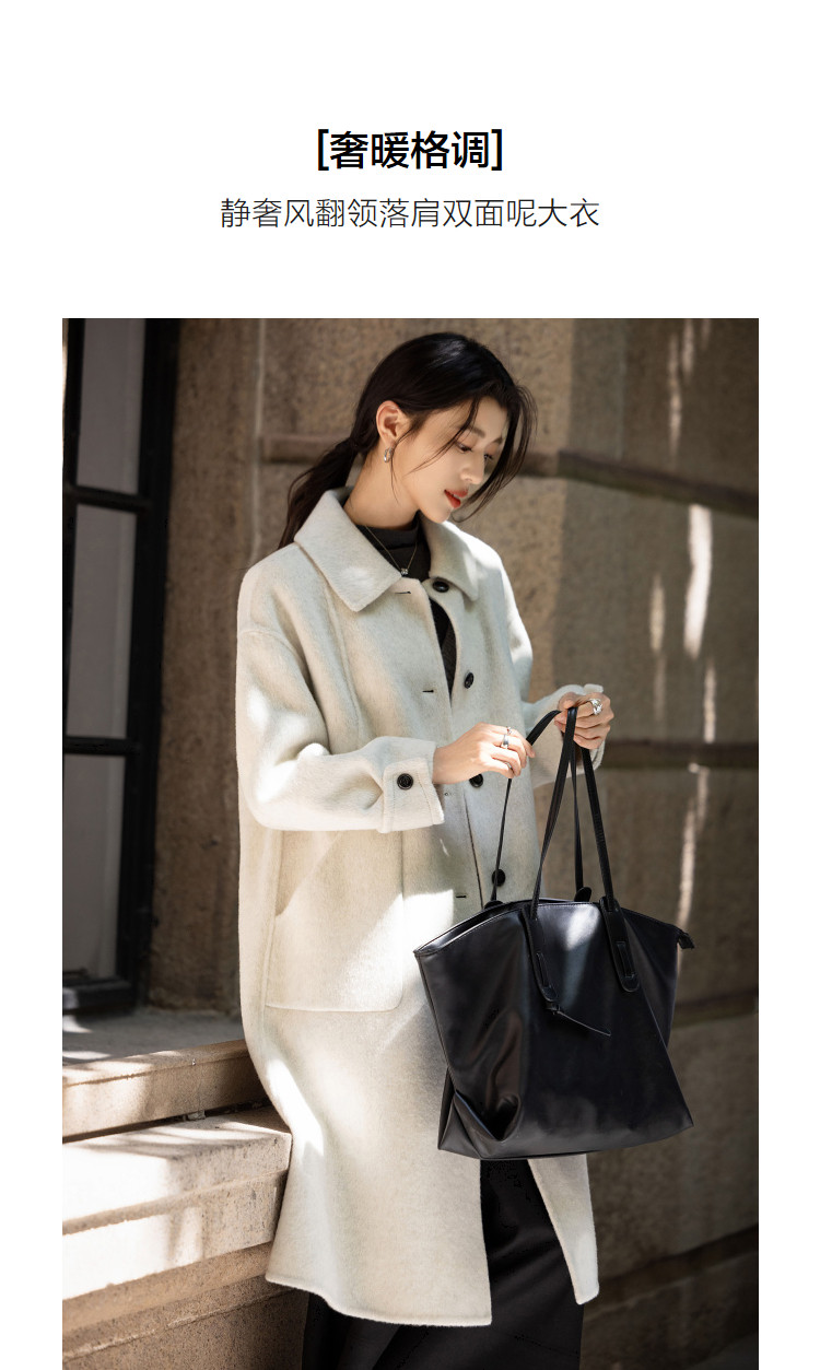 【绵羊毛双面呢】冬季静奢风翻领大衣中长款气质宽松女式毛呢外套