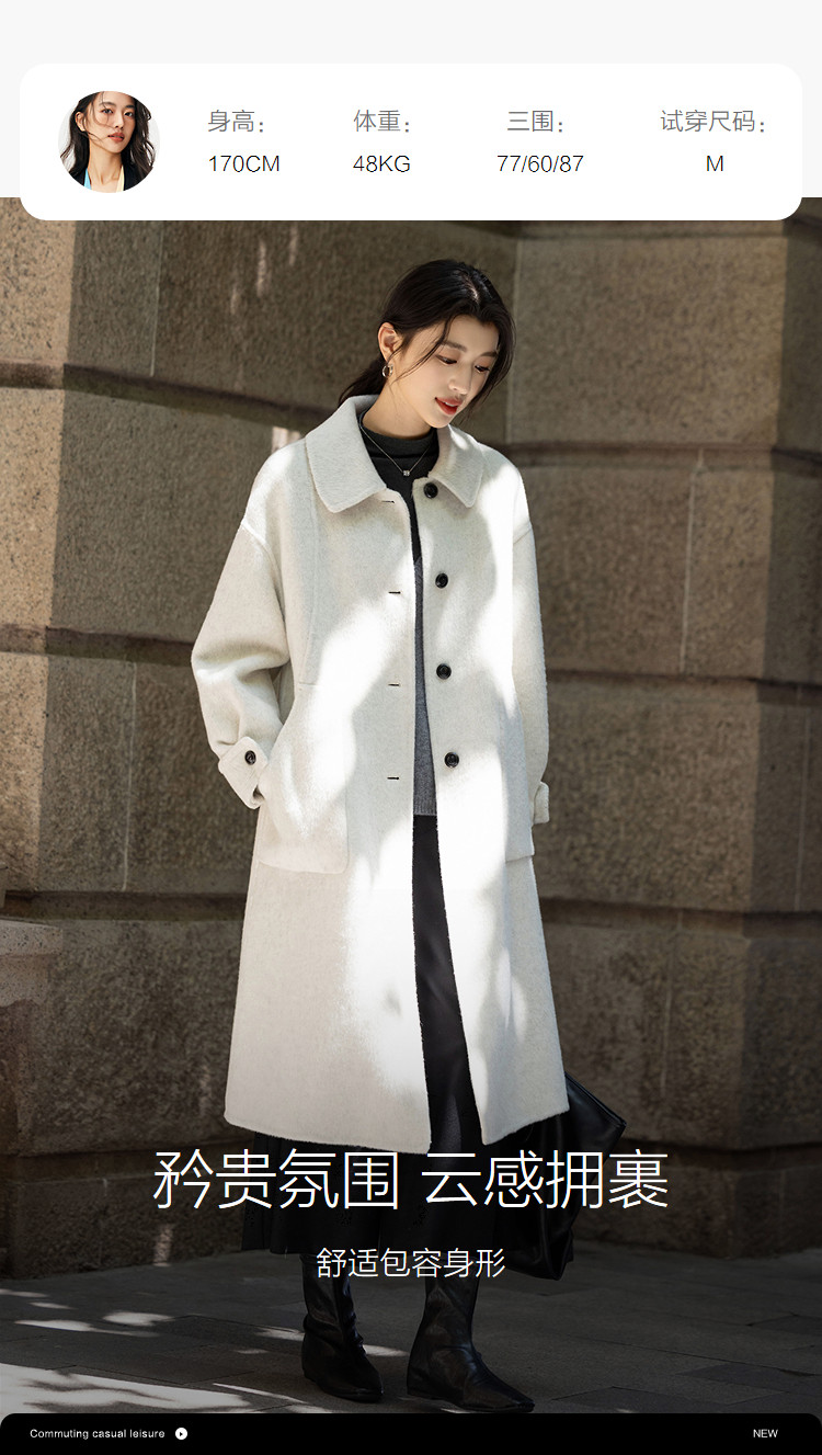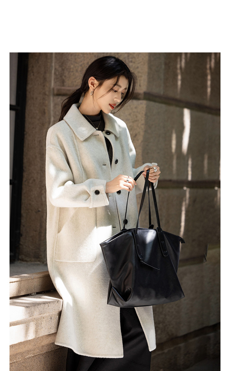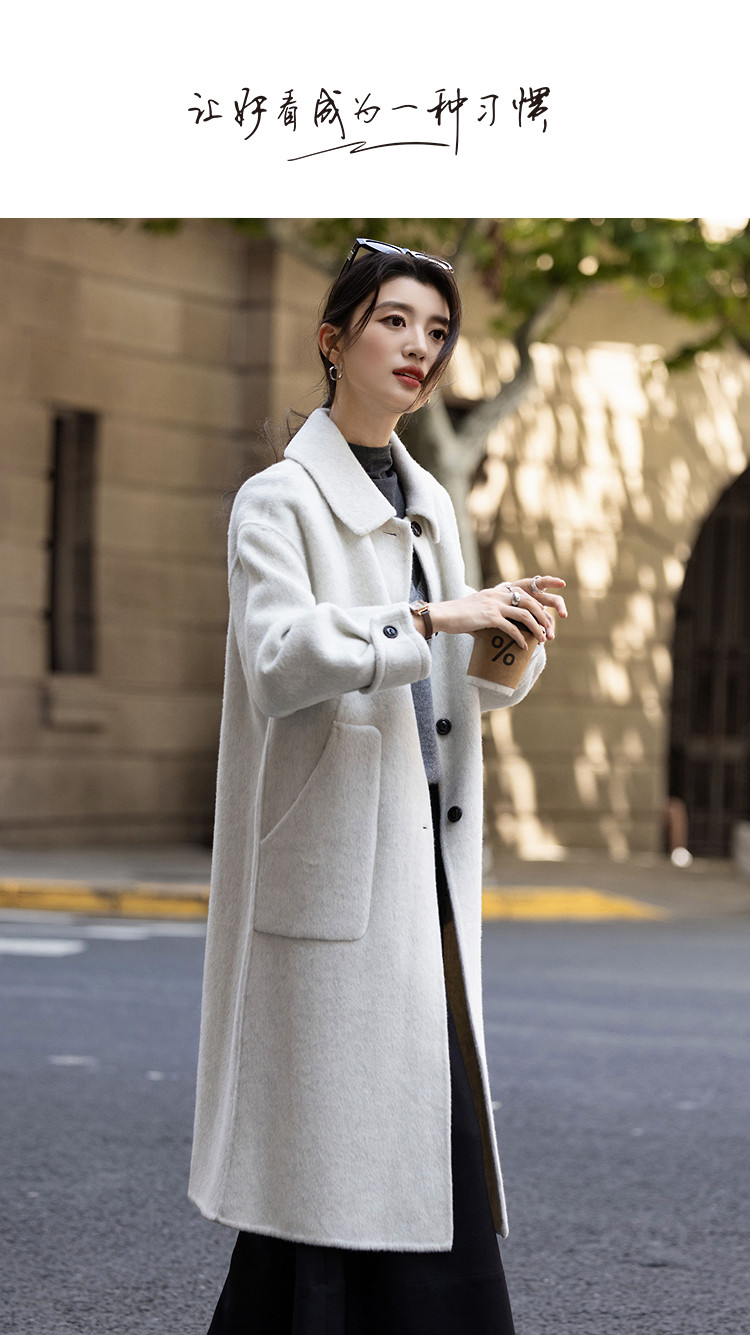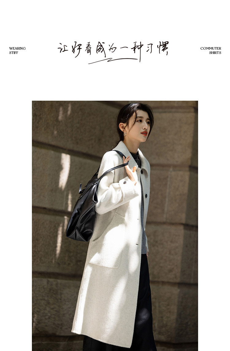 【绵羊毛双面呢】冬季静奢风翻领大衣中长款气质宽松女式毛呢外套