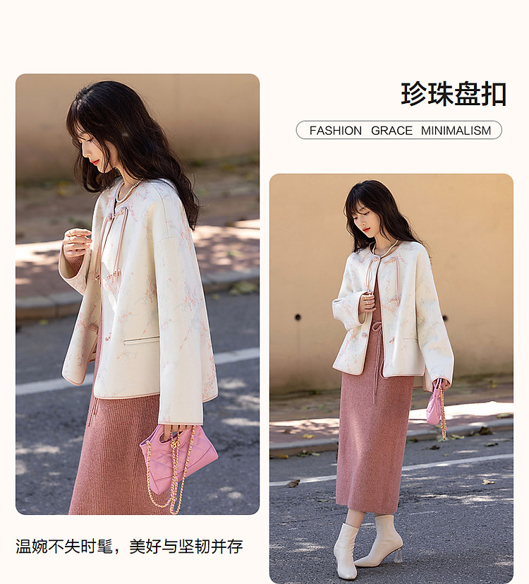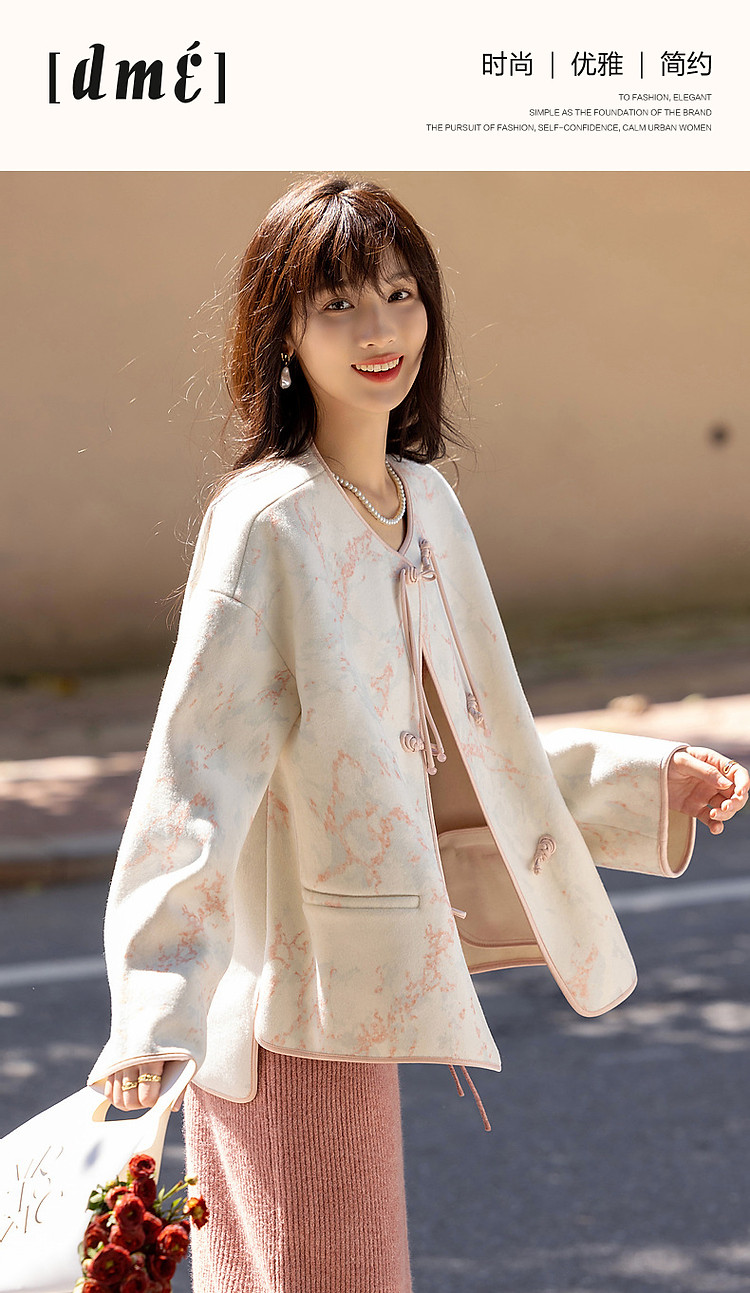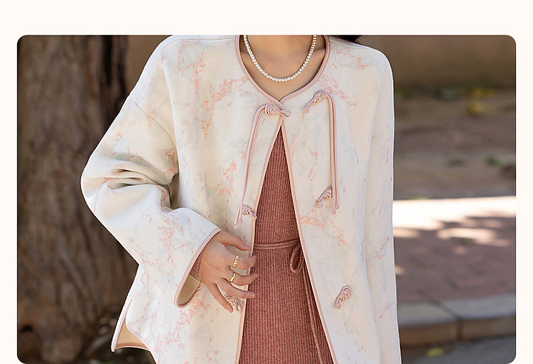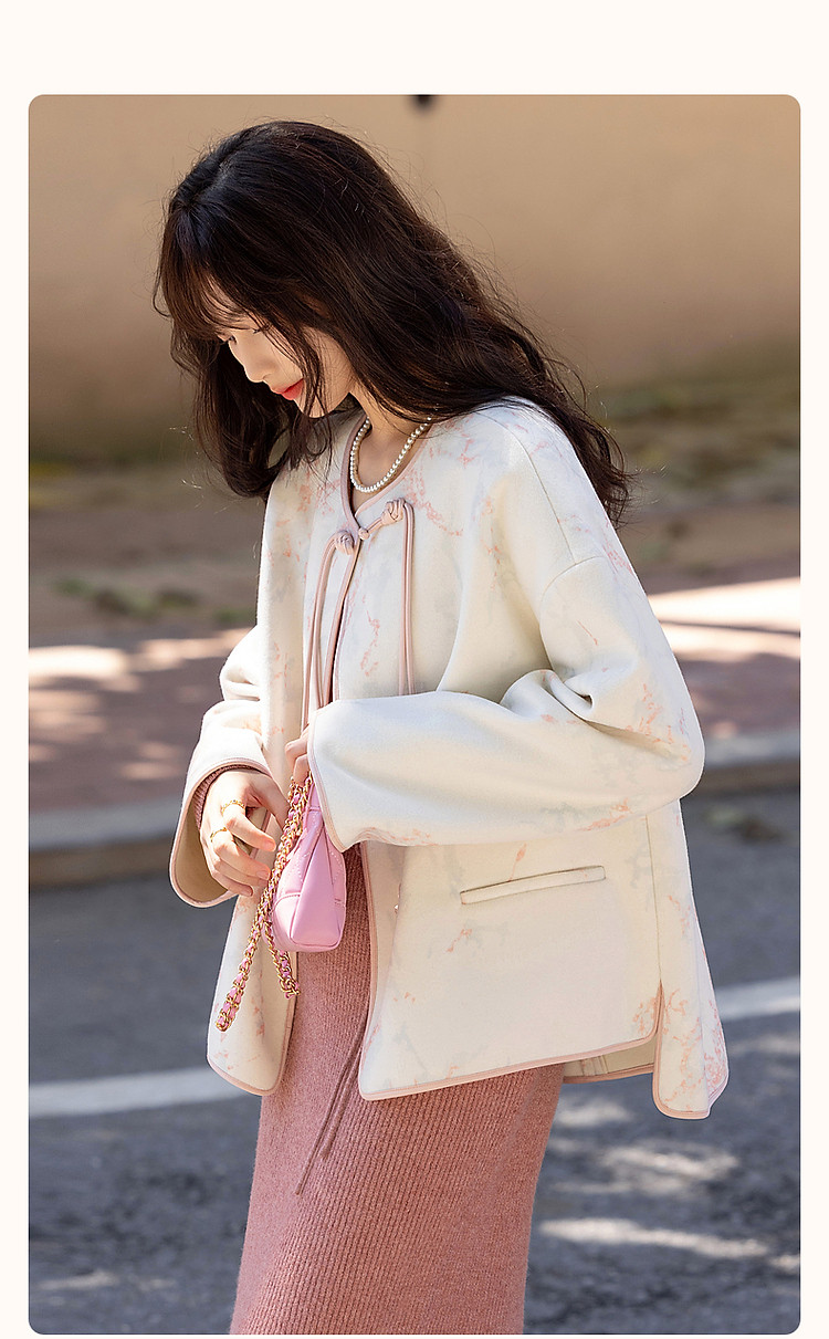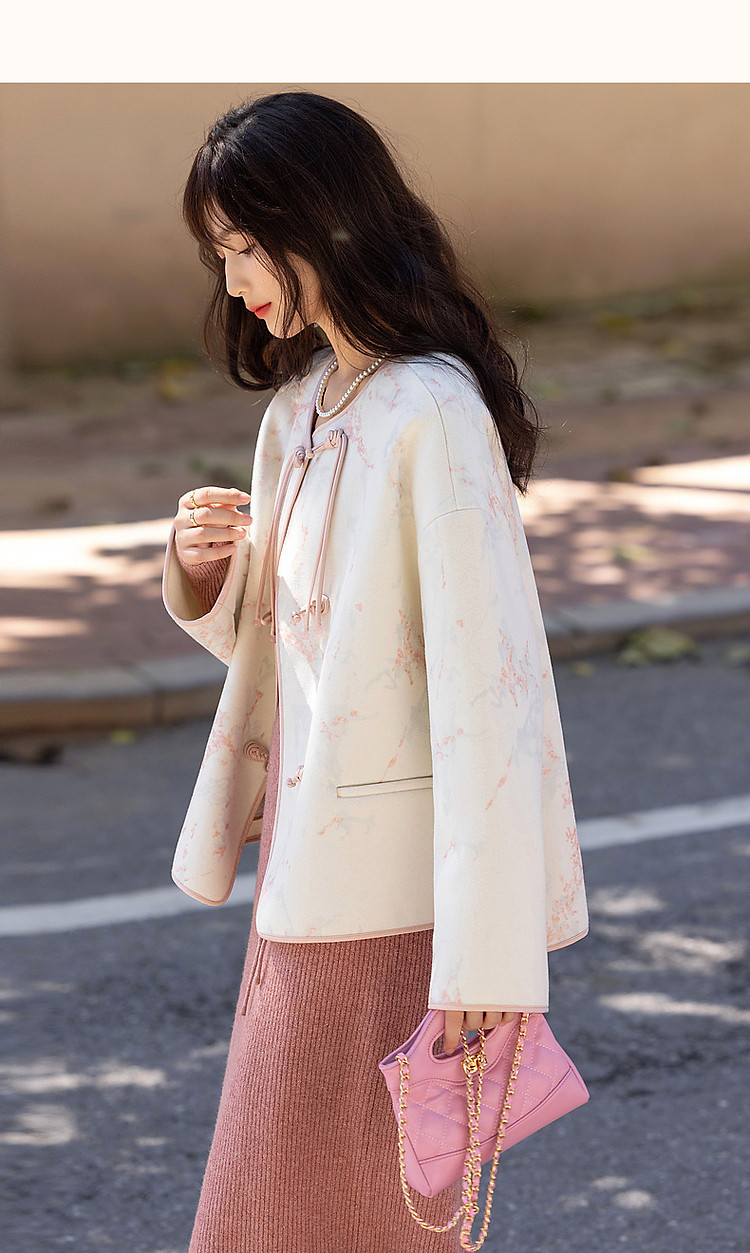 【东方古典风韵】冬季国风新中式对襟盘扣流苏印花短款女式外套