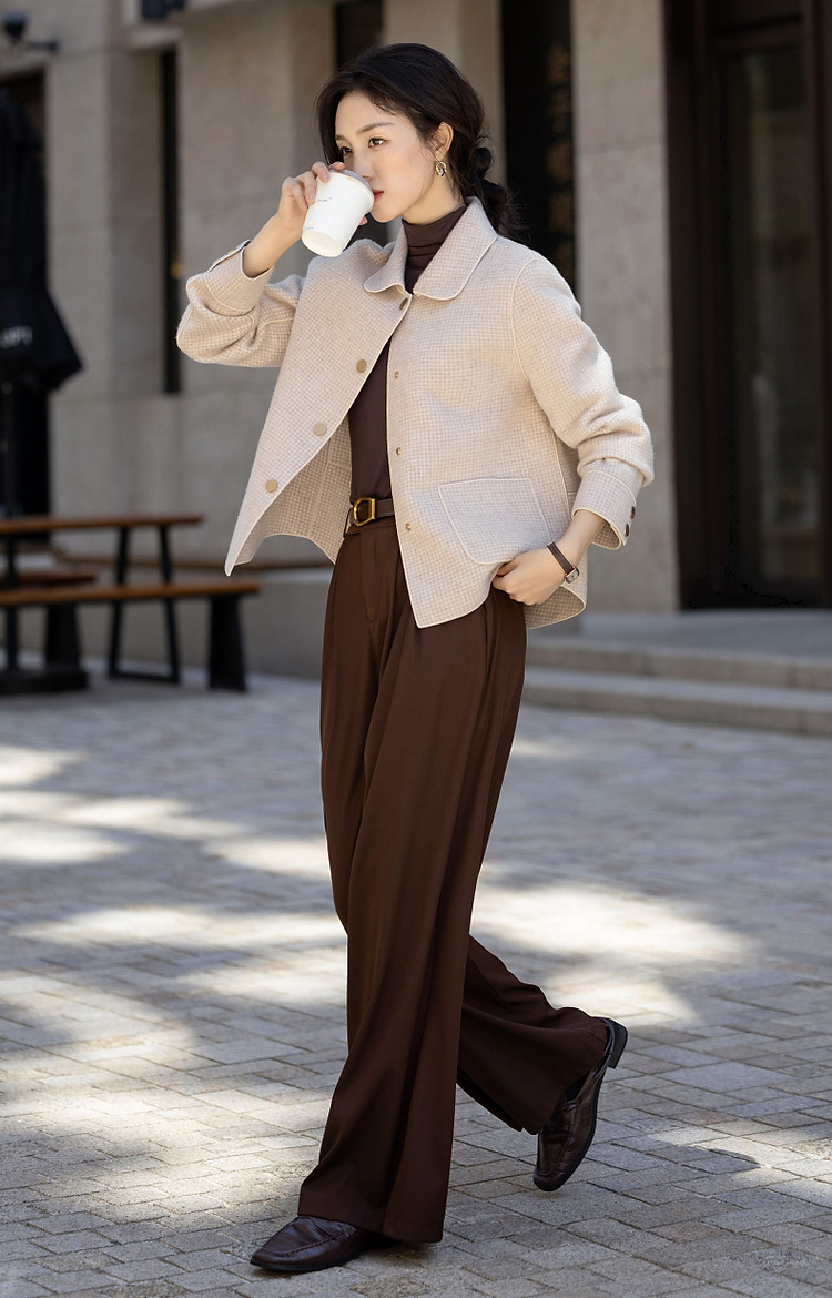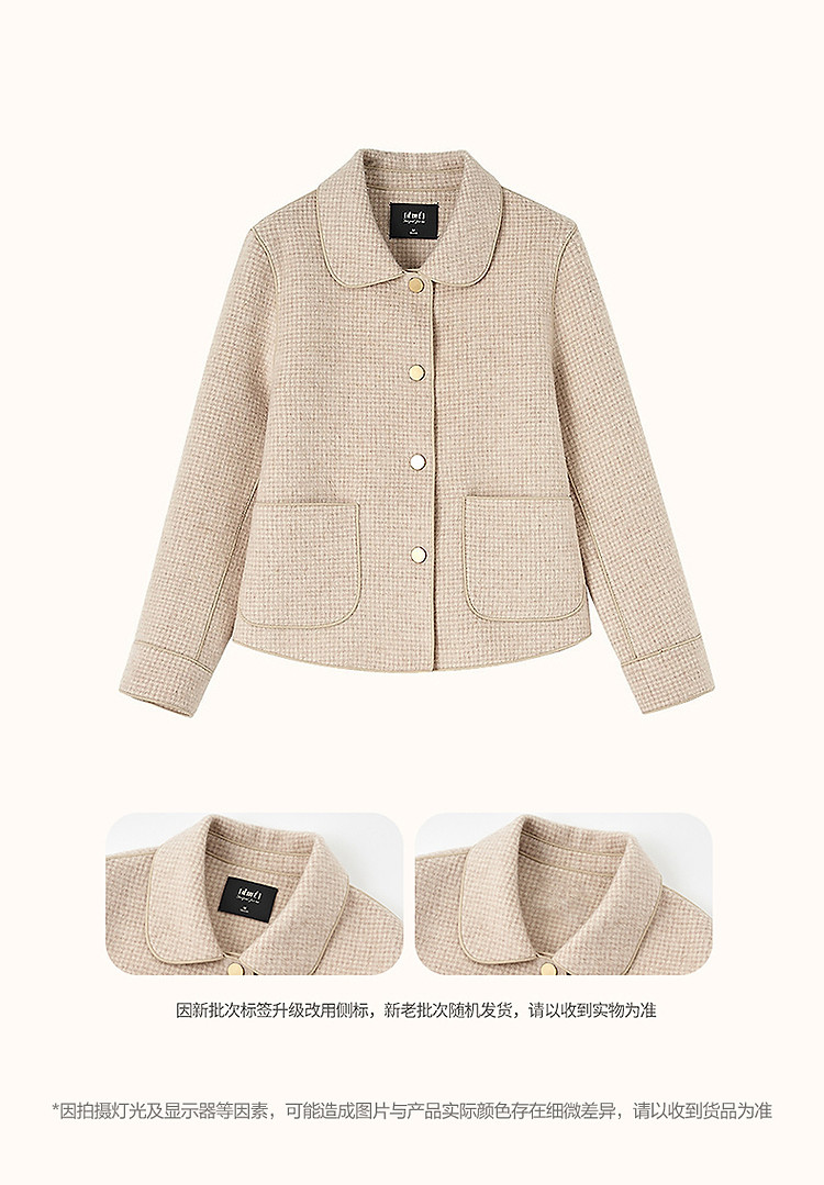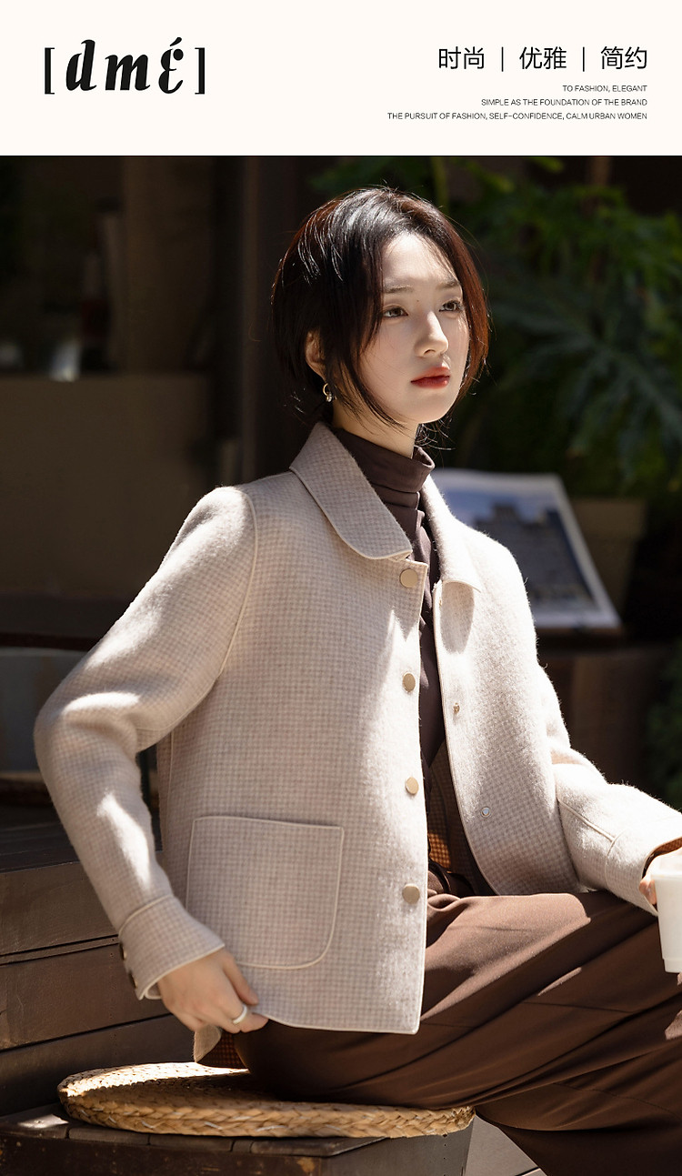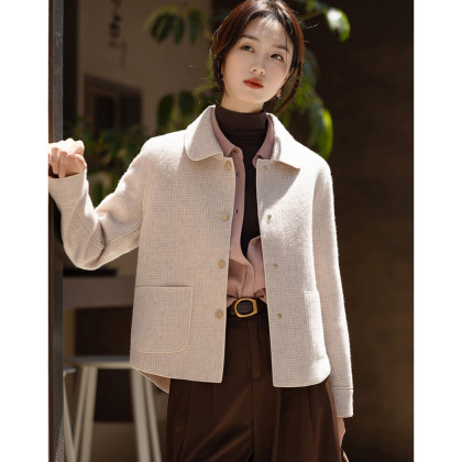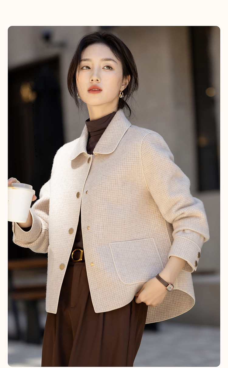 【人手一件双面呢】春秋贵感绵羊毛翻领口袋短款小个子女式外套