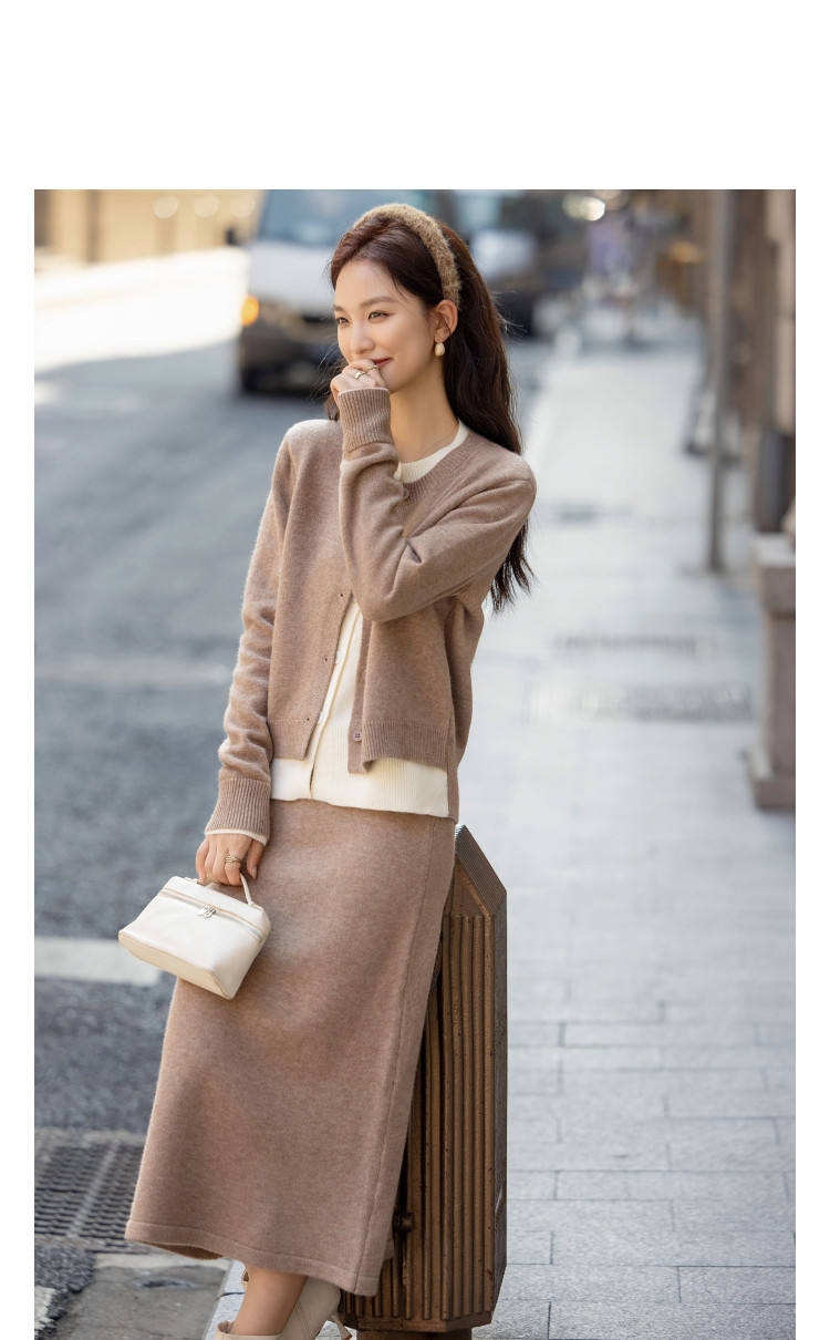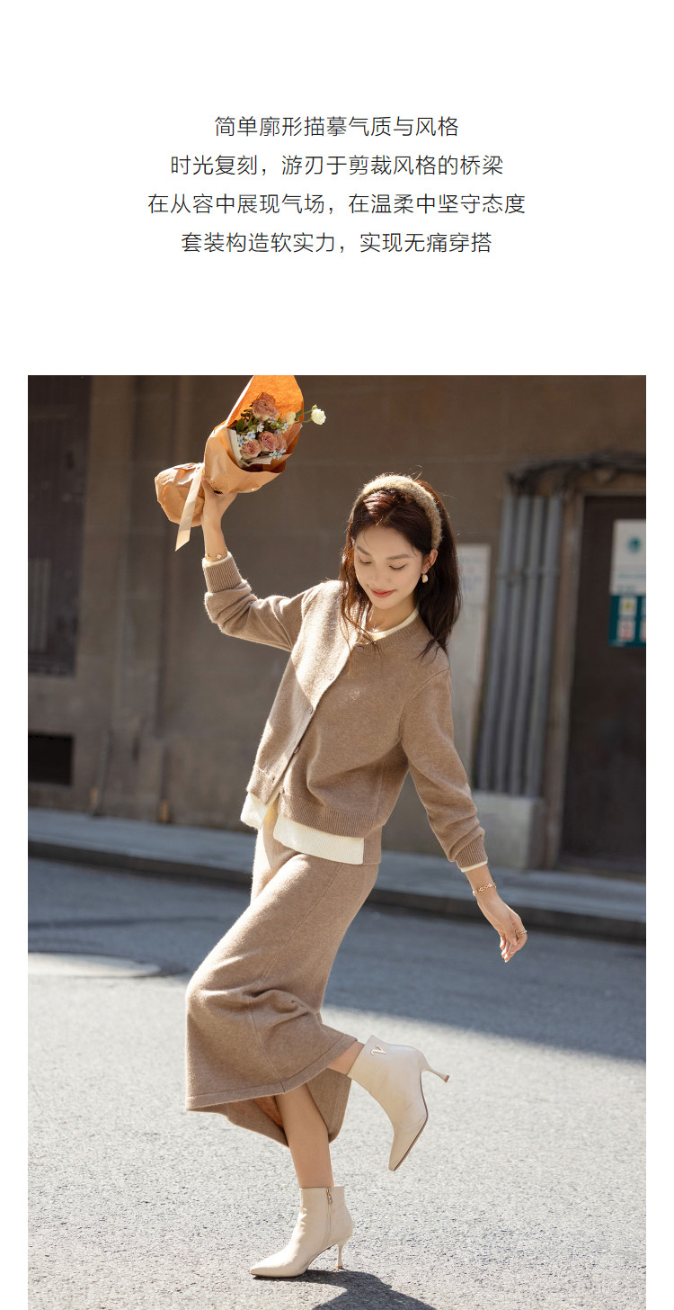 【悦己情书】冬季流苏装饰针织套装圆领上衣直筒半身裙女式两件套