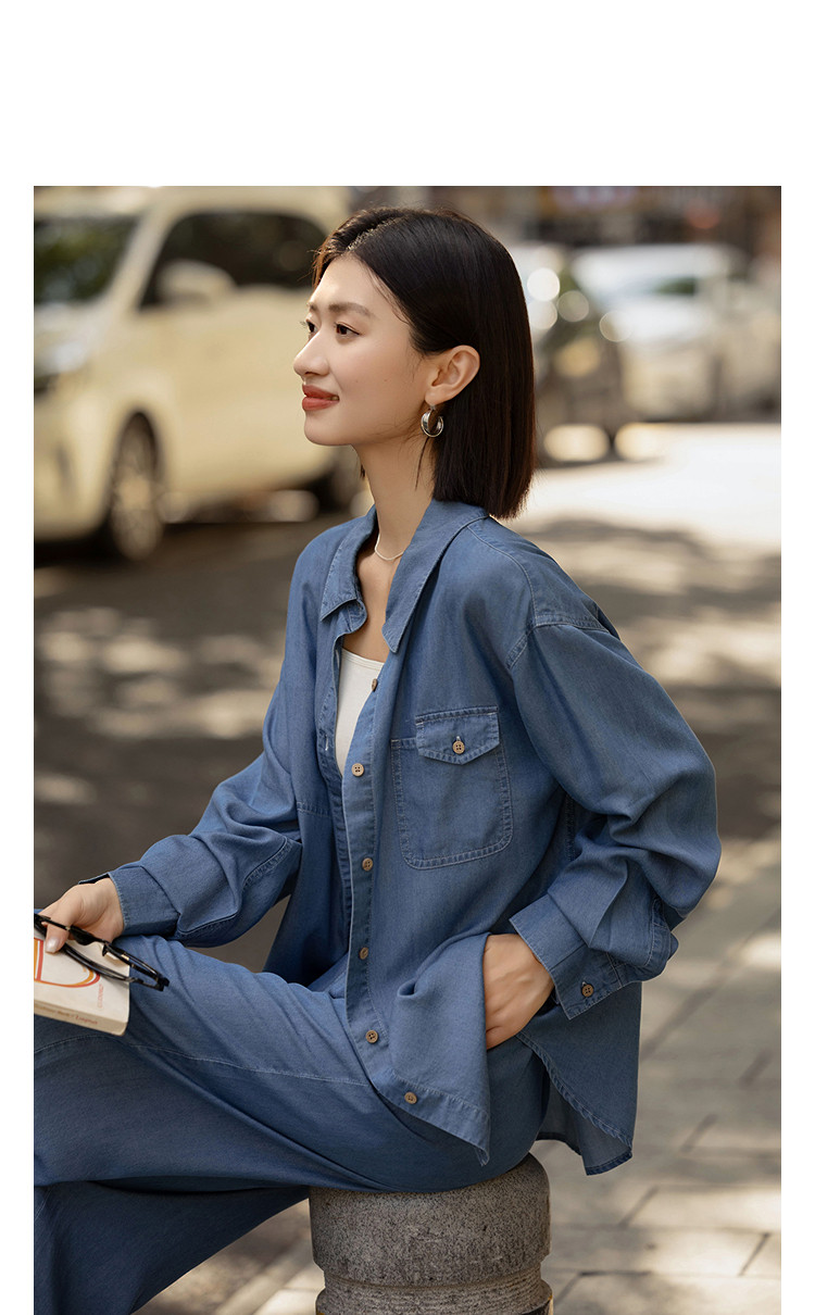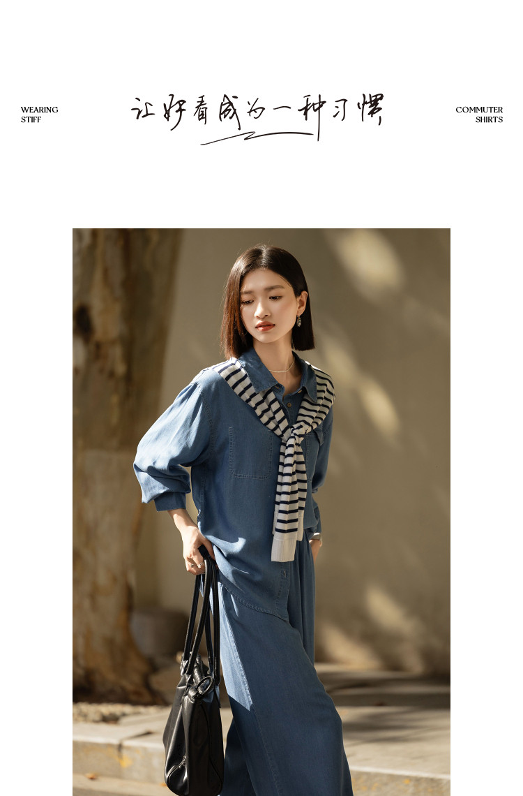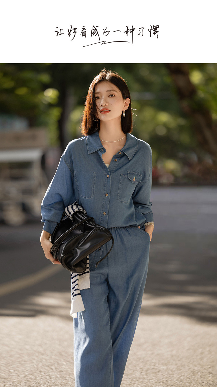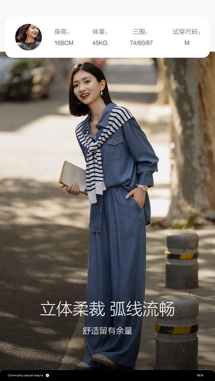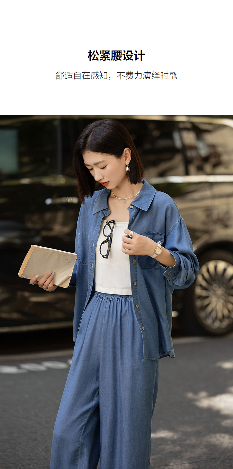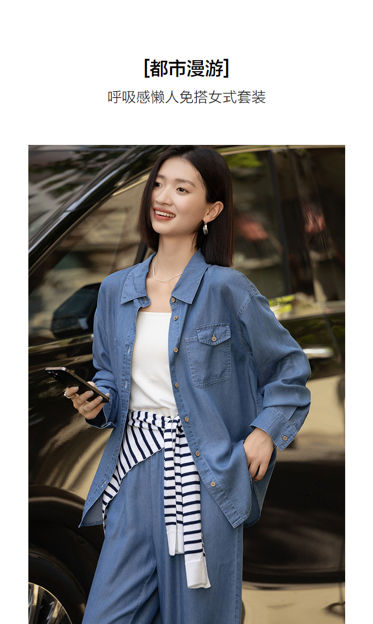 【100莱赛尔套装】2026春不对称口袋压线上衣松紧腰长裤女两件套