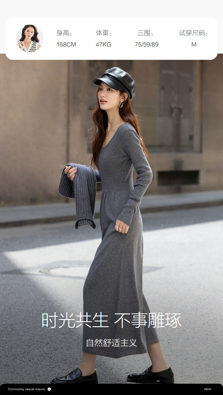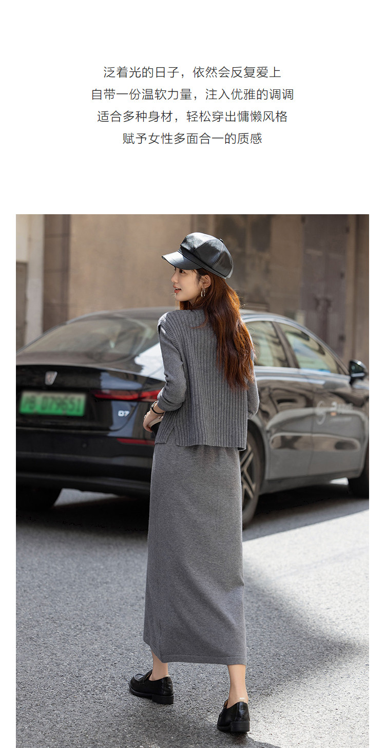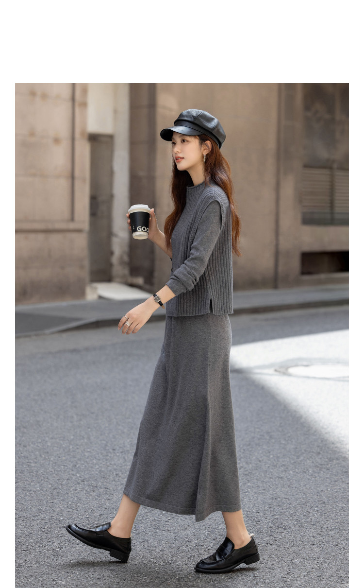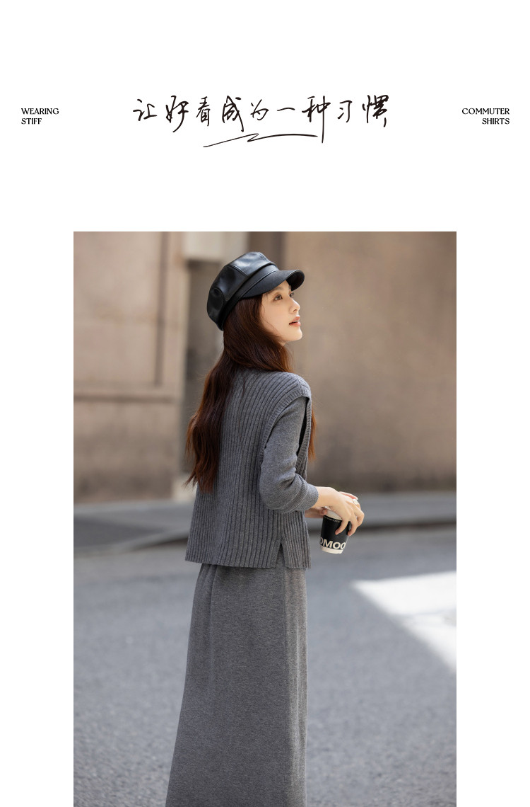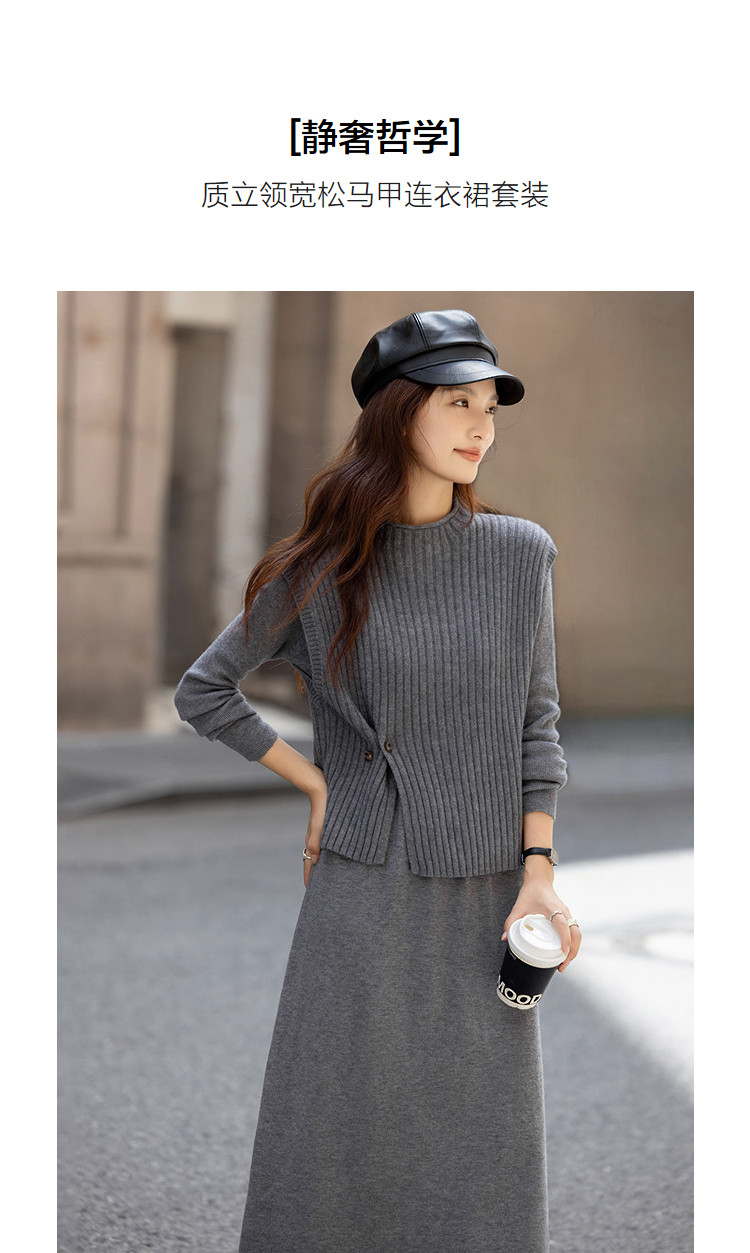 【静奢哲学】冬季气质立领宽松马甲高弹收腰连衣裙套装女式两件套