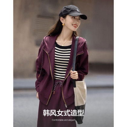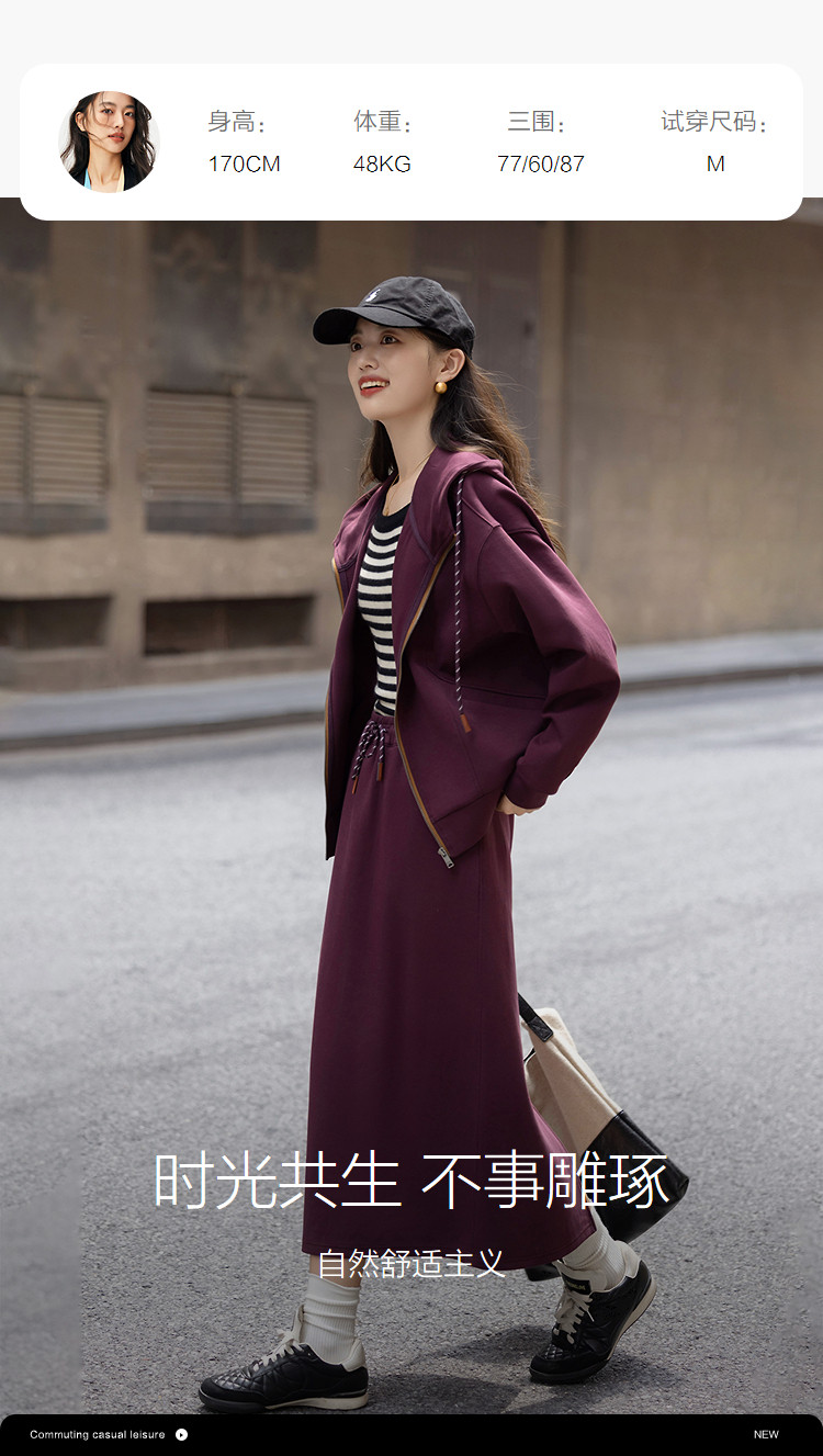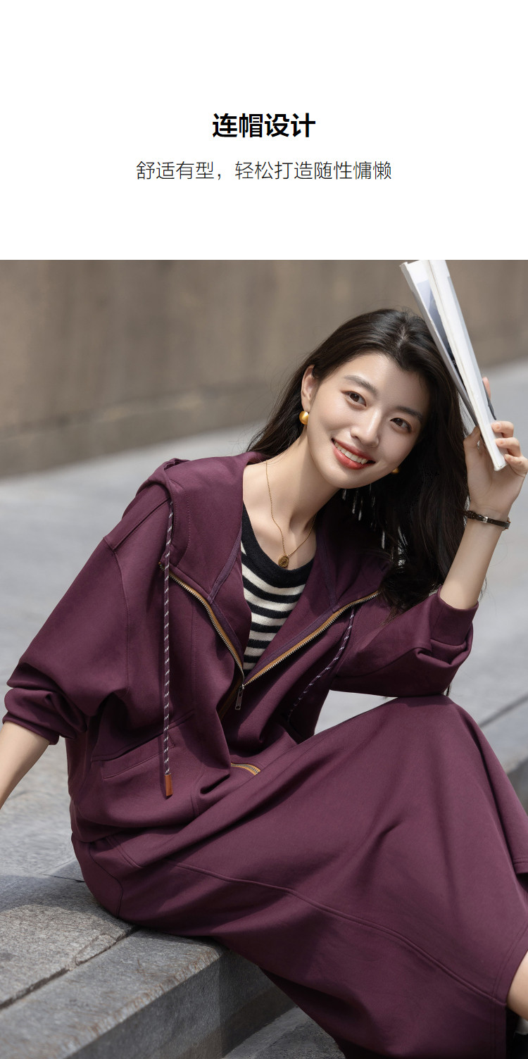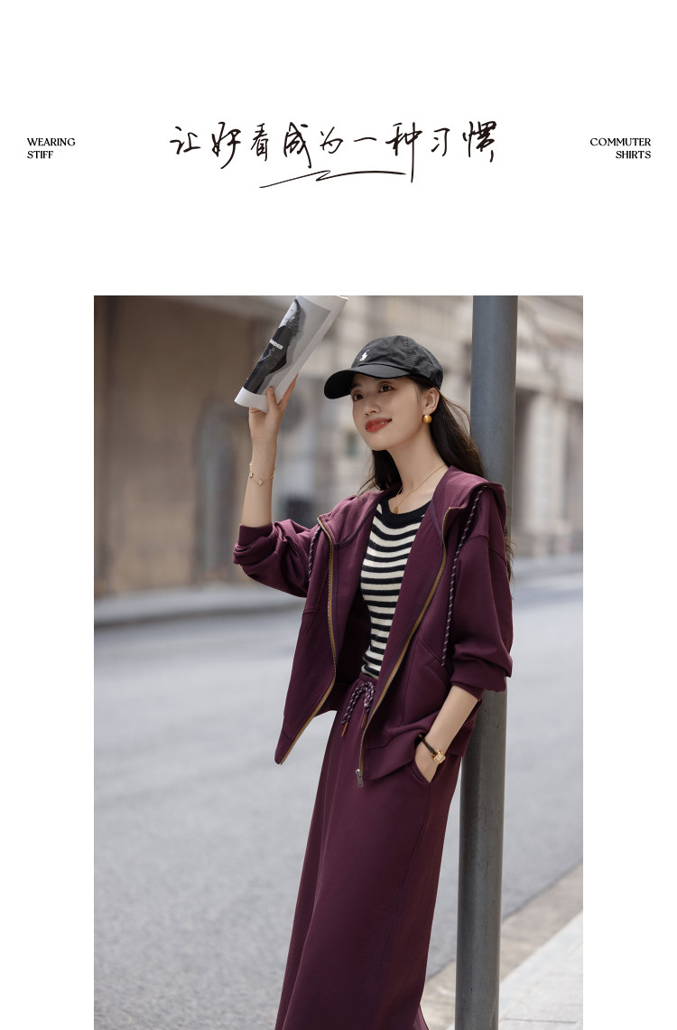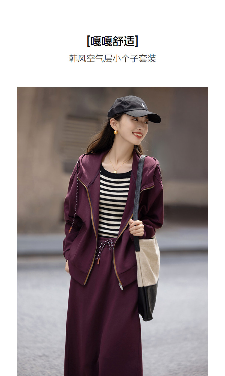 【韩风空气层套装】秋季连帽撞色拉链上衣松紧腰直筒半裙女两件套