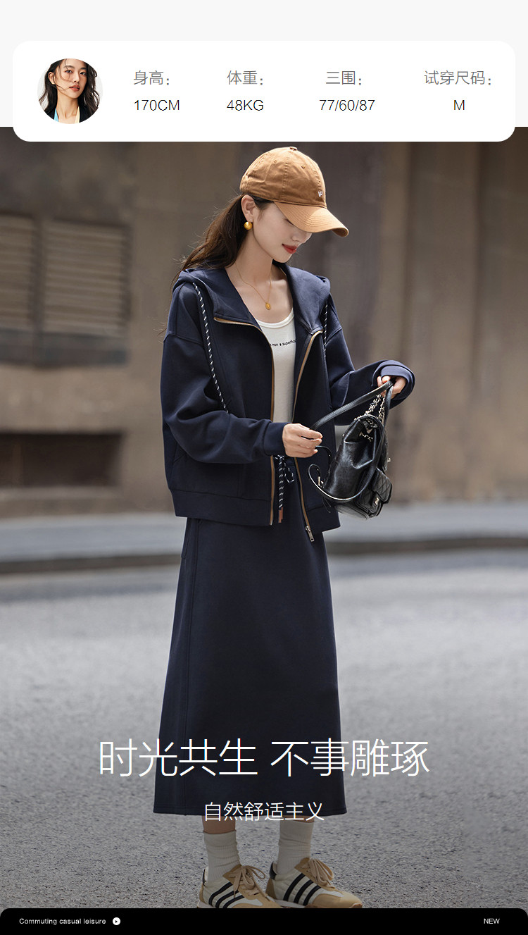 【韩风空气层套装】秋季连帽撞色拉链上衣松紧腰直筒半裙女两件套