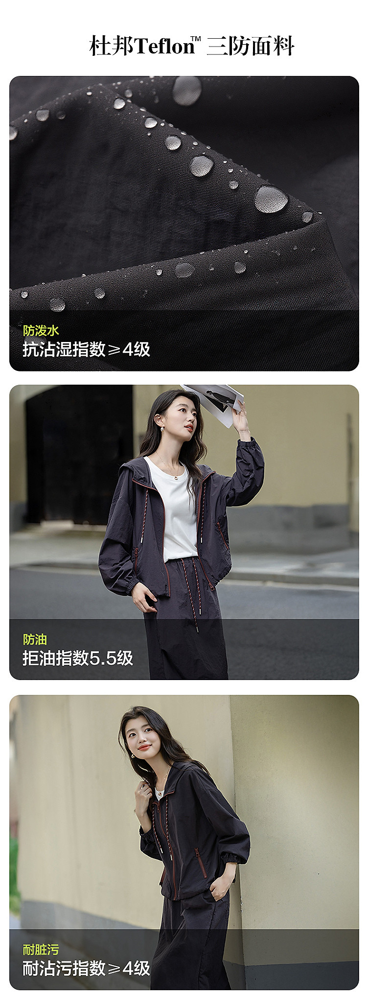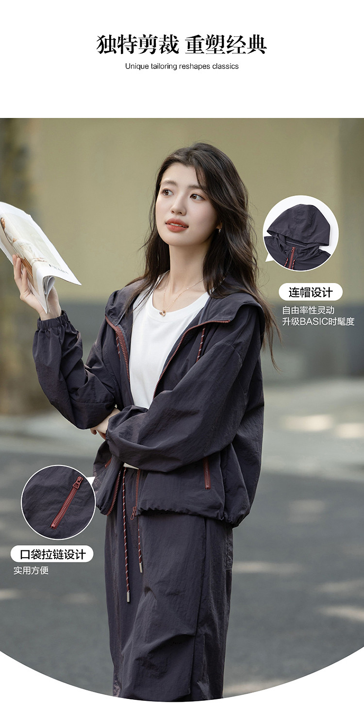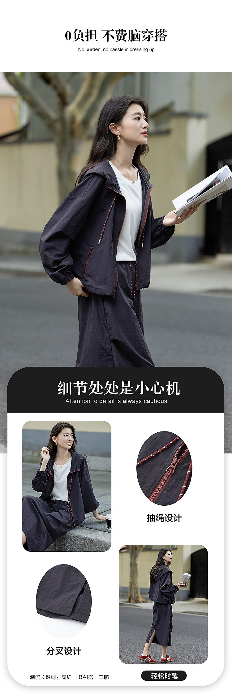 【黑科技三防】秋季运动风连帽撞色拉链上衣松紧腰半裙套装两件套