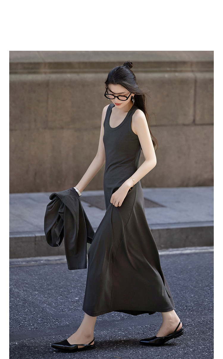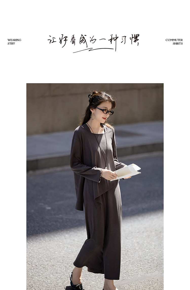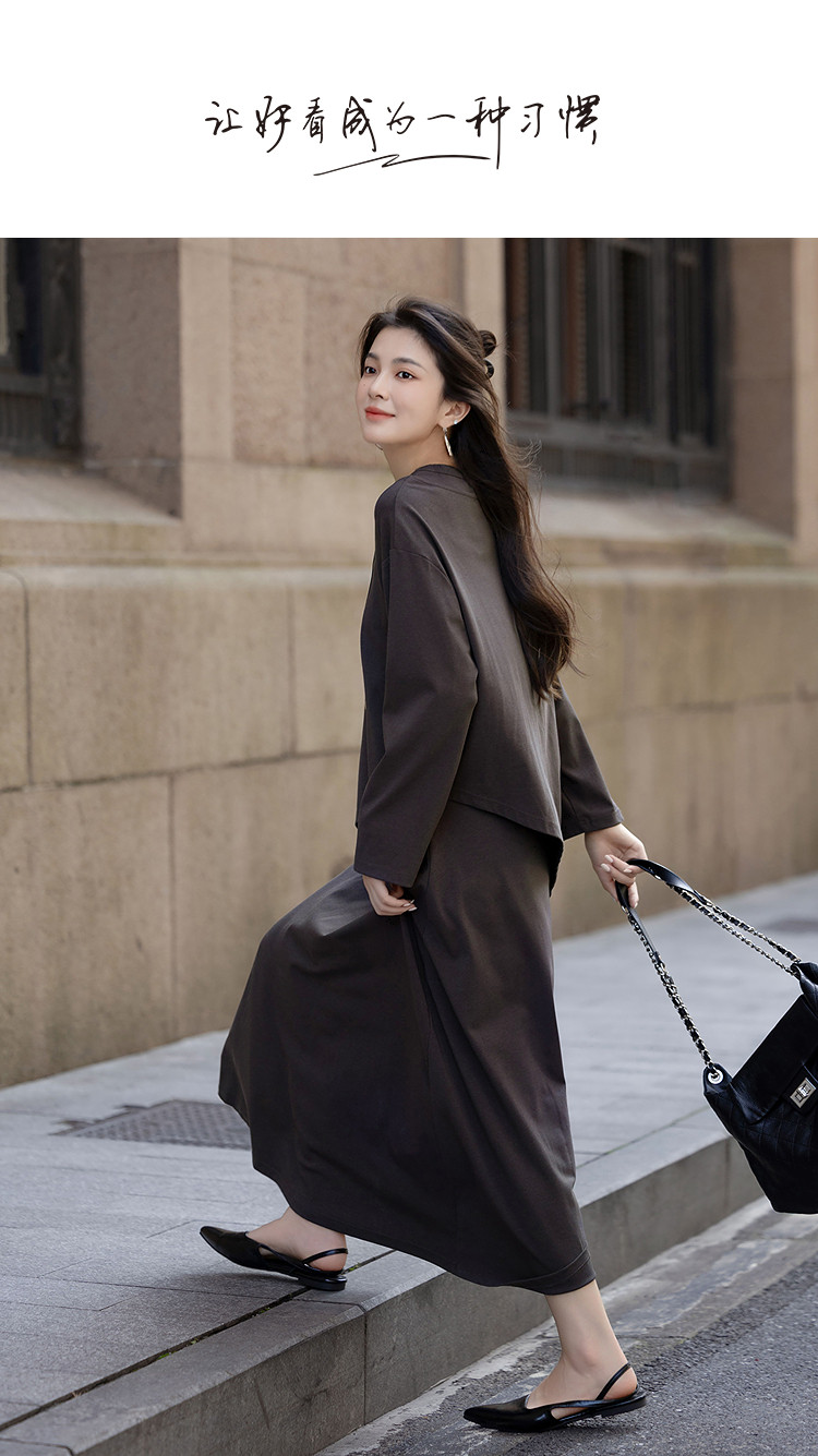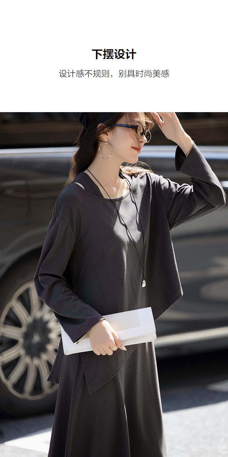 【温柔云氧棉】秋季气质不规则下摆上衣长款背带连衣裙套装两件套