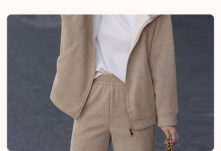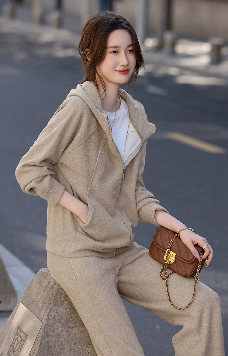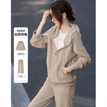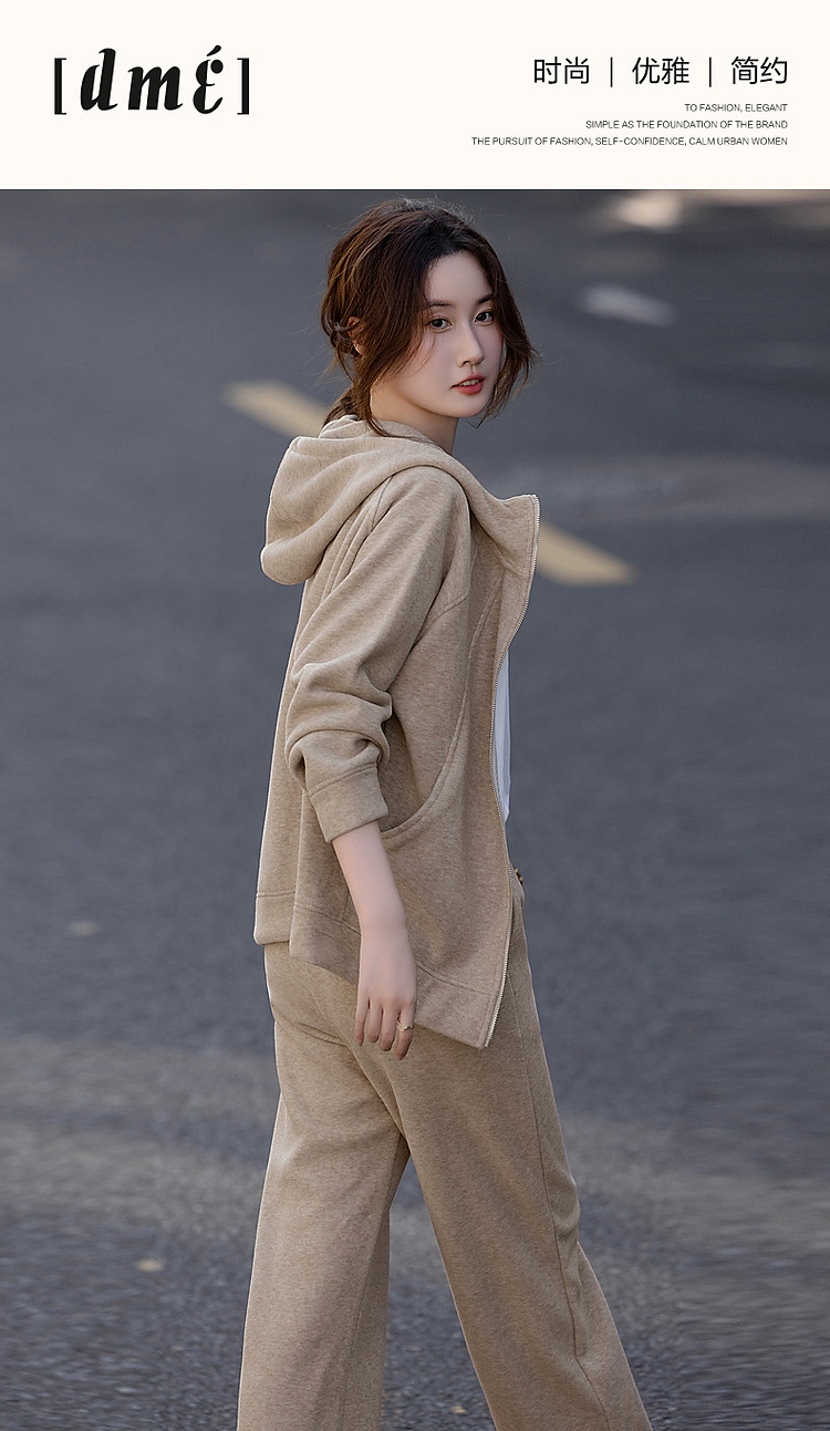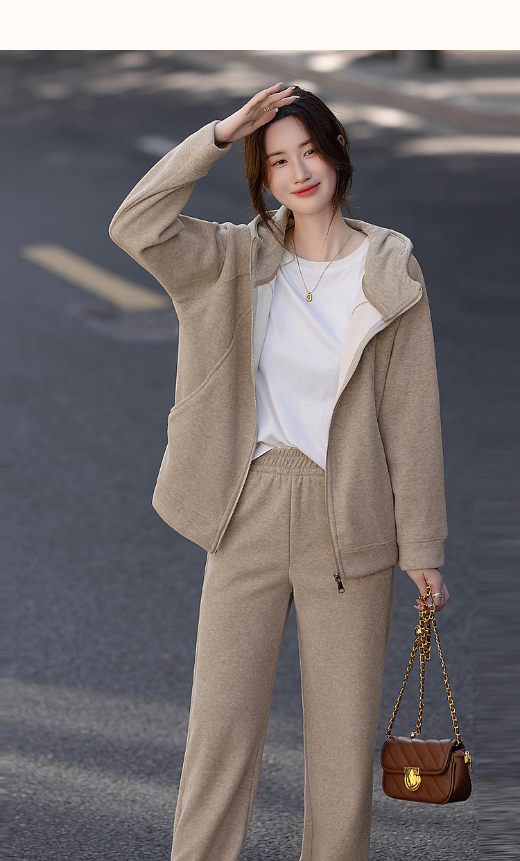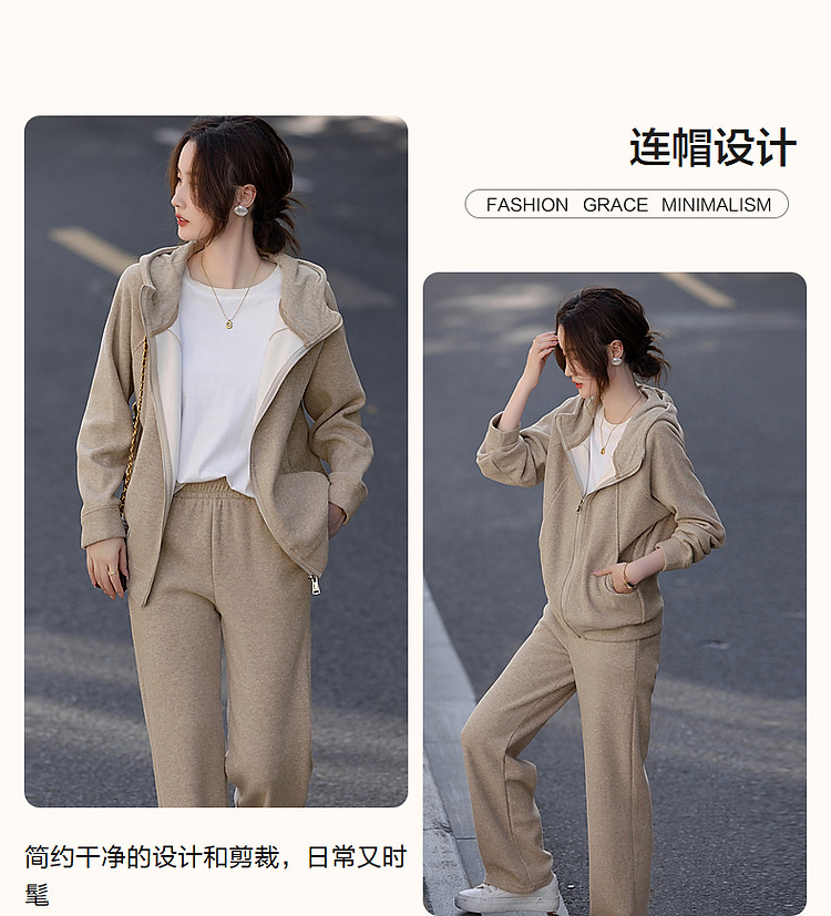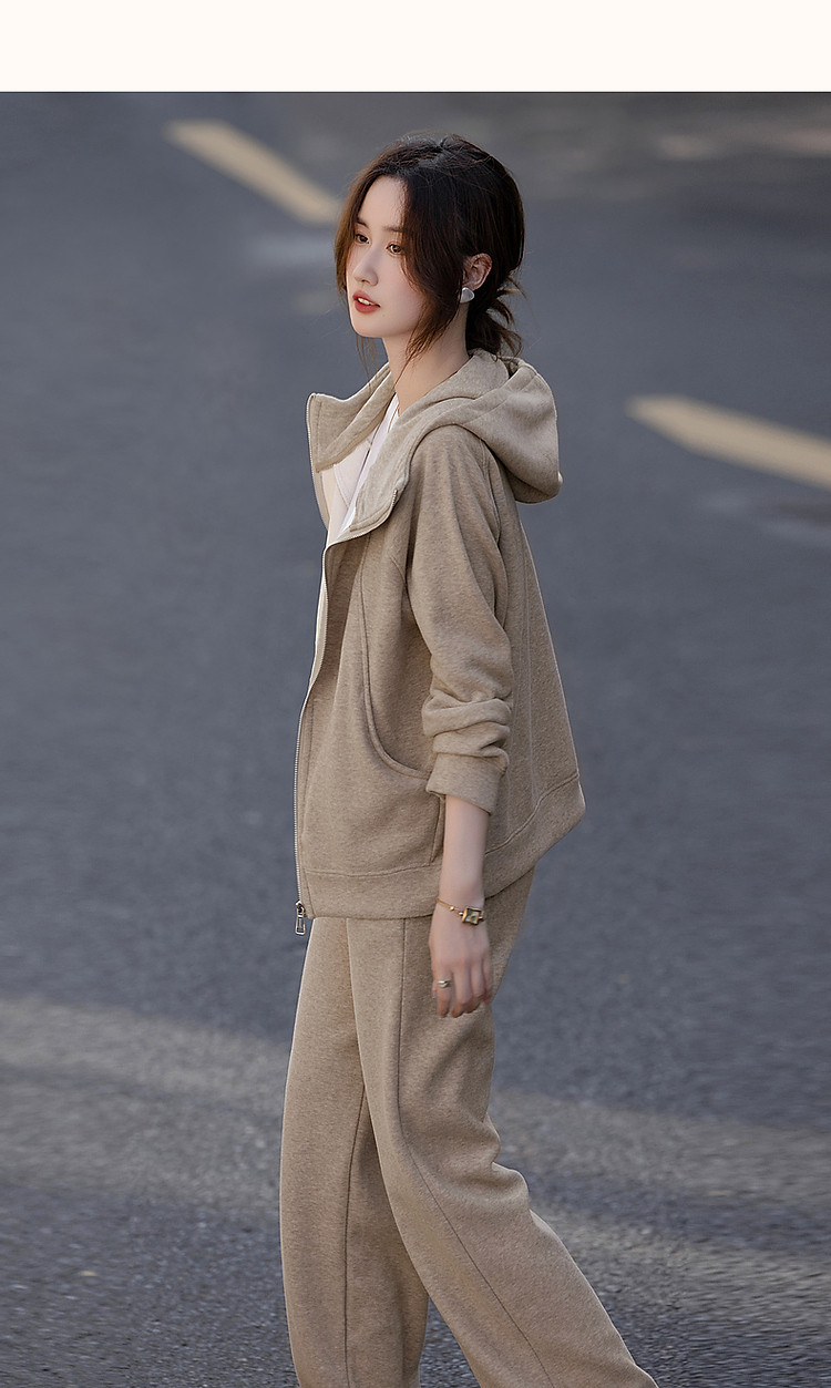 【遛弯套装】冬季智感灰系连帽上衣运动藏肉好搭长裤两件套女时尚