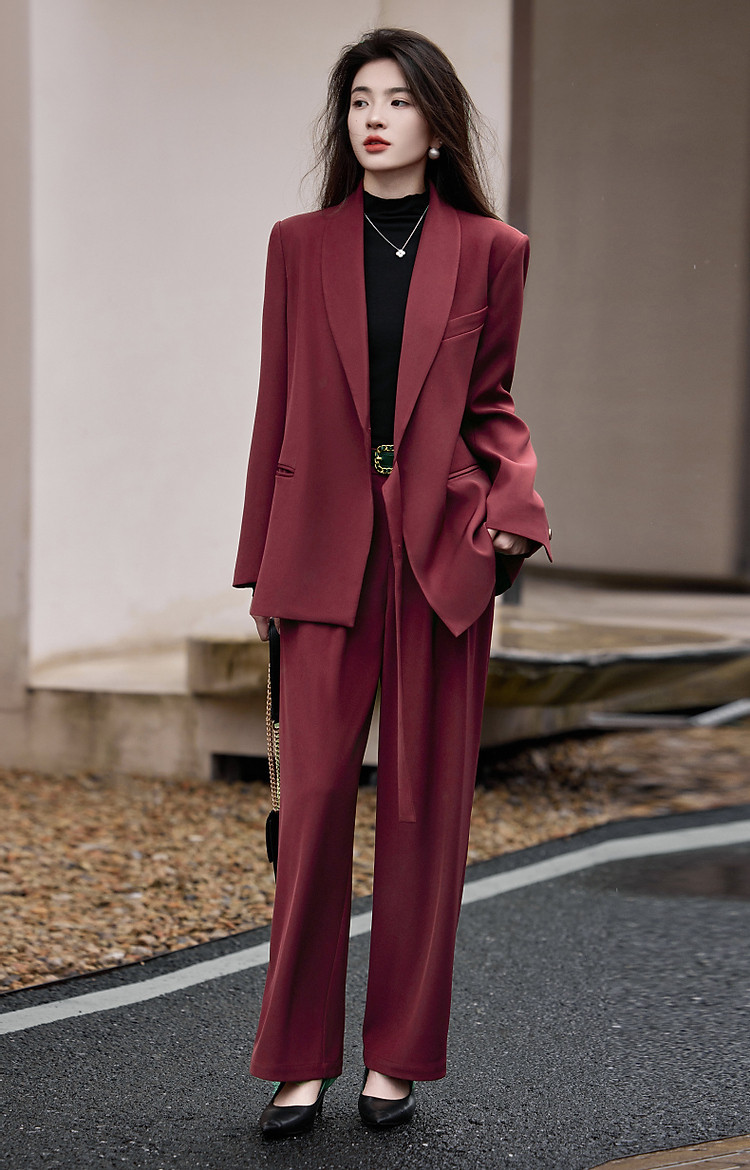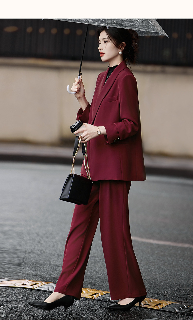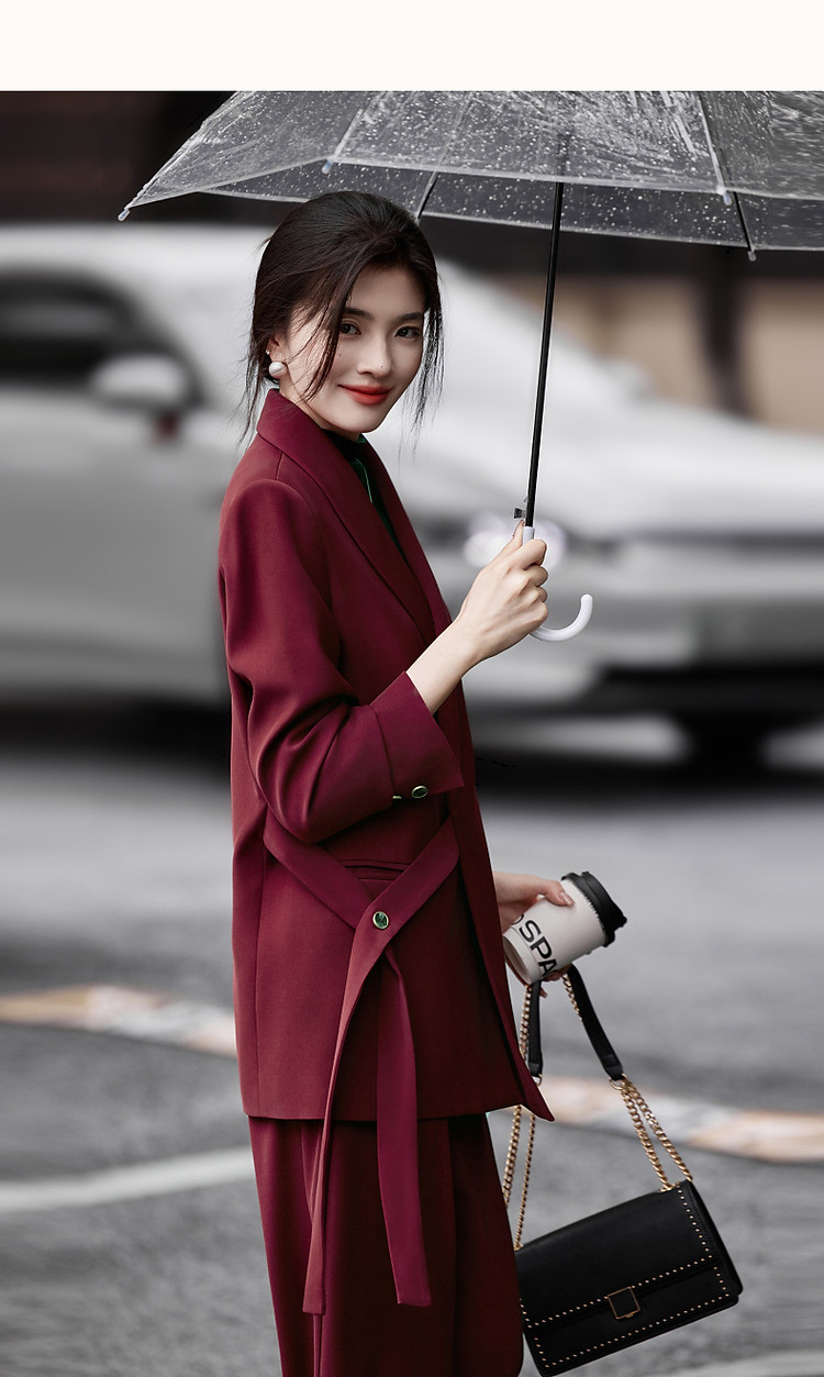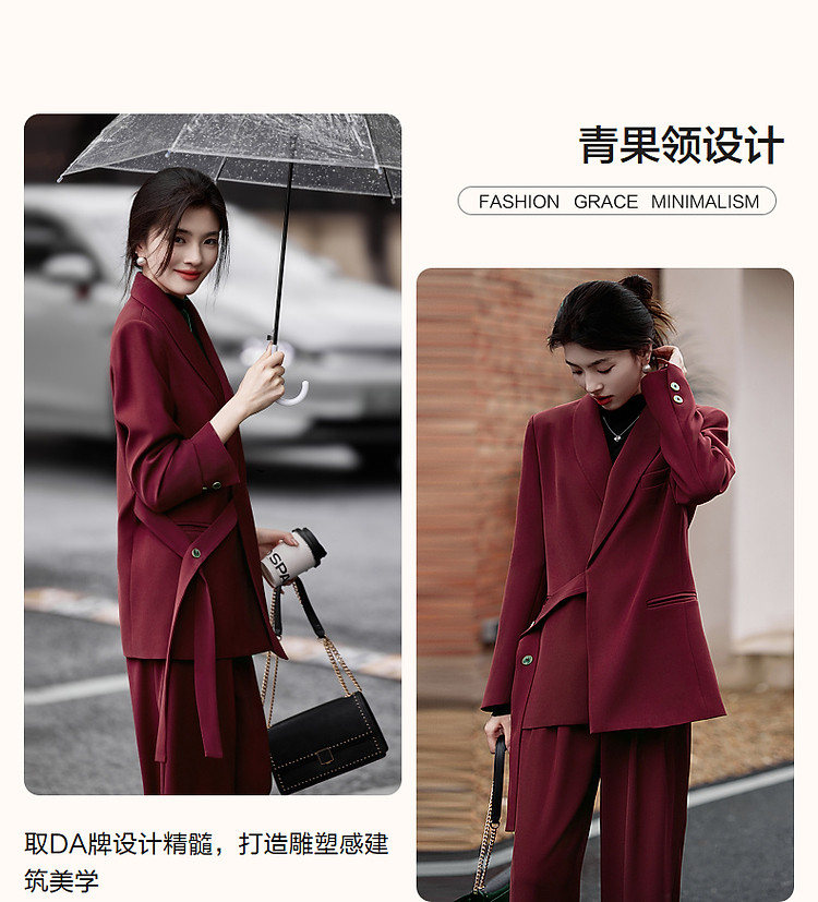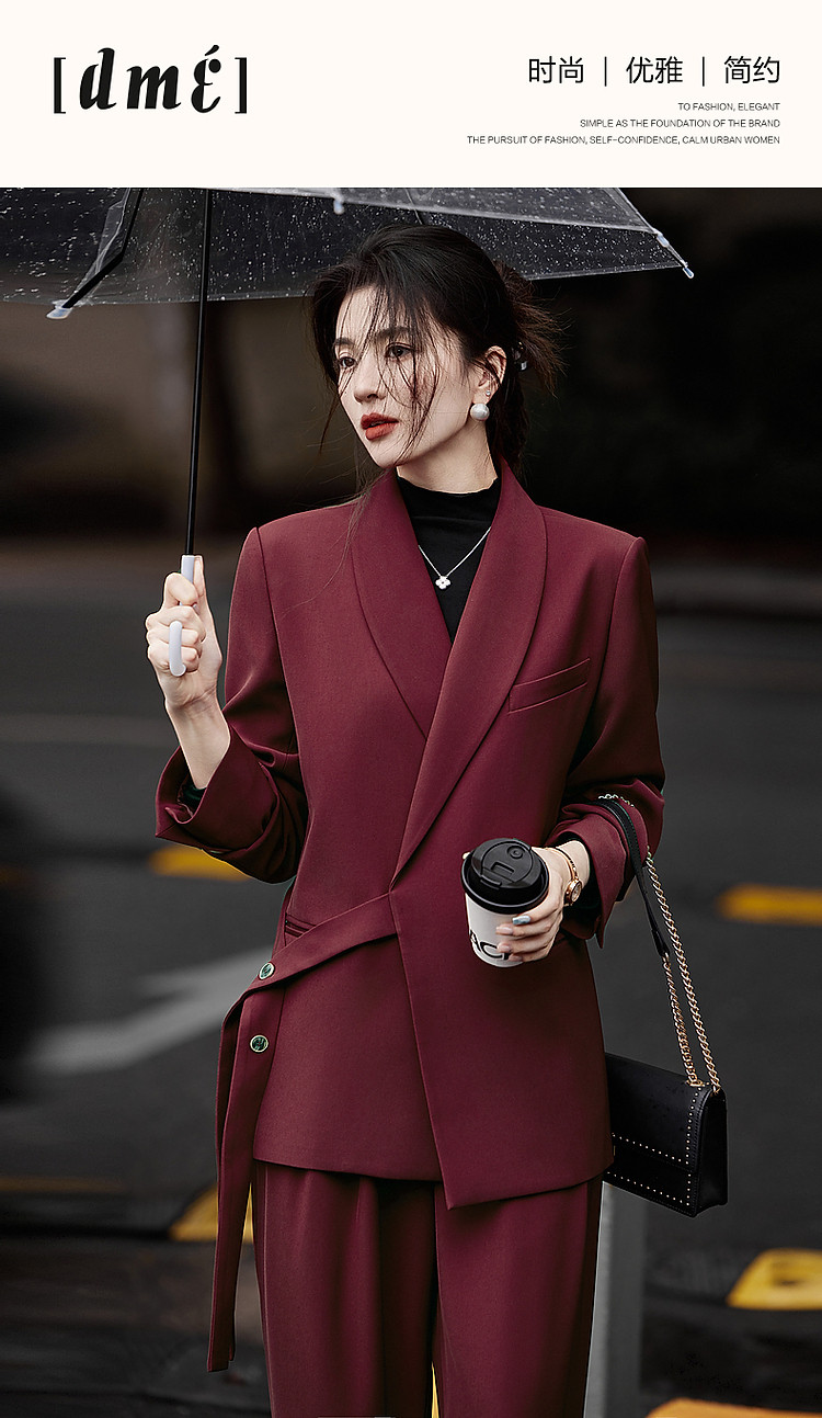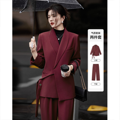 【智感西服套装】春秋经典袢搭扣上衣藏肉长裤女式商务西装两件套