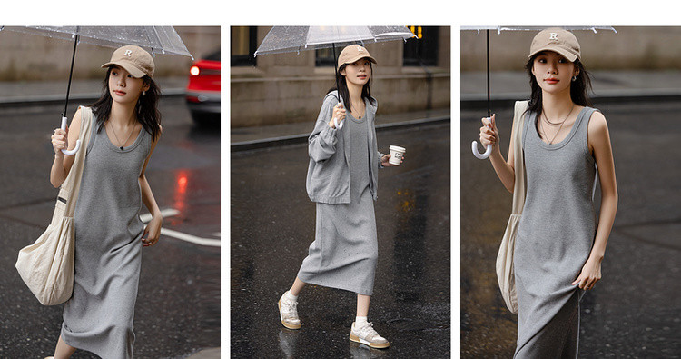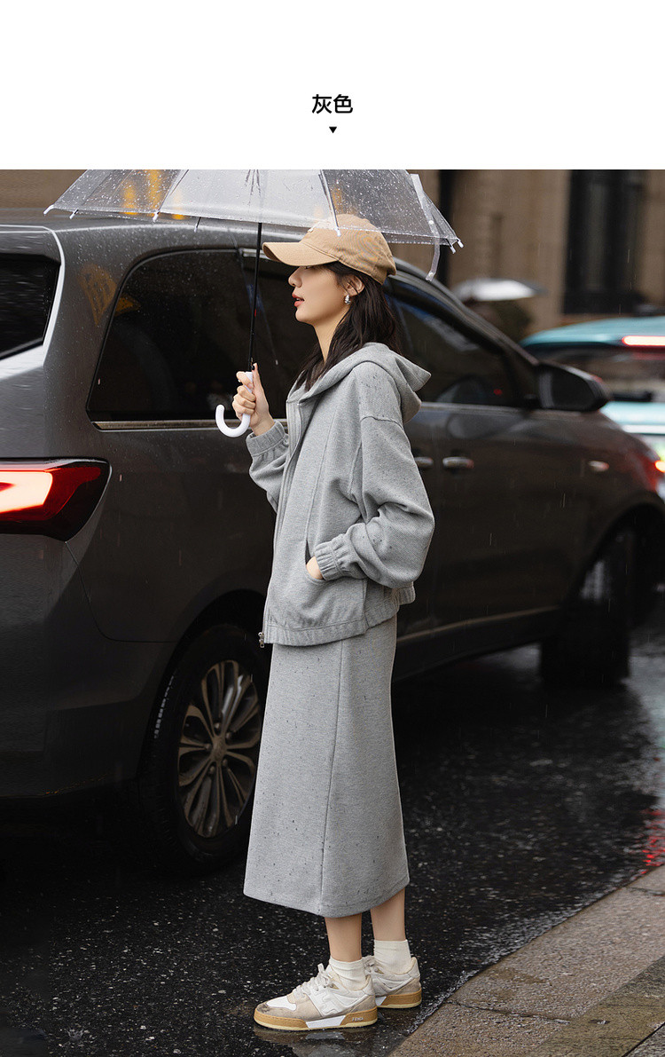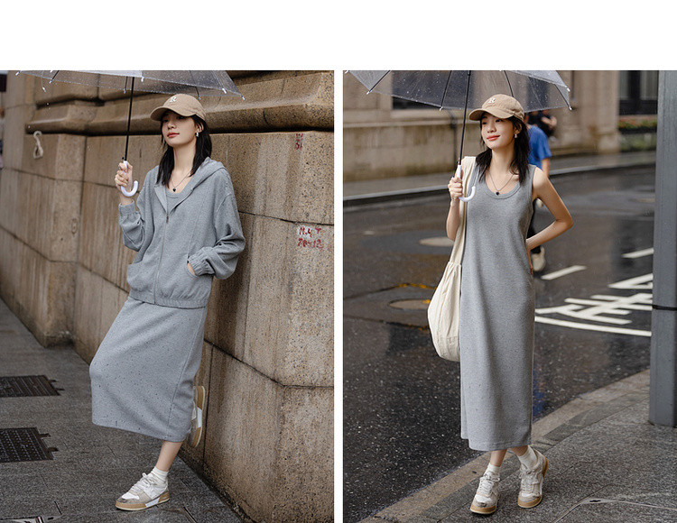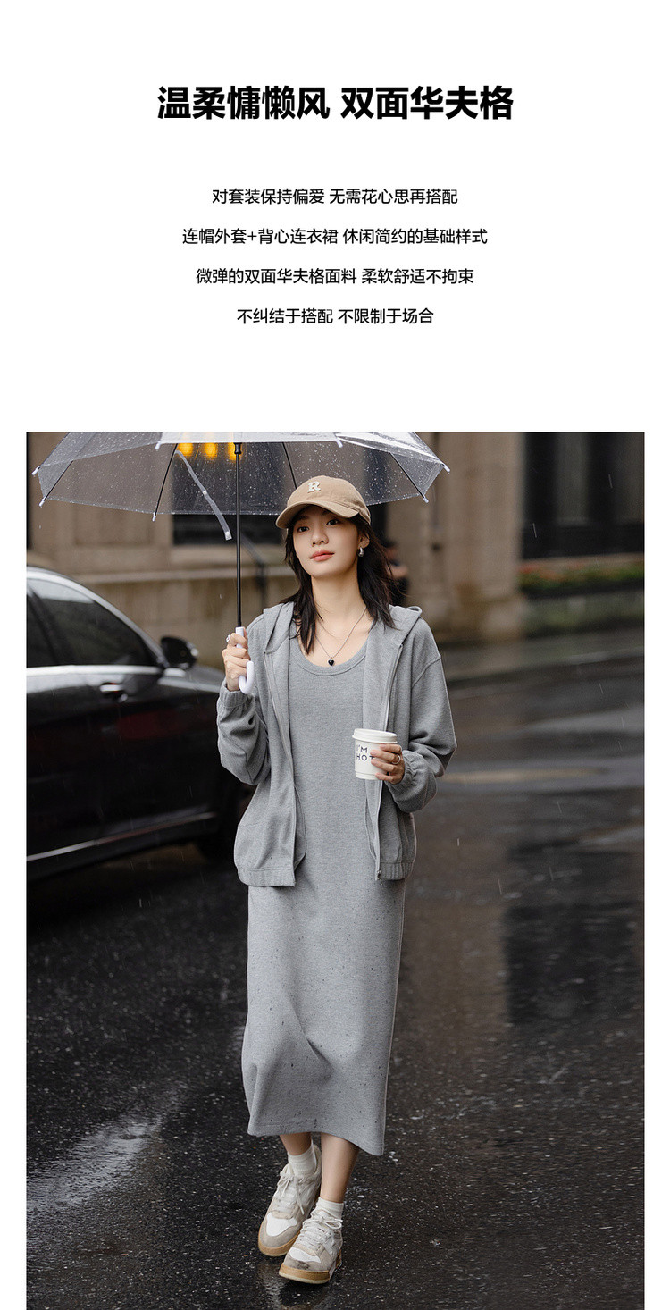 【双面华夫格套装】春季云感棉长袖上衣遮肉小个子半裙女式两件套