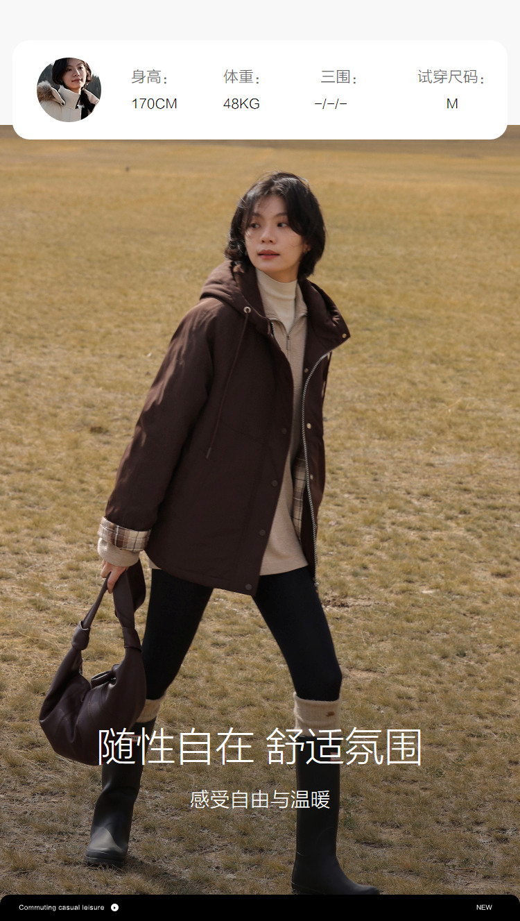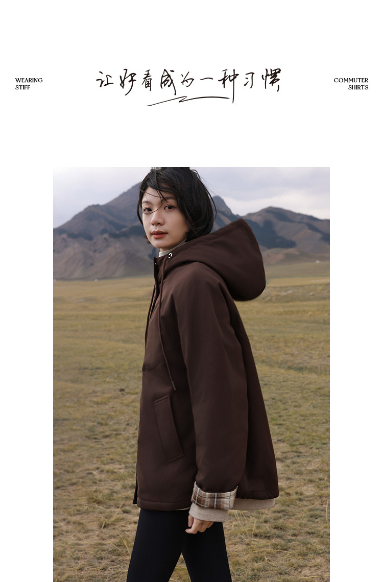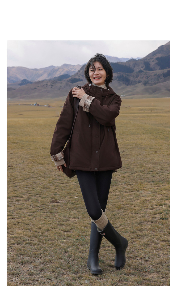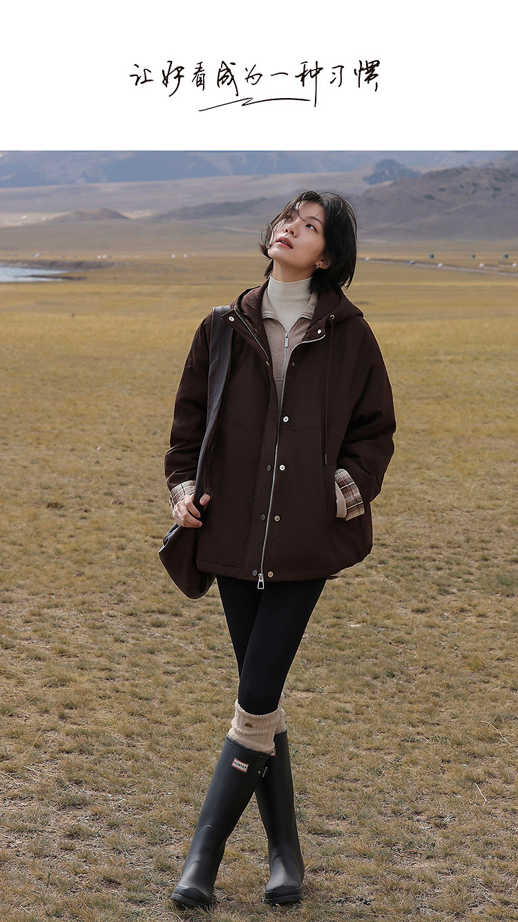 【发热棉】冬季保暖黑科技抽绳连帽拼接厚口袋气质小火炉女式棉衣