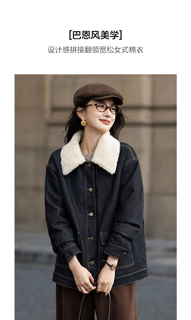 【巴恩风棉服】冬季保暖云朵棉时髦拼接翻领绗棉夹棉宽松女式棉衣